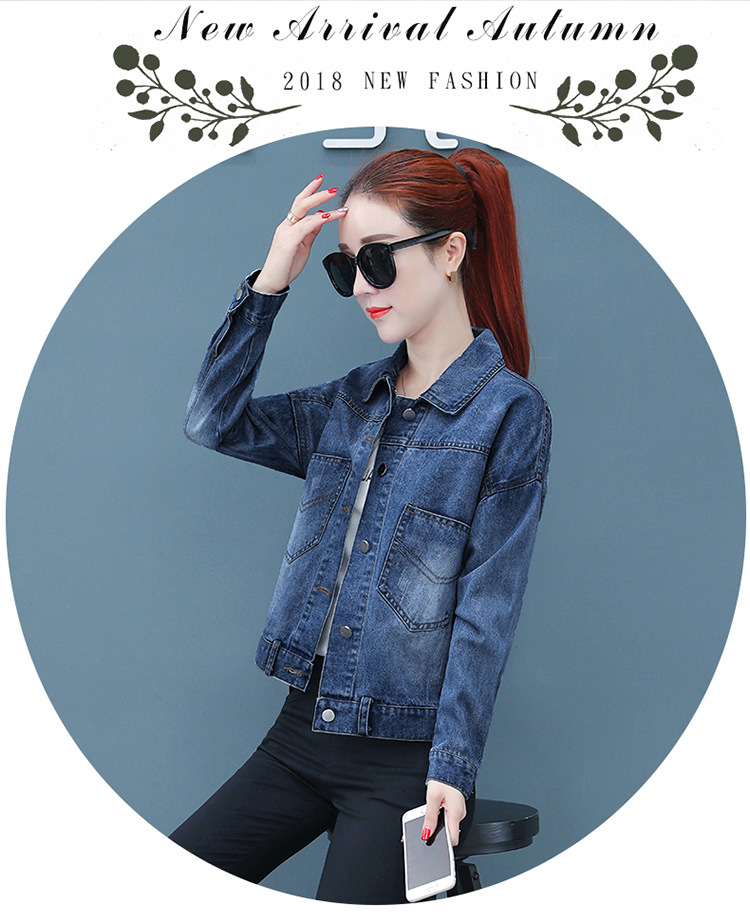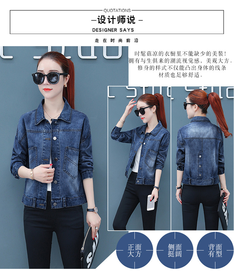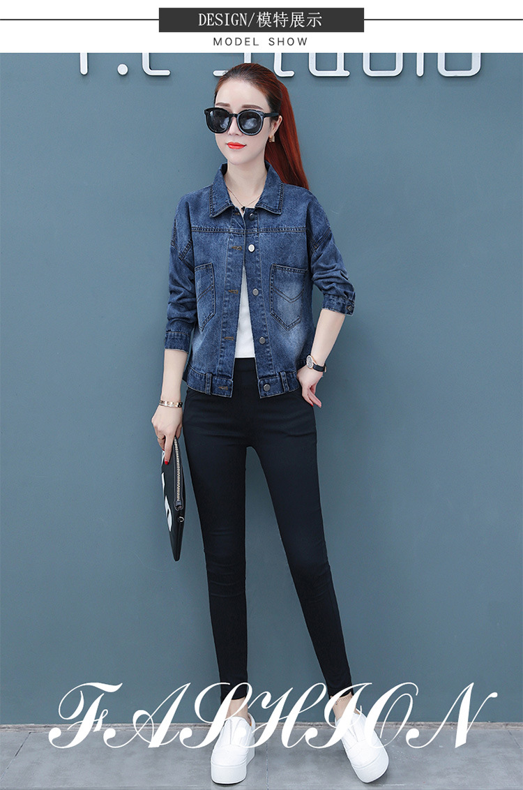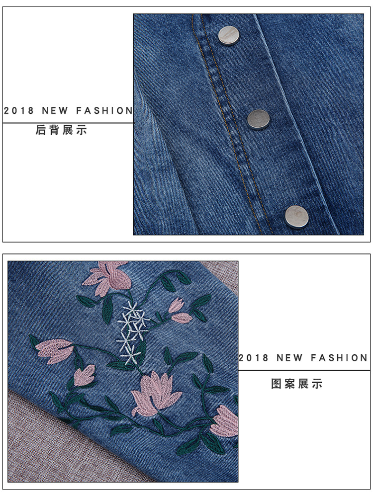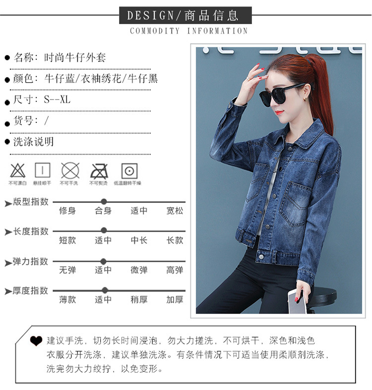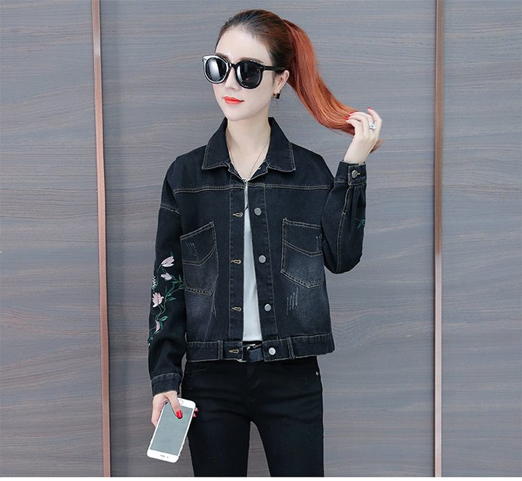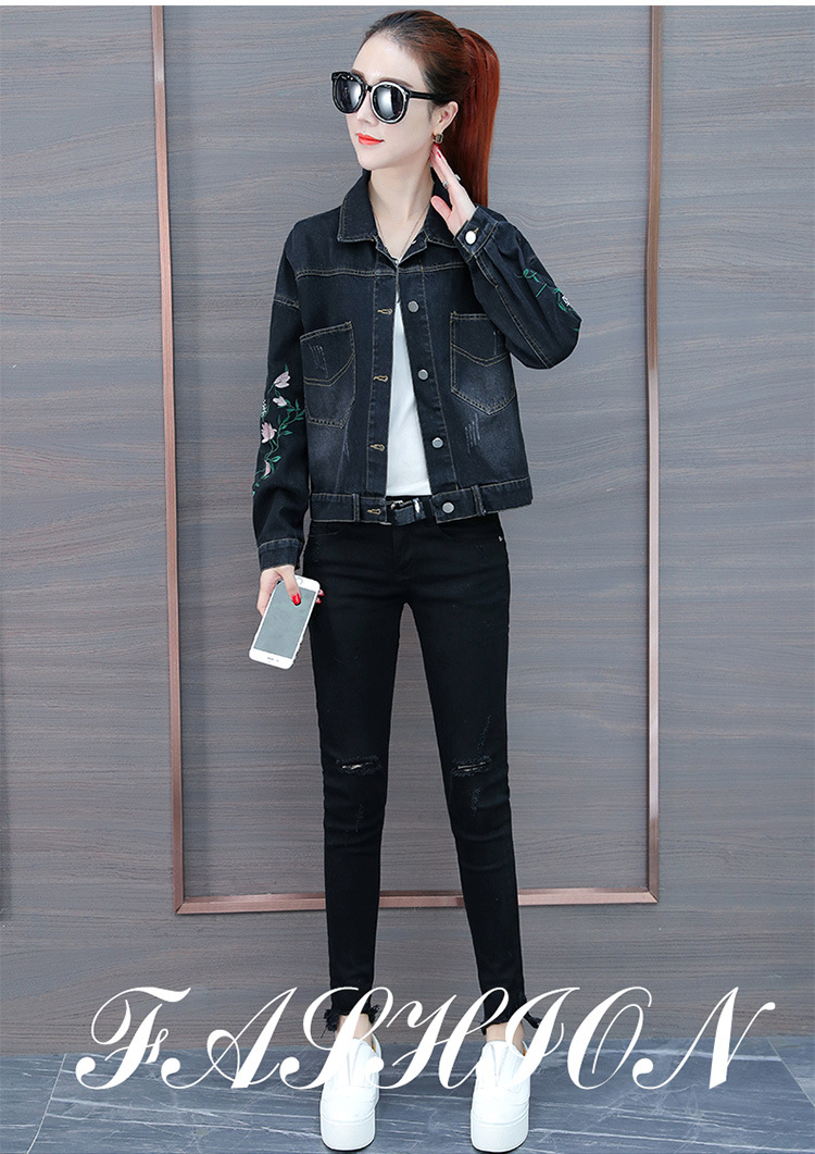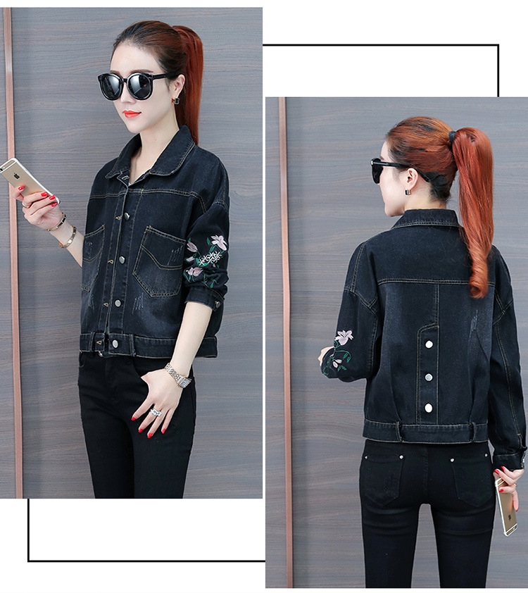FFJR-外套 3刺绣牛仔外套女长袖新款韩版绣花宽松小夹克秋装短款外套大码