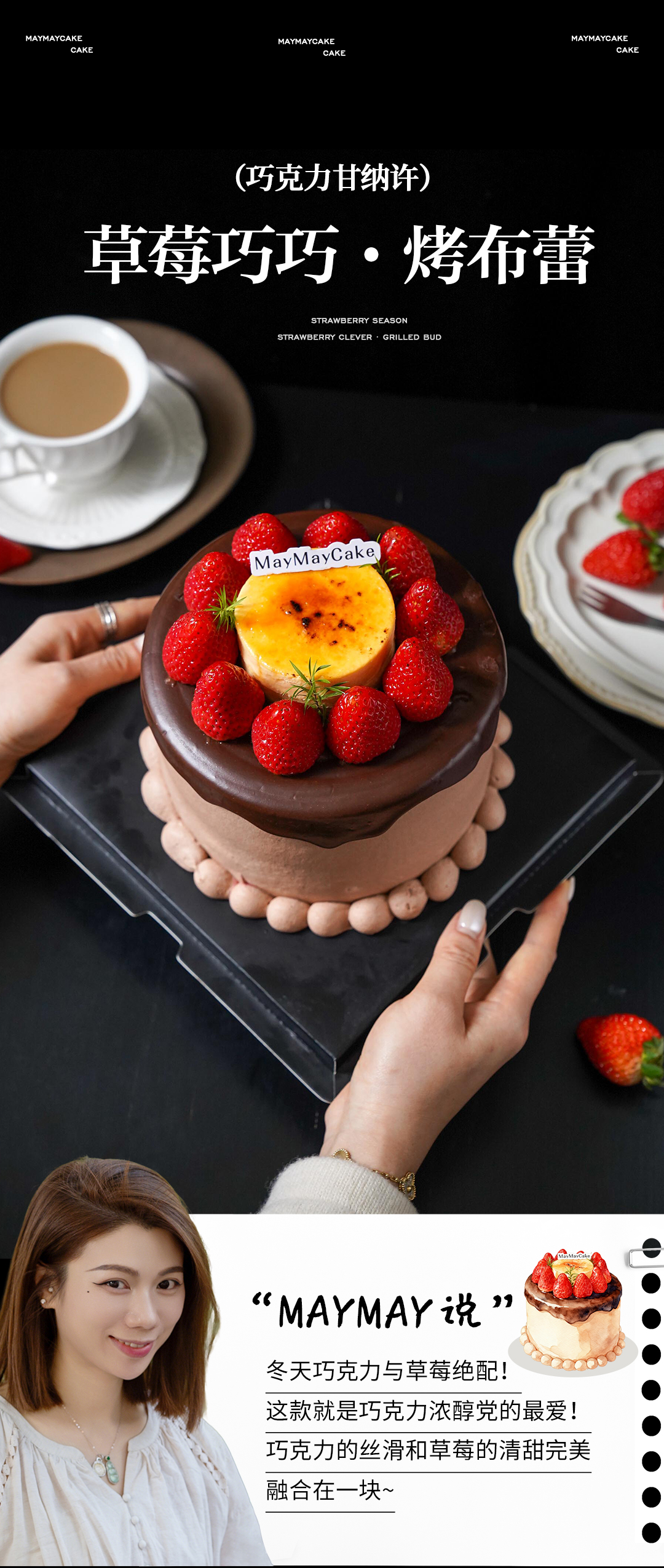 MAYMAYCAKE是一家高端定制最潮最新蛋糕店,坚持选用进口原料,每日纯手工用心制作,只为每位顾客尝试最美味的放心。一心一意做蛋糕,把它做到极致。每款蛋糕都有一个故事一个回忆,因为蛋糕而喜欢上生