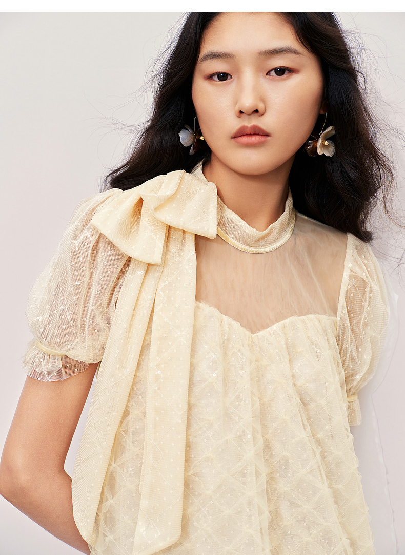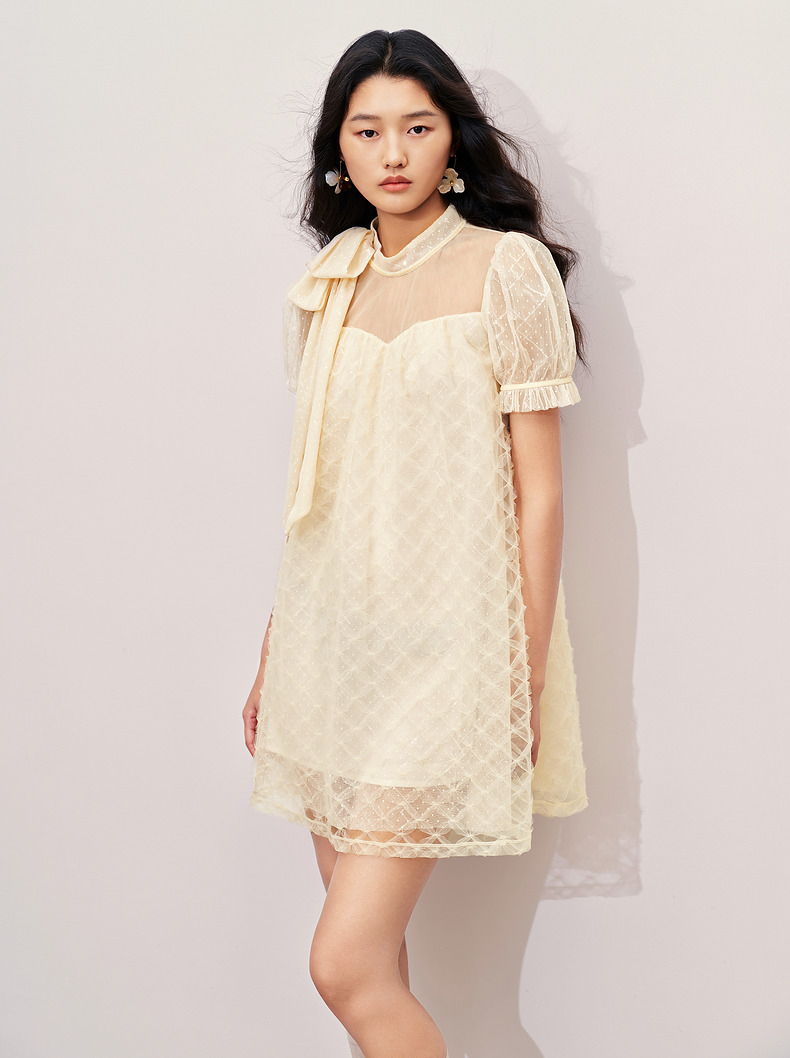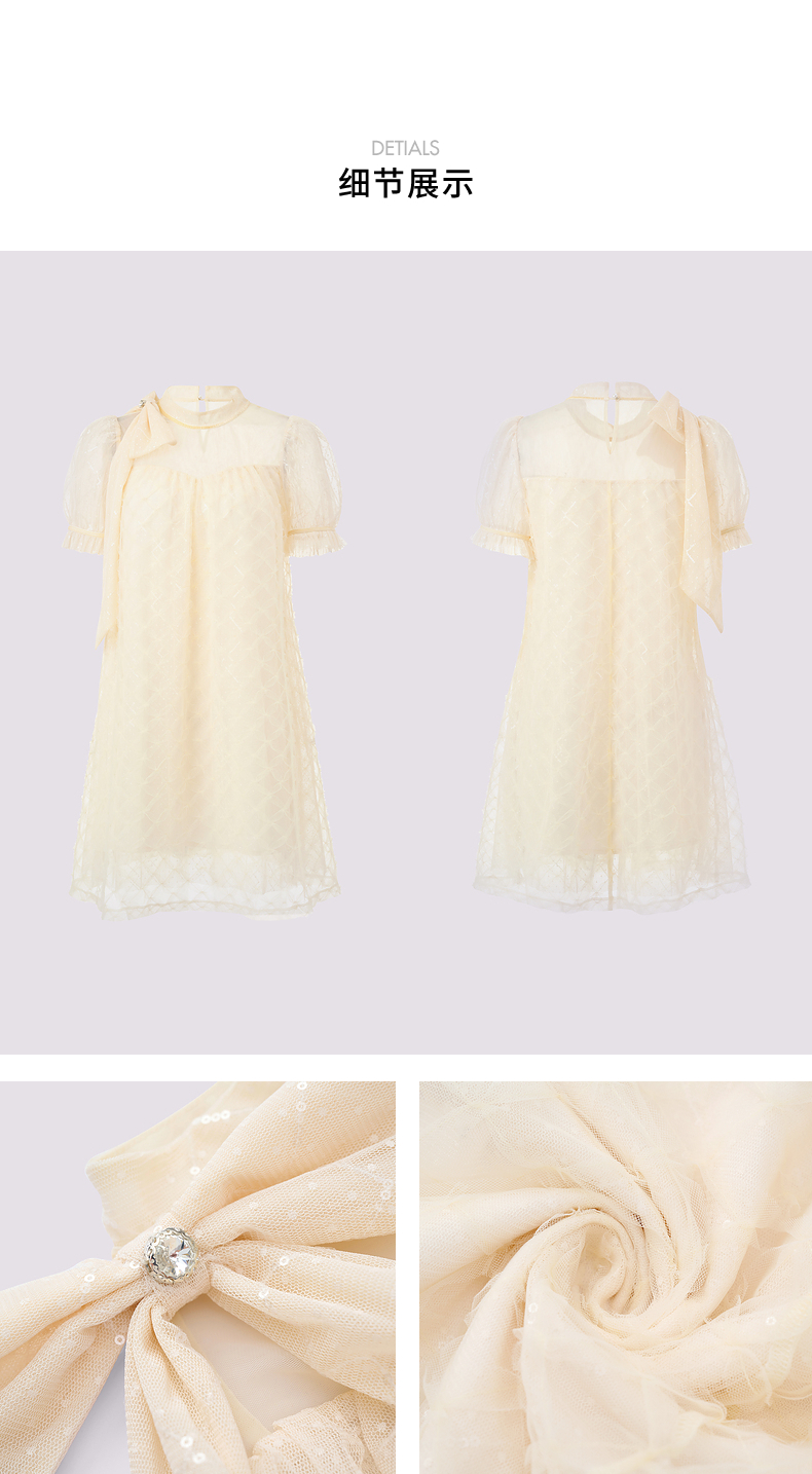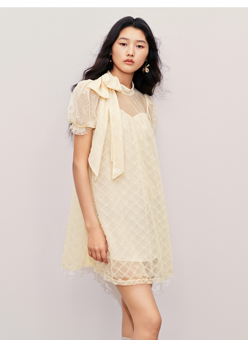 MAXRIENY浪漫度假风连衣裙网纱拼接设计2024夏款泡泡袖a摆裙子(货号:MS85DR296)