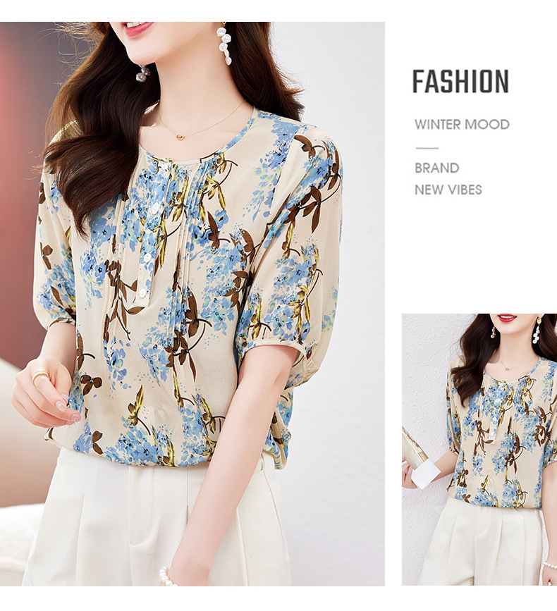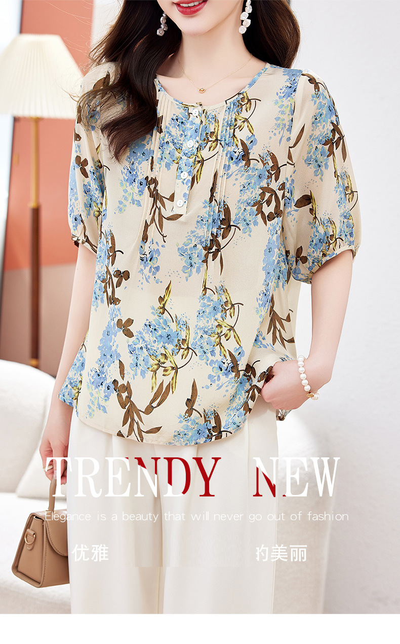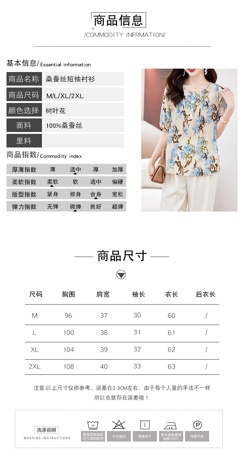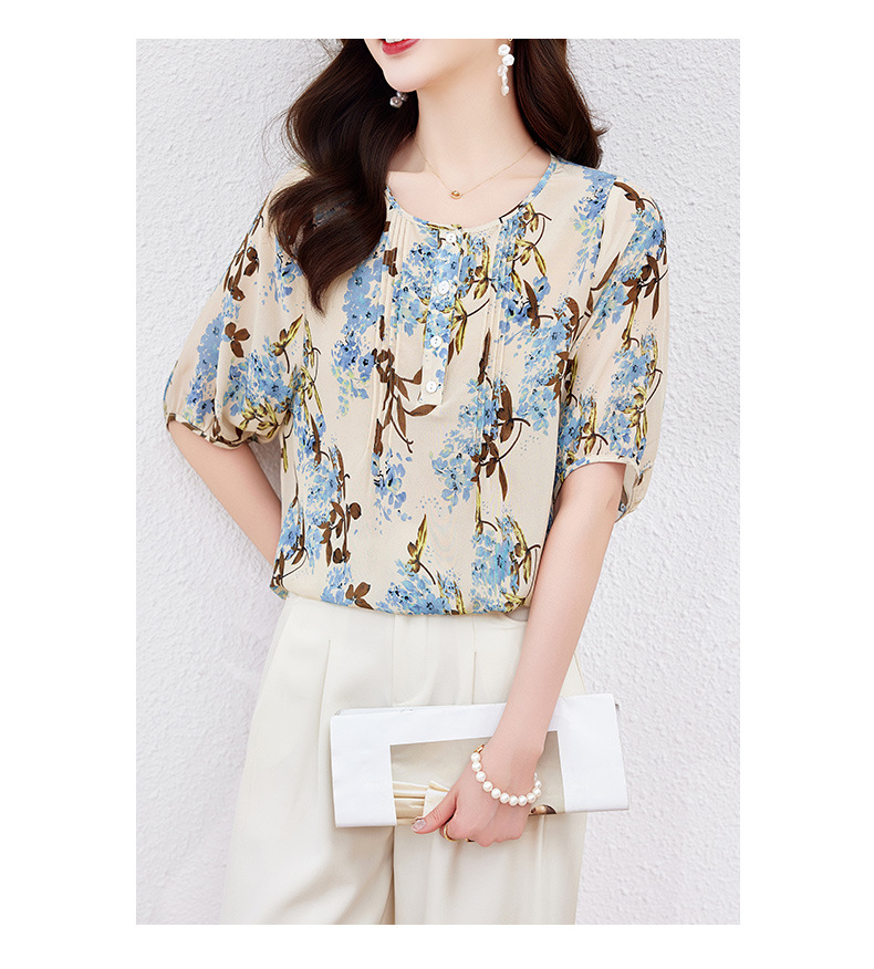 KQ-506013真丝衬衫女士夏季宽松短袖上衣新款小个子碎花小衫桑蚕丝上衣