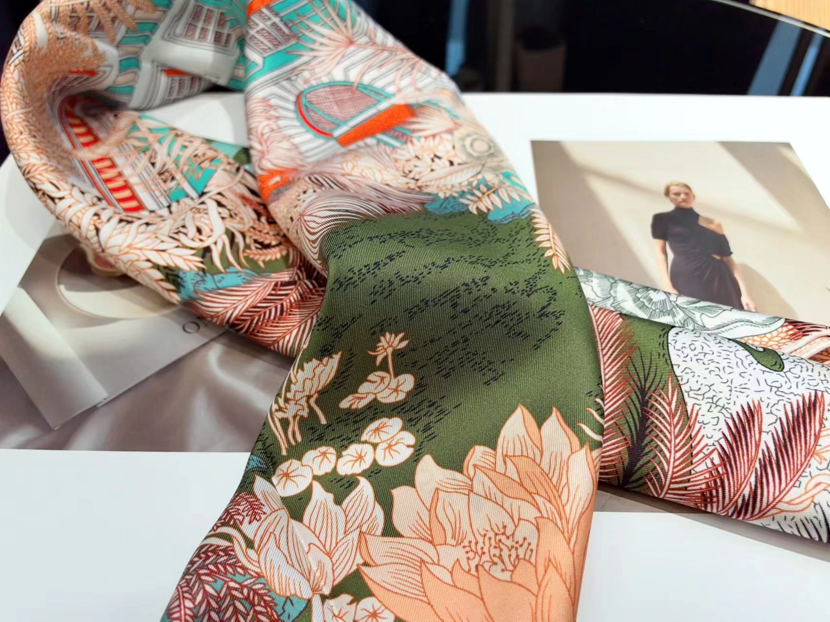 丝巾材质:100%桑蚕丝,14mm斜纹绸