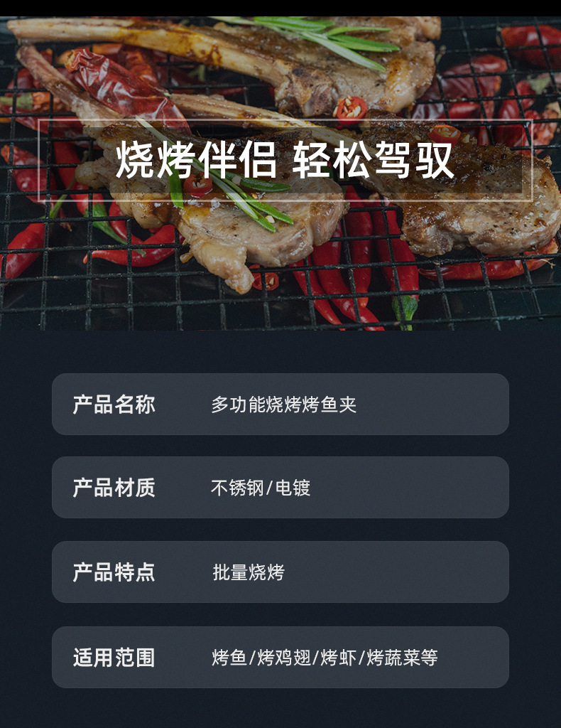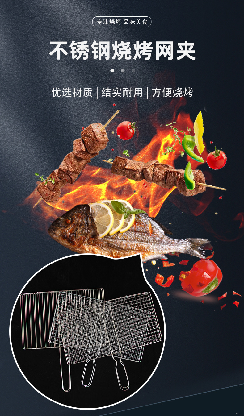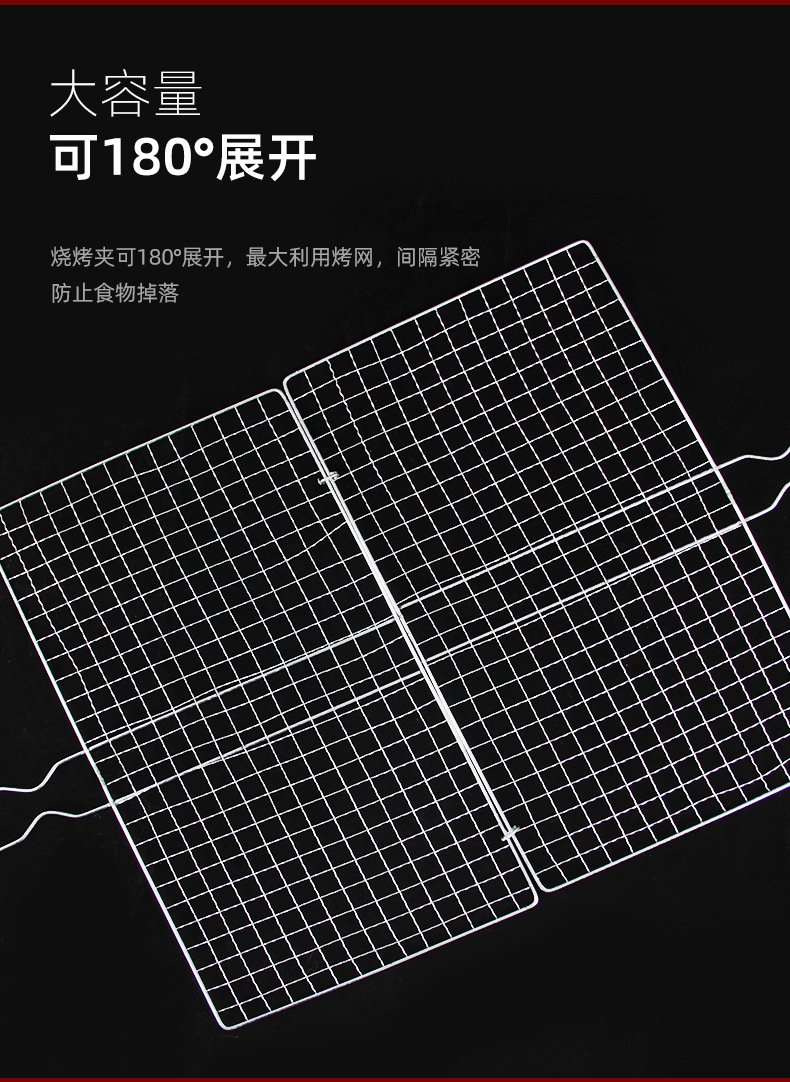 买就送烧烤签和锡纸盘【批量烧烤!一次烤制多人份】大容量,可180°展开,烤鱼夹烧烤网网夹户外便携烤鱼夹烧烤夹子烤菜网烧烤用网烧烤用品。rb