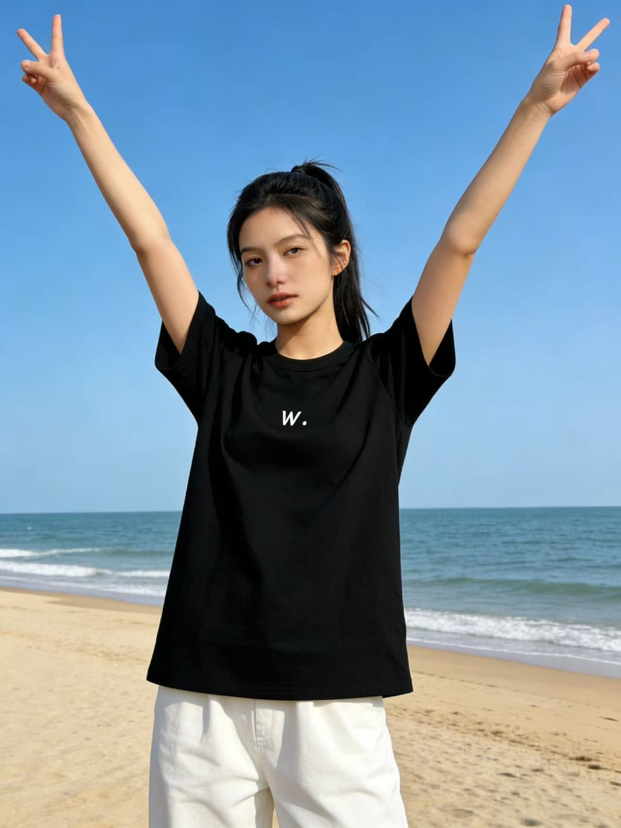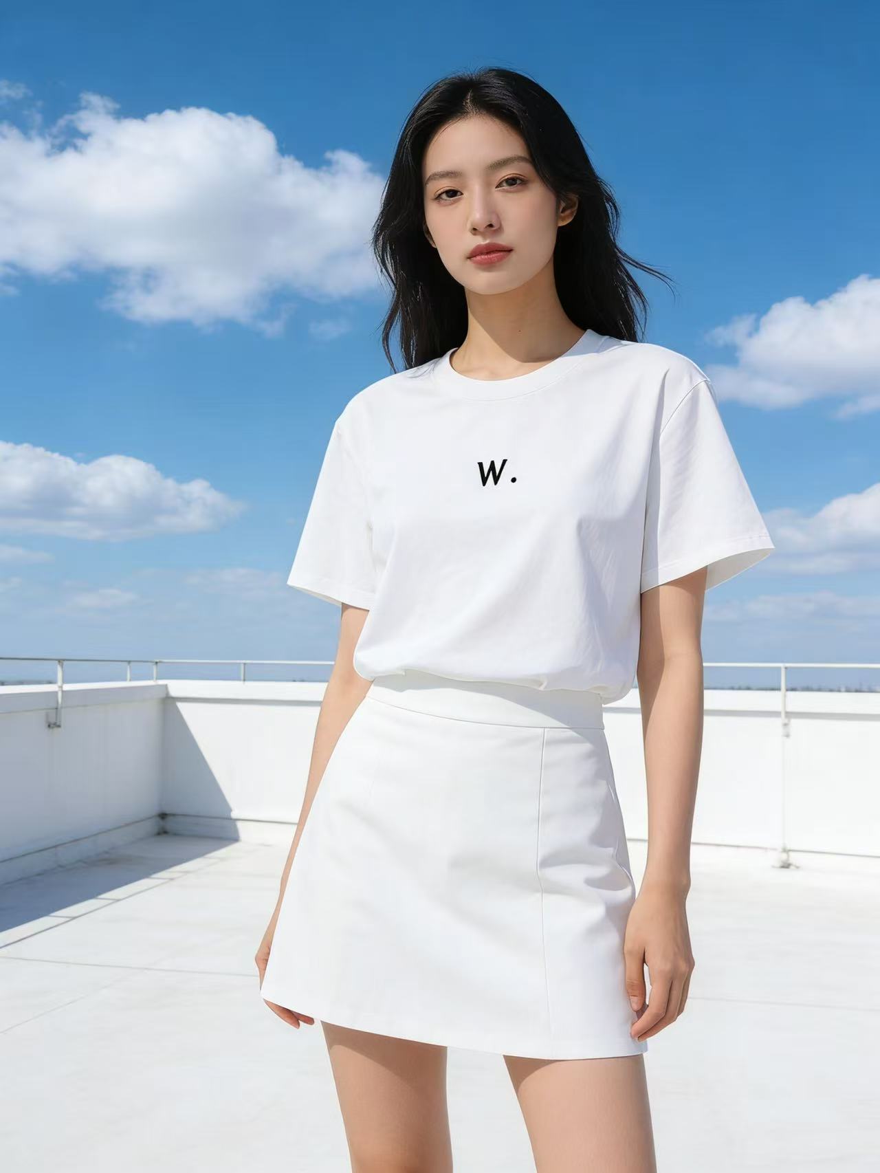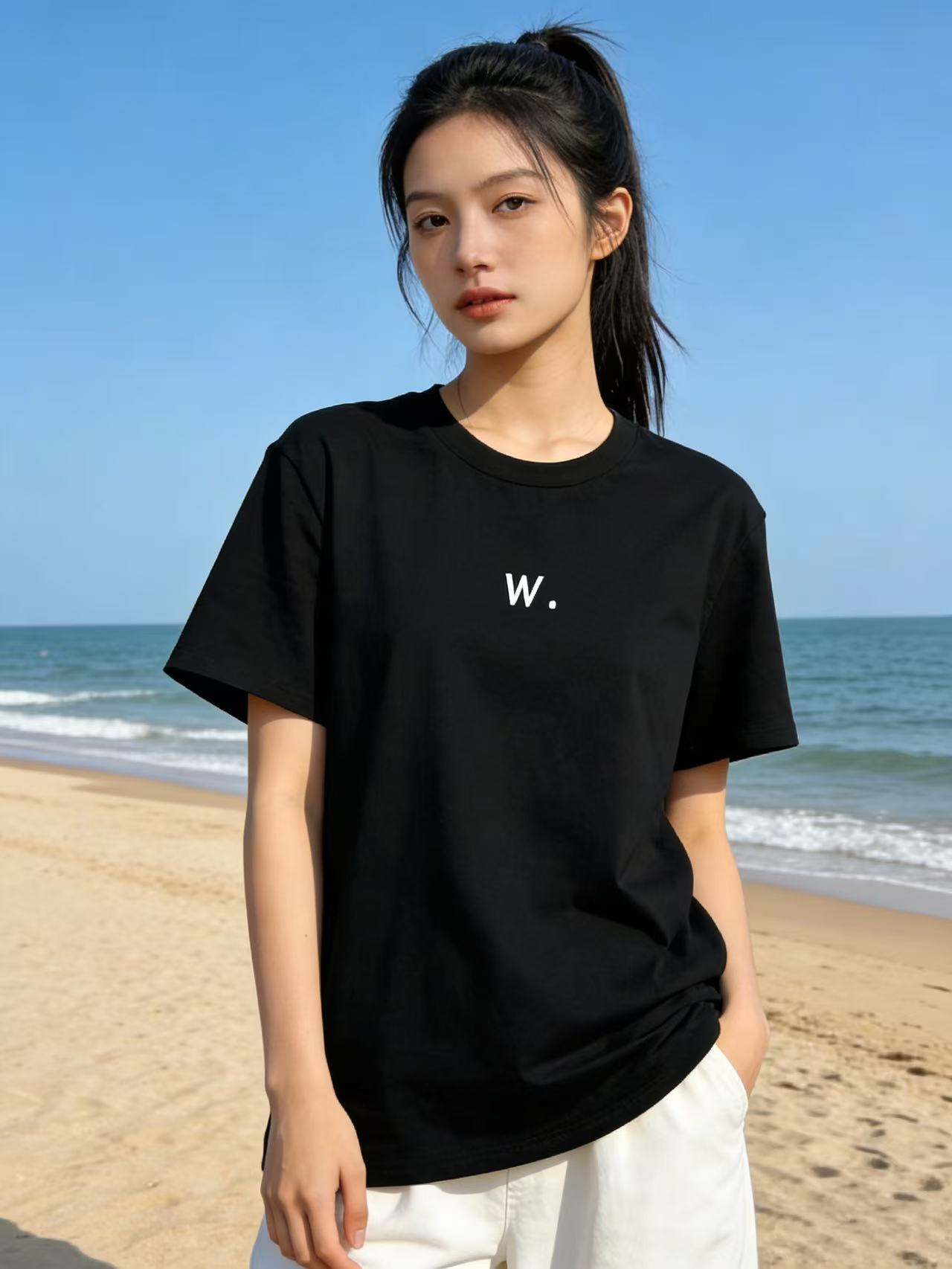 性价比天花板【自营】W刺绣字母!3010精梳棉95%圆领短袖T恤上衣-喜出