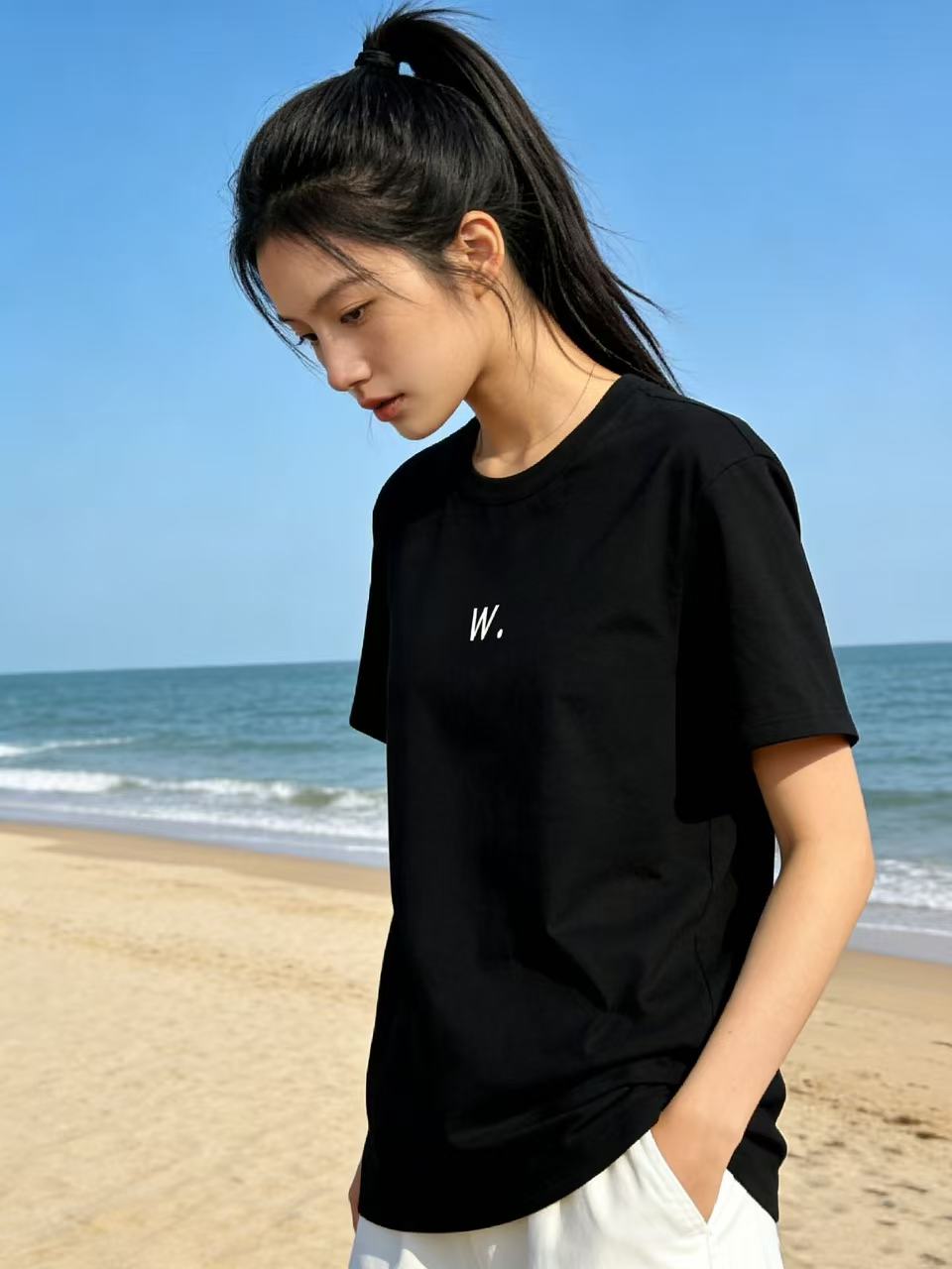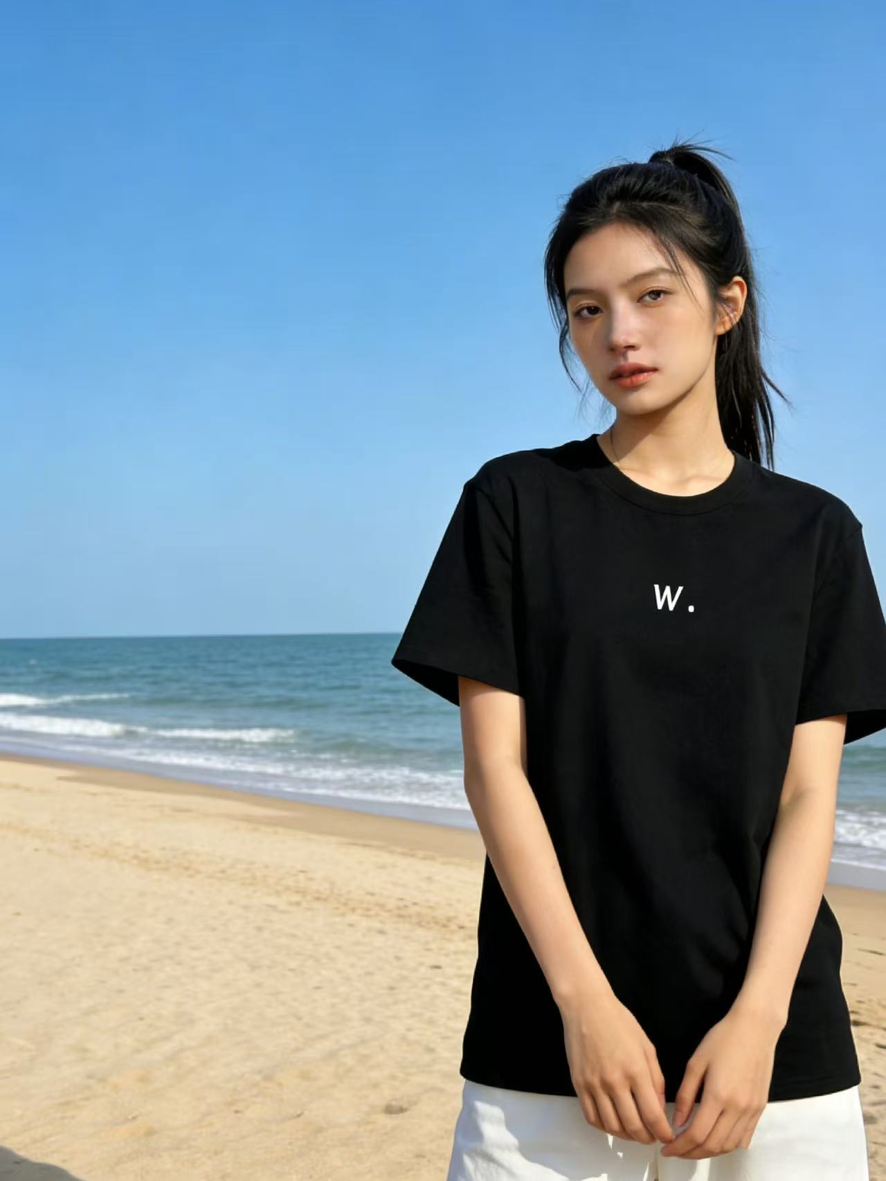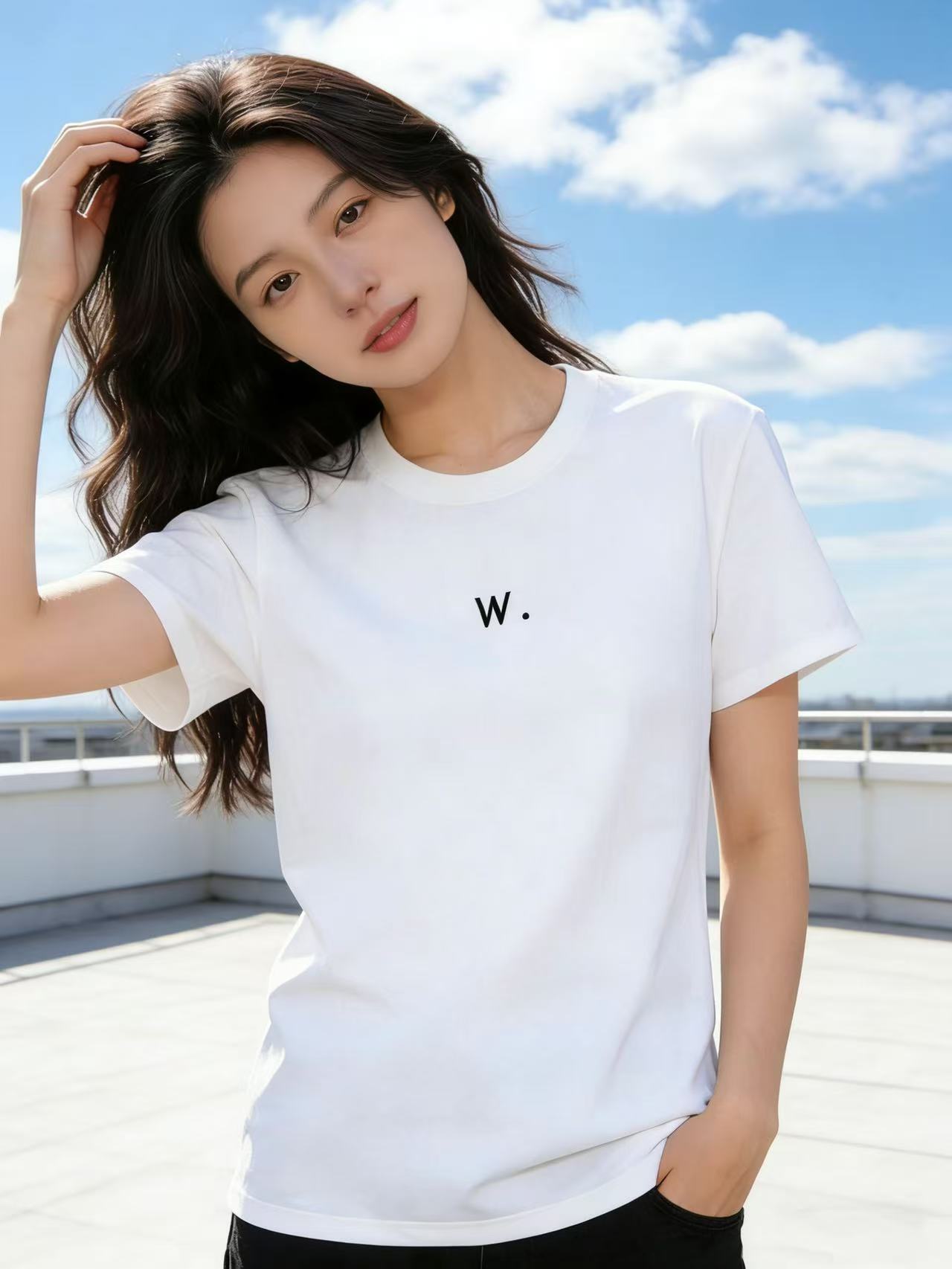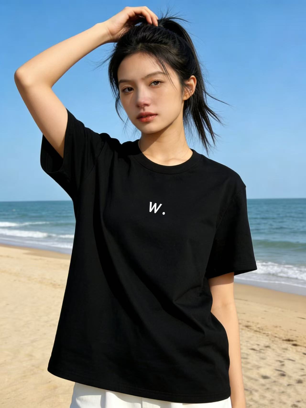 性价比天花板【自营】W刺绣字母!3010精梳棉95%圆领短袖T恤上衣-喜出