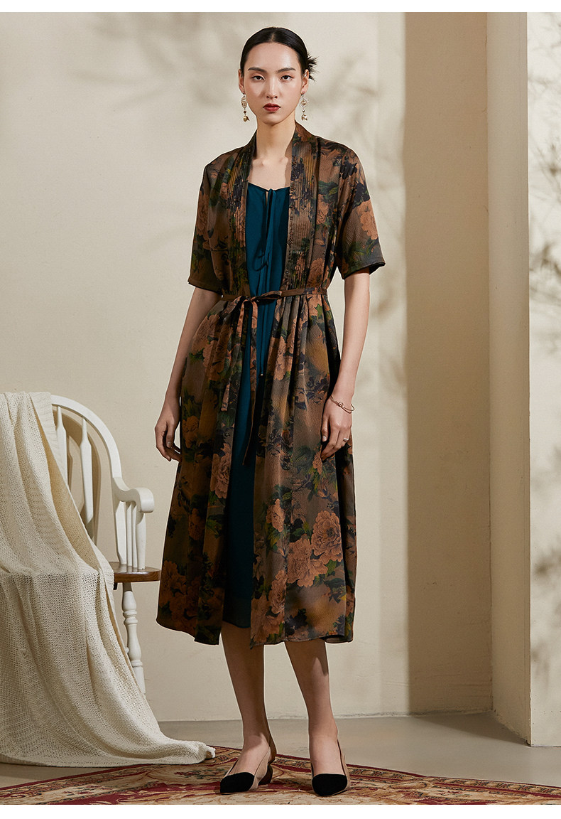 【欧式古典花】【香云纱】乔万尼夏季真丝外披连衣裙欧式复古长款女ES2A120