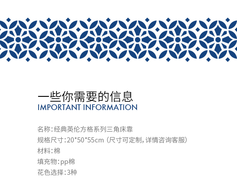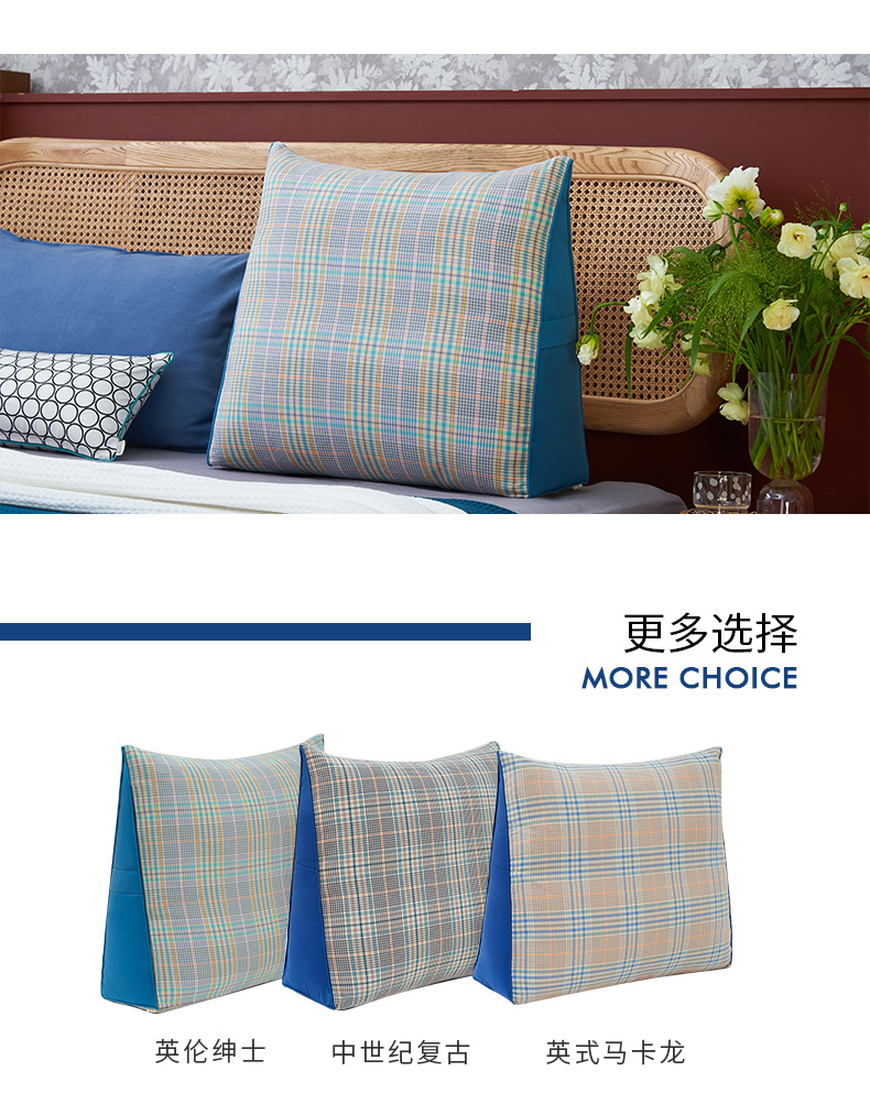 经典英伦方格系列床头三角靠垫沙发大靠背