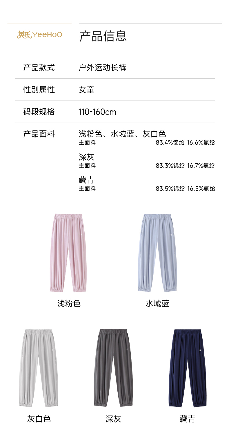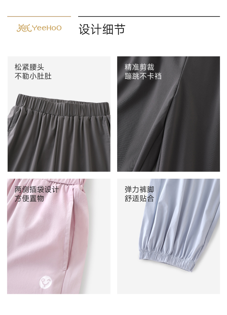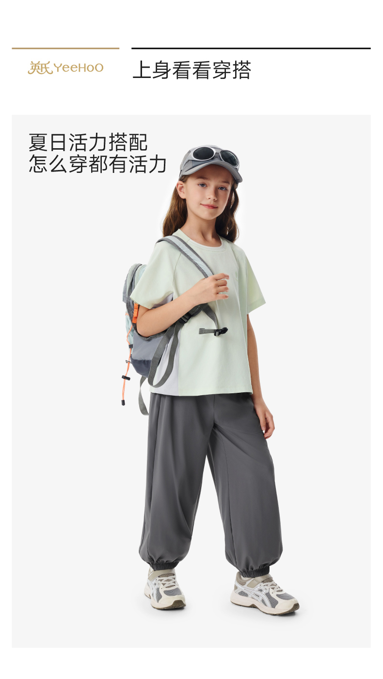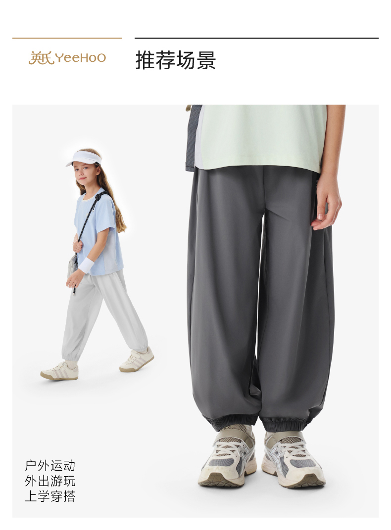 英氏裤子春夏款凉感防晒女童长裤简约舒适2026新款束脚裤休闲百搭