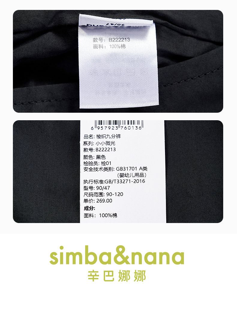 【辛巴娜娜】simbanana夏季新款休闲透气轻薄设计感休闲长裤束脚裤男童