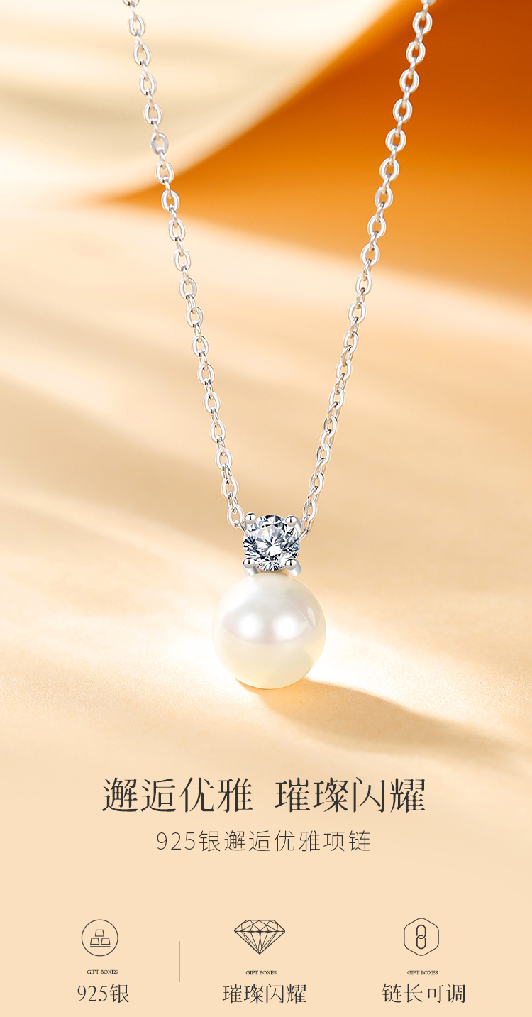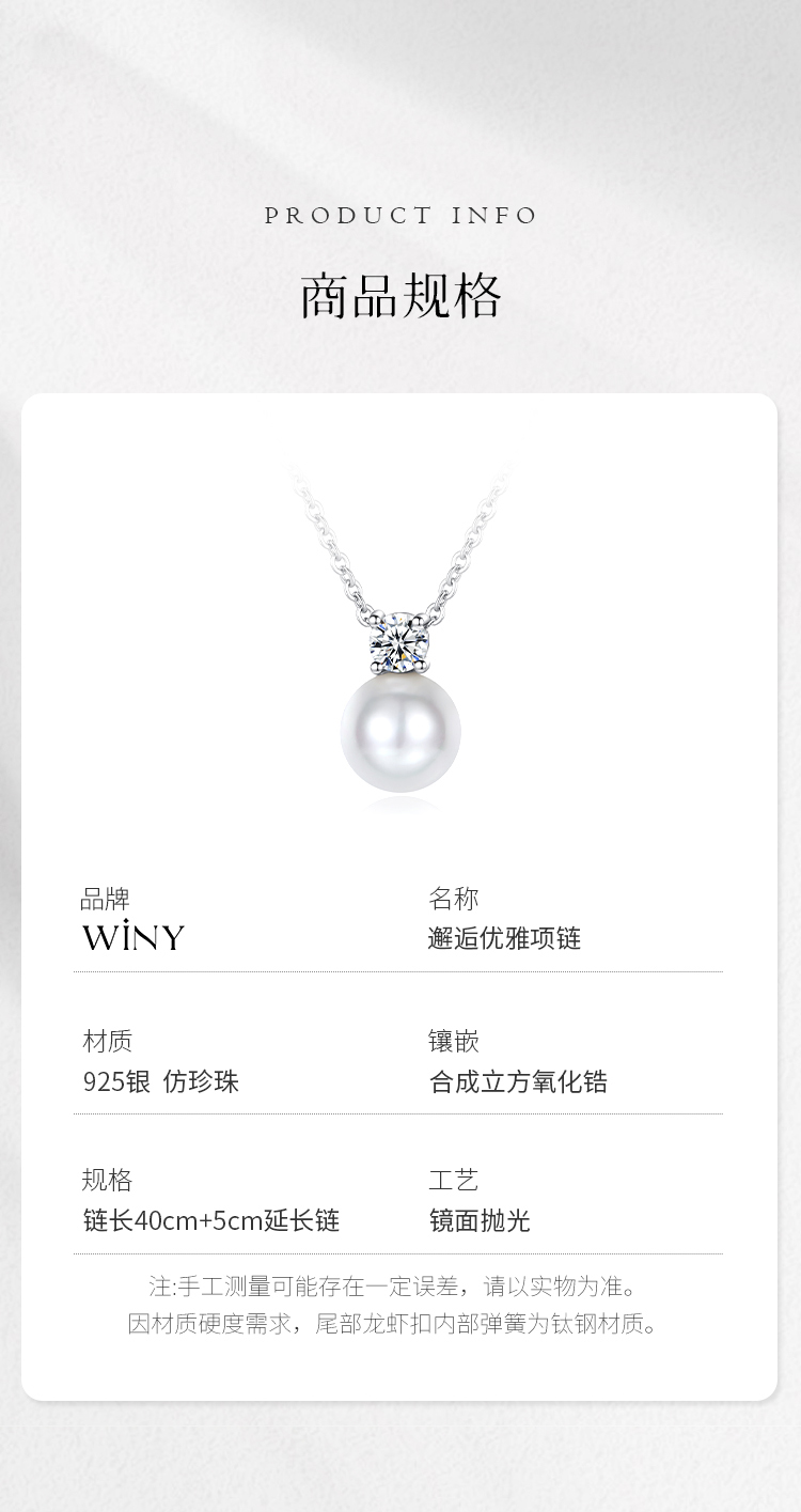 Winy925银邂逅优雅仿珍珠项链送女友闺蜜节日生日礼物