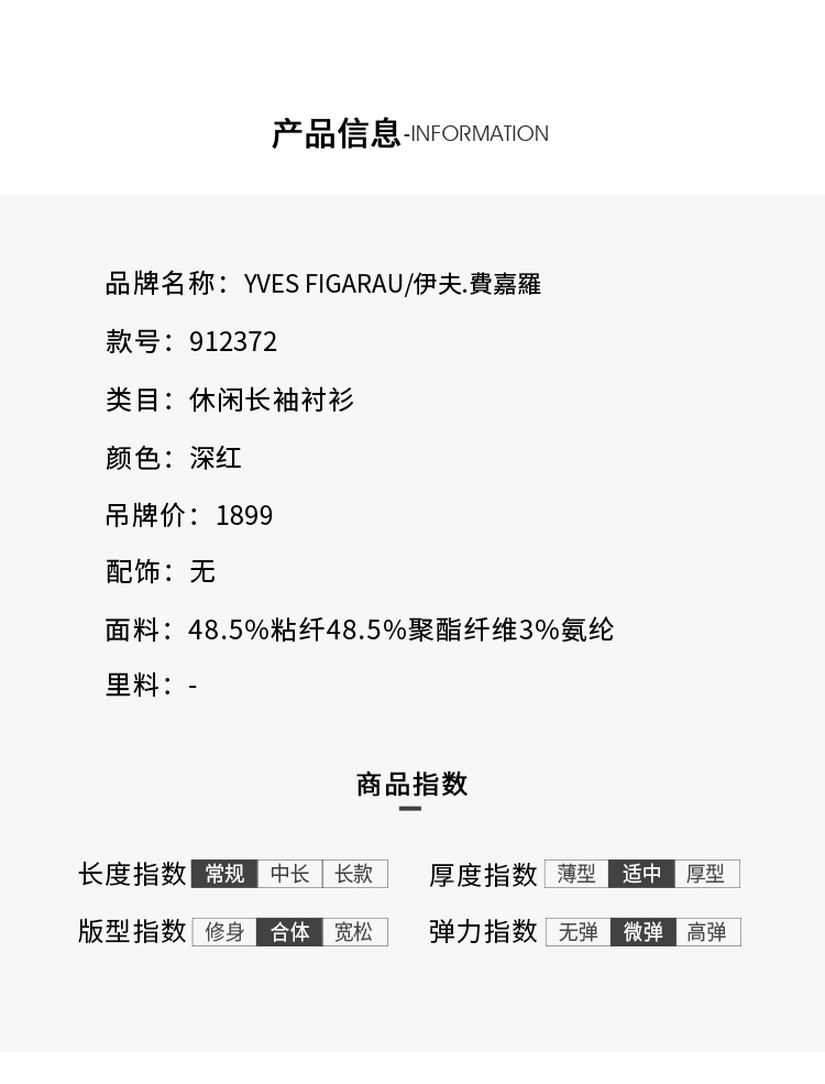 YvesFigarau伊夫·费嘉罗912372休闲长袖衬衫