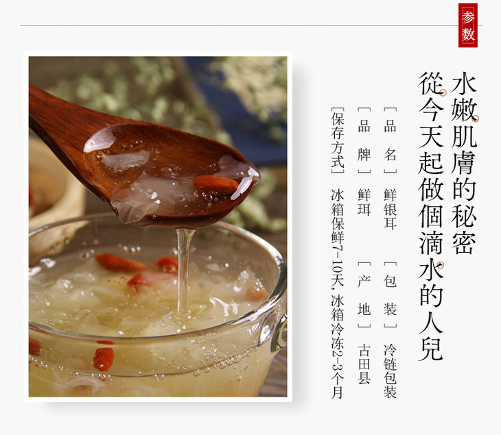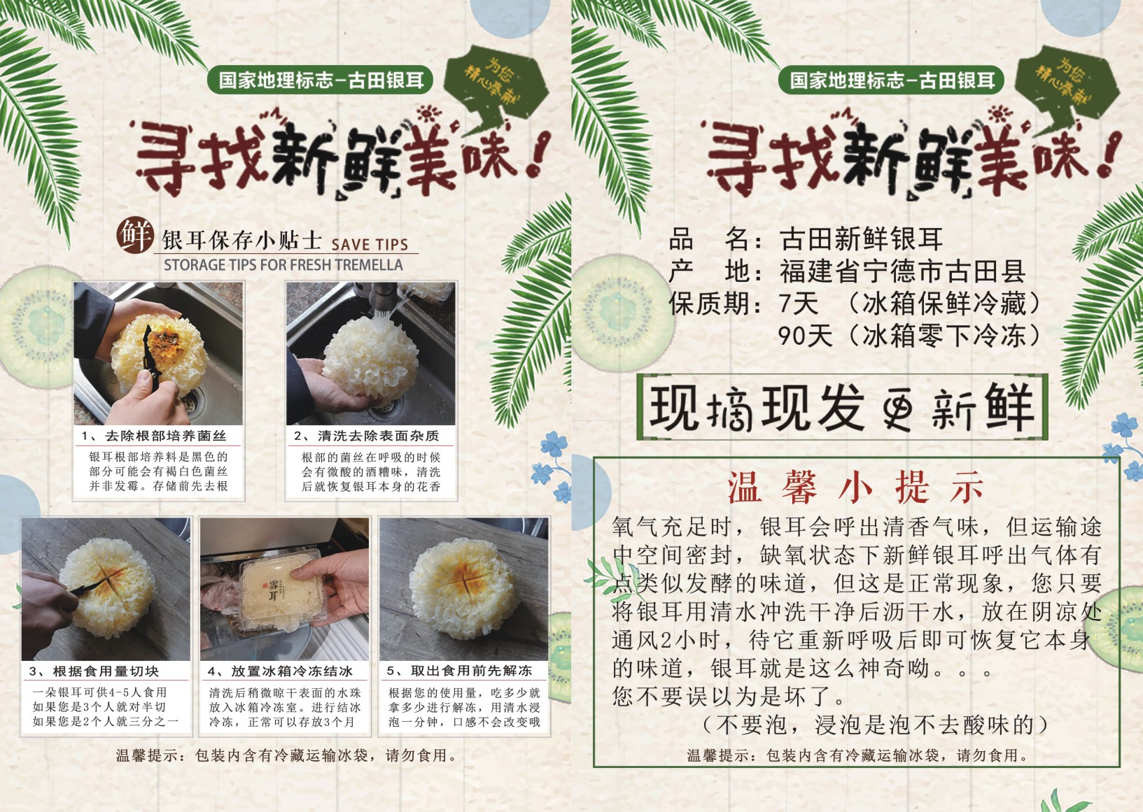 品名:古田高山鲜银耳 规格:约130g/盒*6盒;拍几份发几个包裹,不一定能同时到达,请耐心等待; 发货地/产地:福建古田 包装方式:泡沫箱+冰袋+吸塑盒 物流信息:默认顺丰/圆通/邮政快递,不支持指定快递 发货区域:新疆、西藏不发;内蒙、甘肃、宁夏、青海、黑龙江、吉林发圆通或极兔; 物流详情:周六、周日及节假日除外,正常48小时内发货,到货时间约为2~5天,请耐心等待 售后说明:收到货后有质量问题,在24小时内都可以拍照(坏品+快递单面箱子一起拍)上传,申请按坏品比例理赔或联系客服,生鲜性质特殊,不支持7天无理由退换货;因地址错误,手机号联系不上,拒收等造成的损失无法售后,请理解; |
