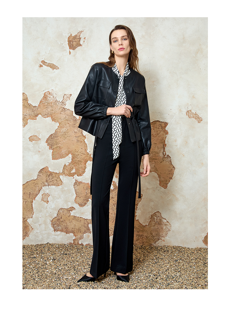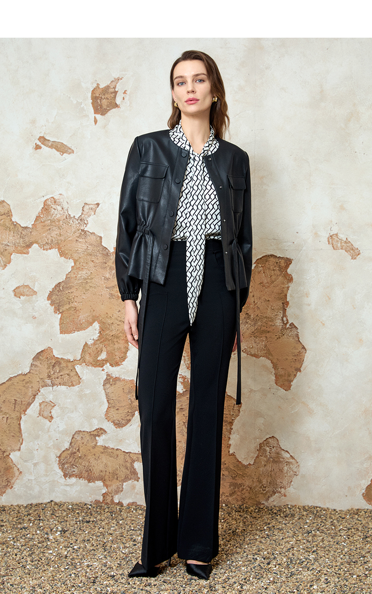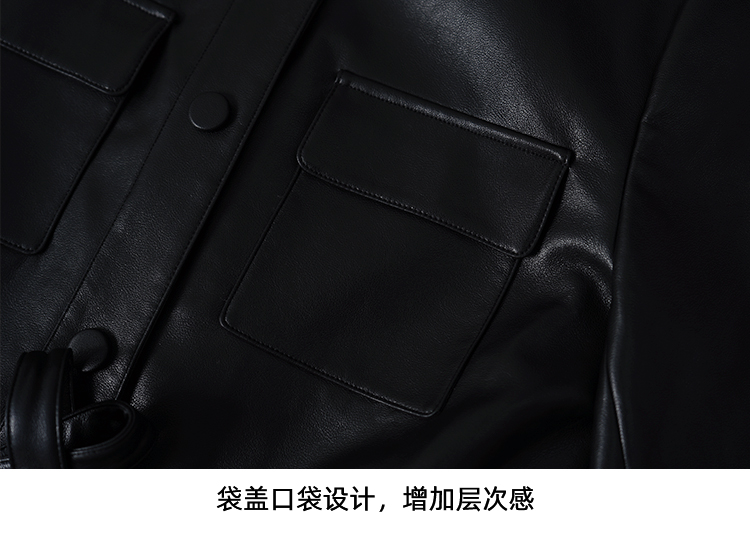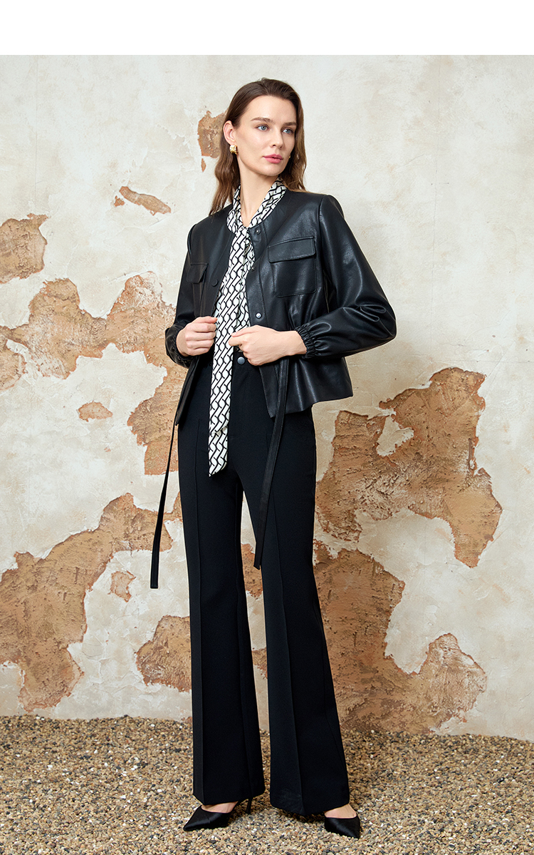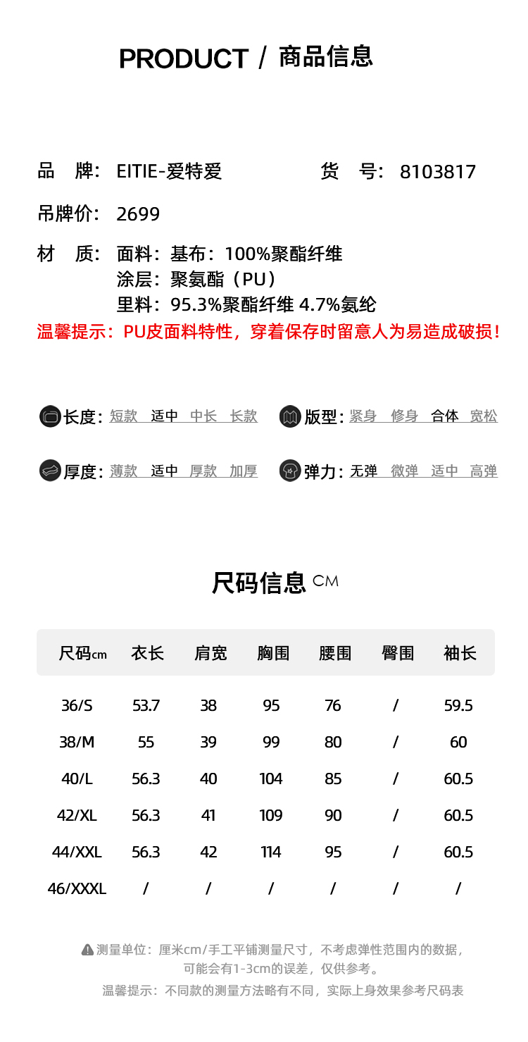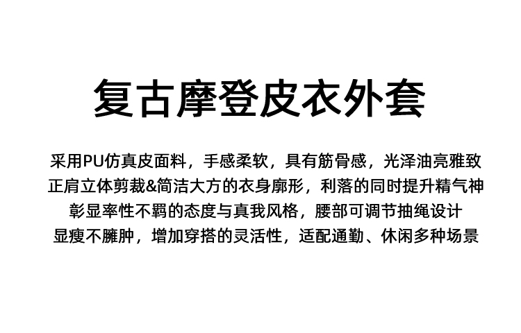 EITIE爱特爱2025春季新款时尚通勤复古圆领百搭抽绳显瘦皮衣外套8103817