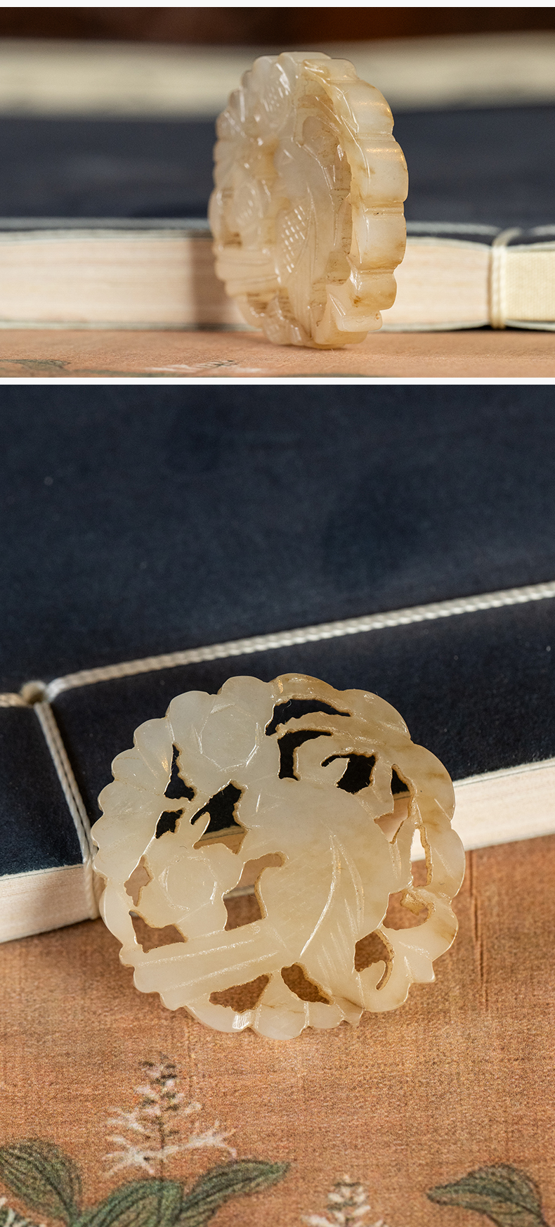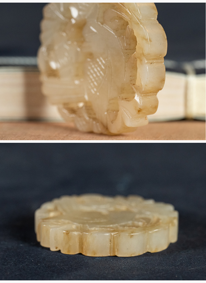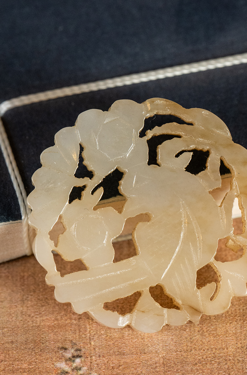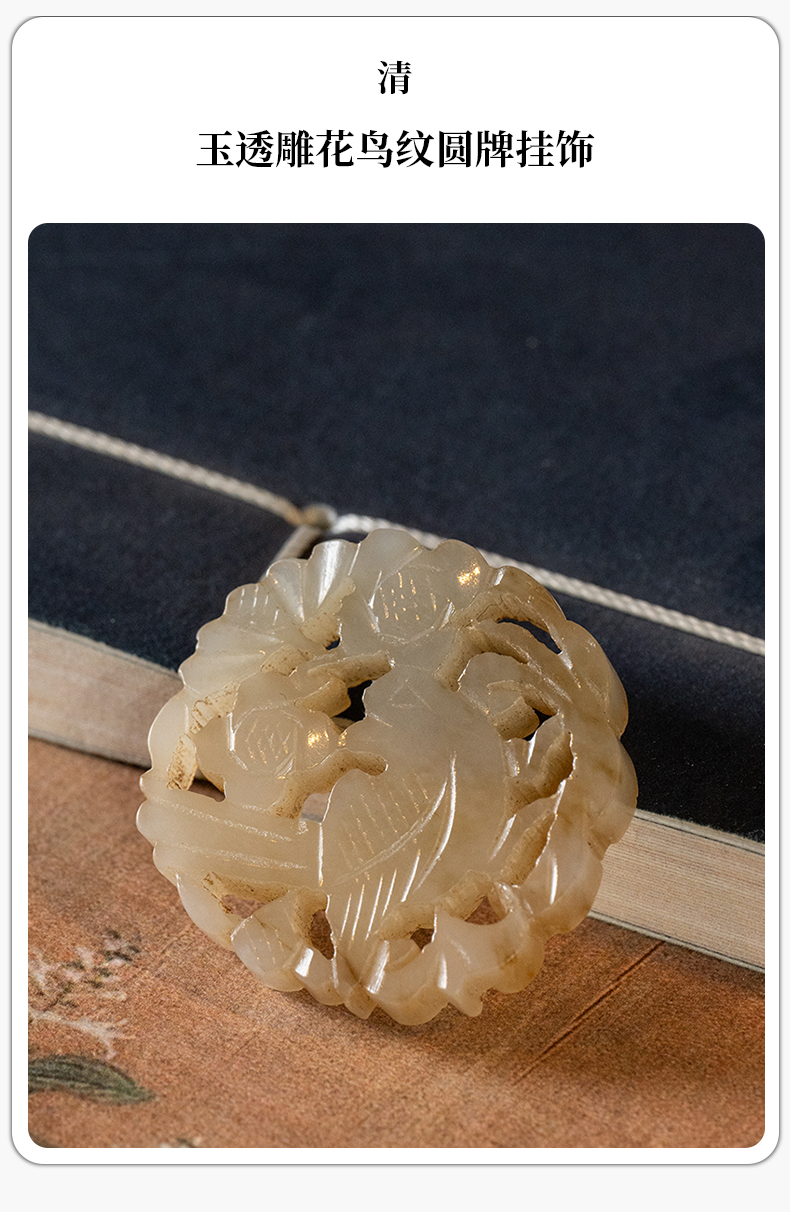 清 玉透雕花鸟纹圆牌挂饰
