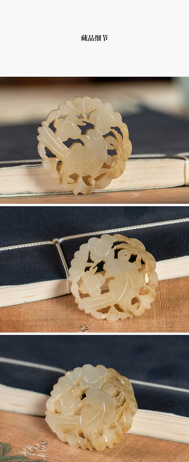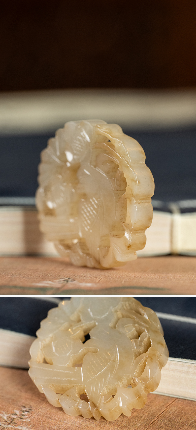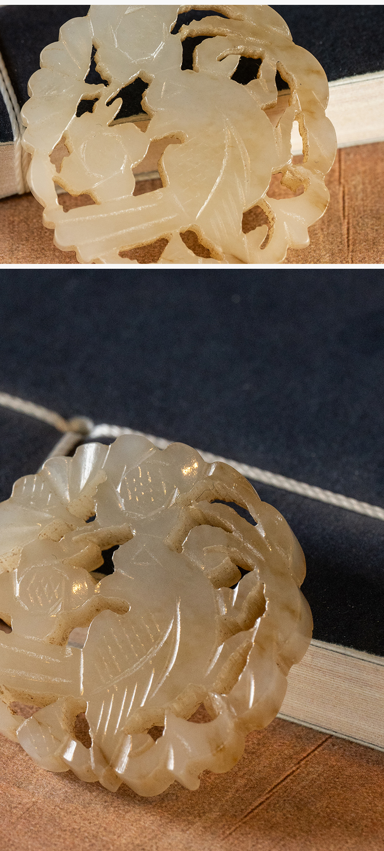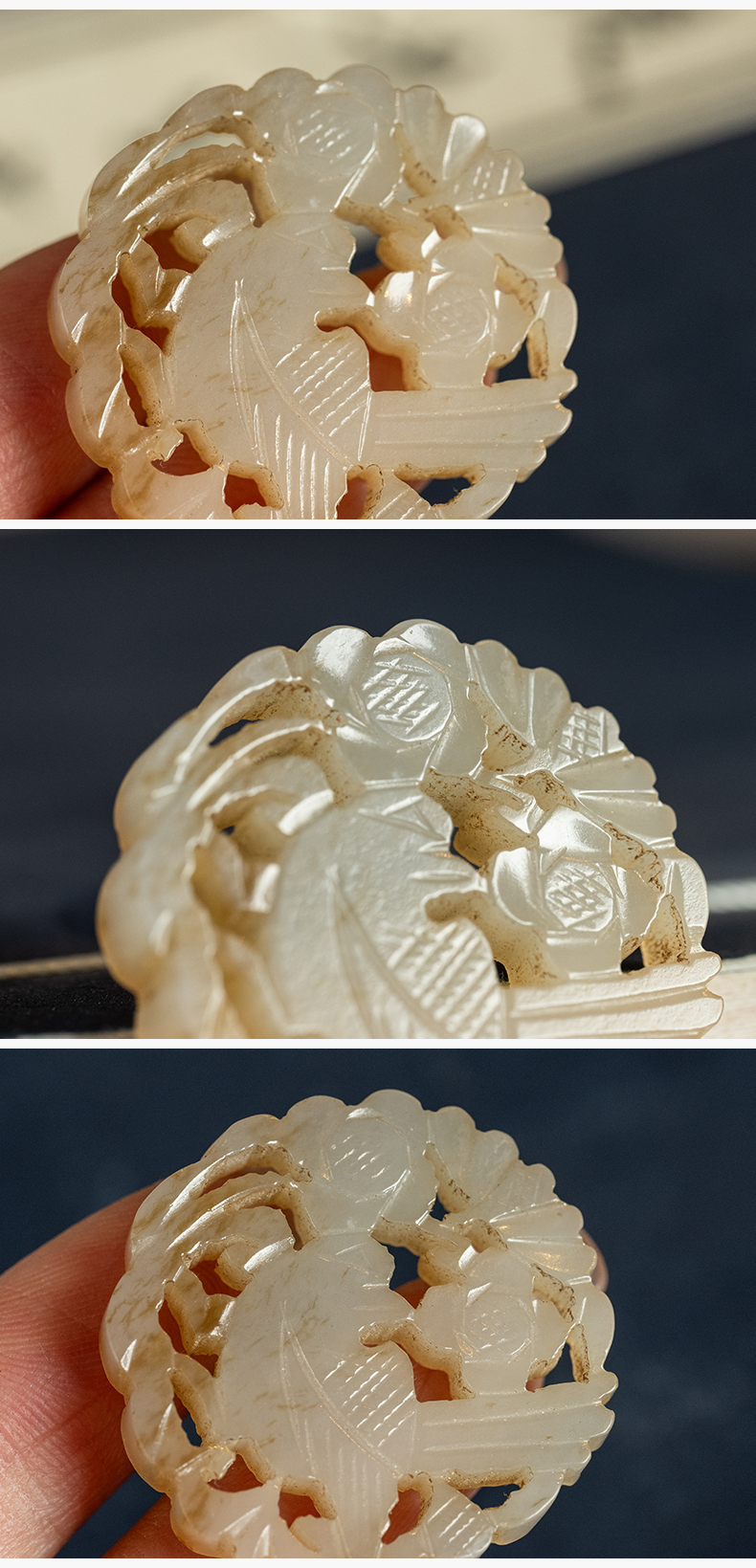 清 玉透雕花鸟纹圆牌挂饰