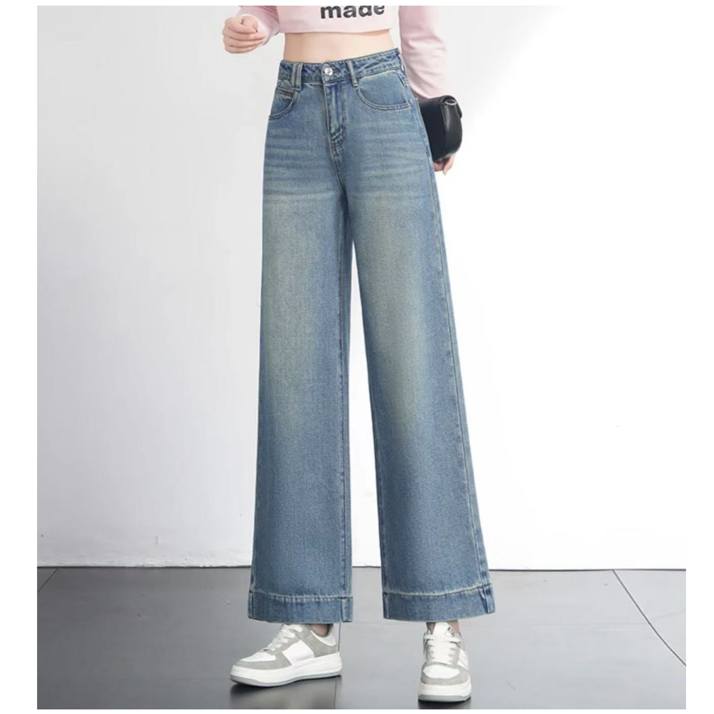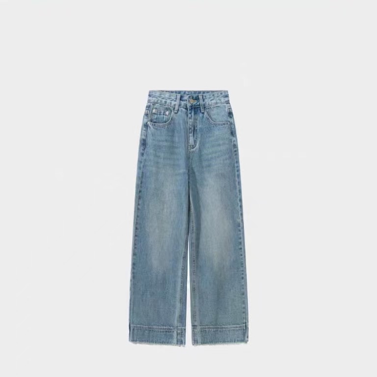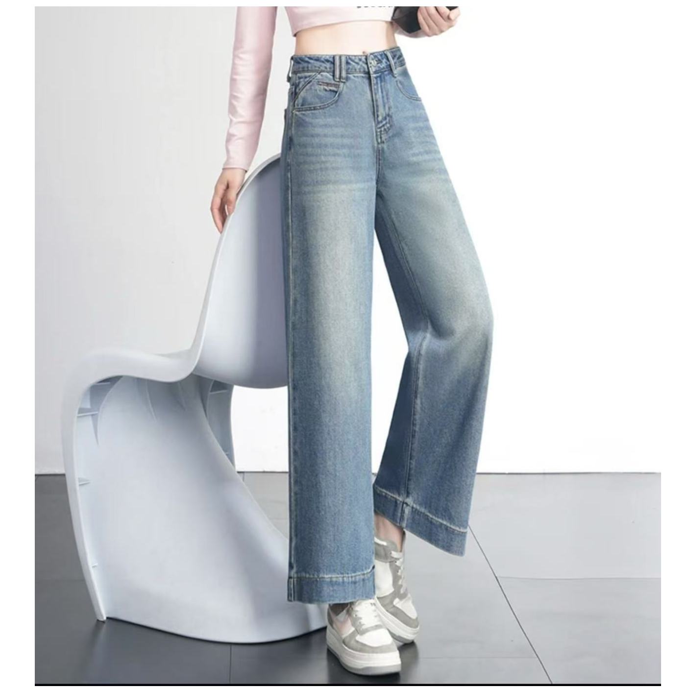 顺丰包邮13224洛诗琳春季新款高腰显瘦微喇直筒牛仔裤女25104