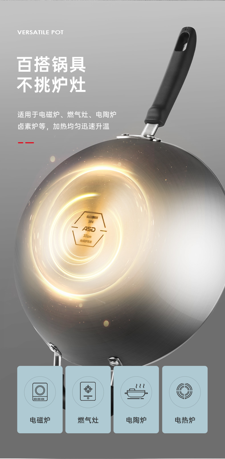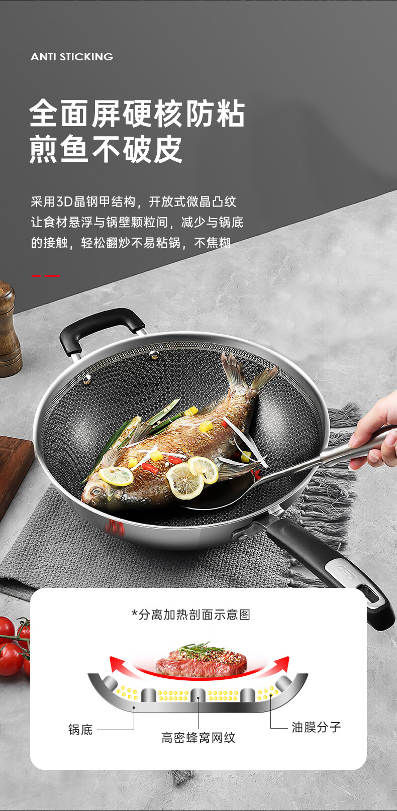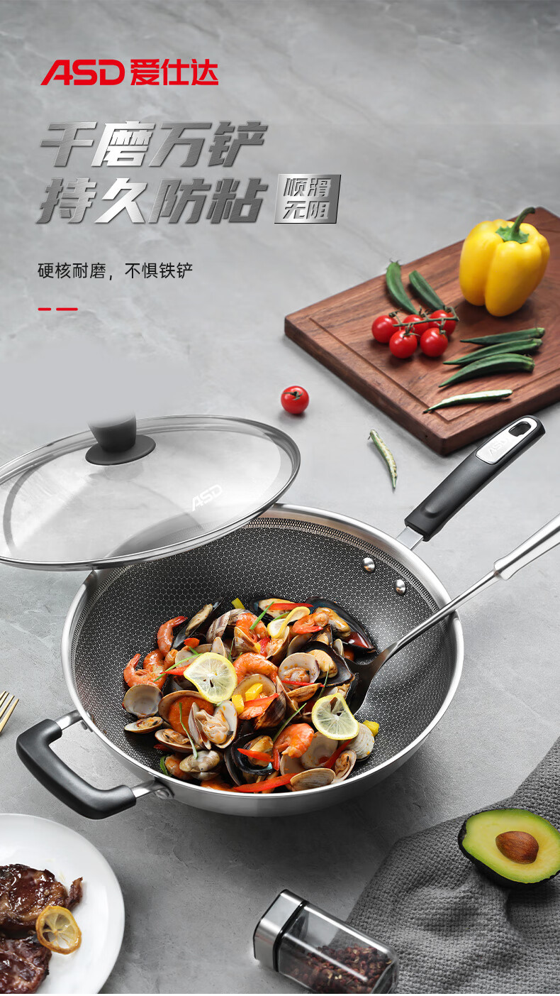 【安达联帮&爱仕达&仅限快递】防粘三层钢炒锅CC32E1WG(厂家直发)