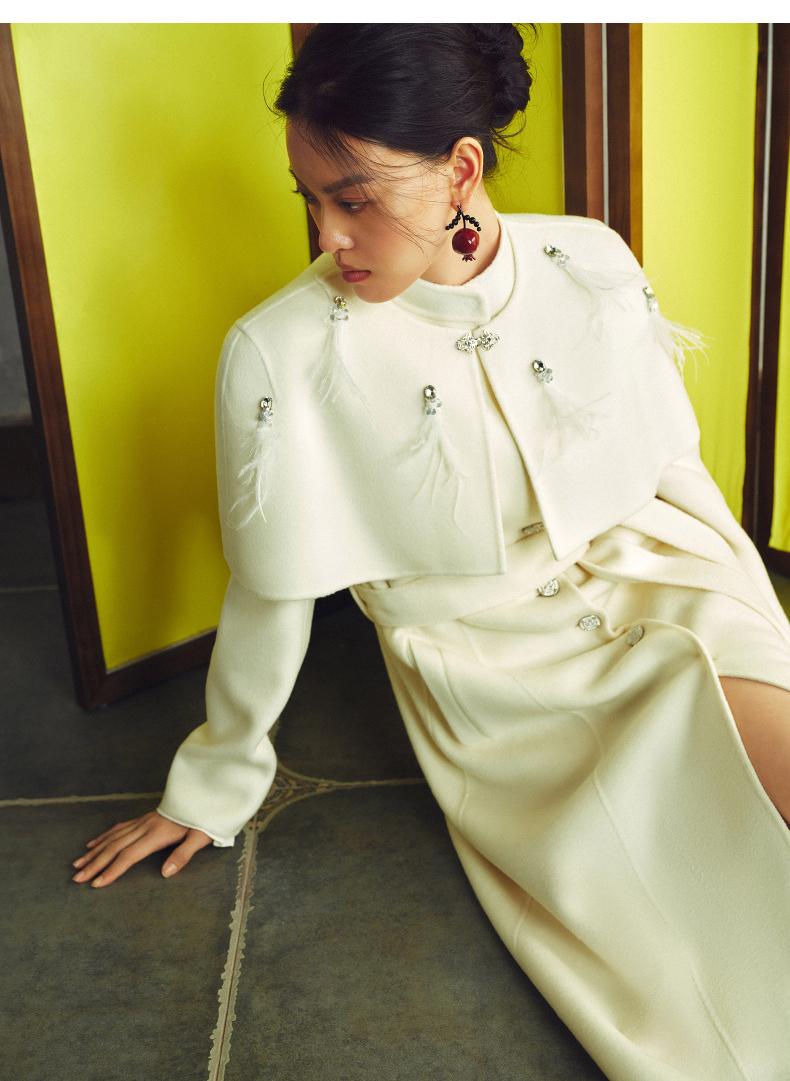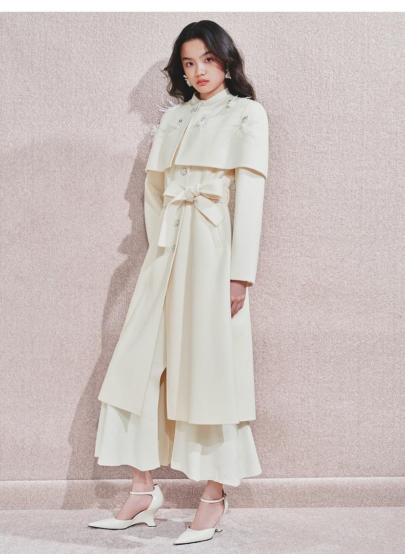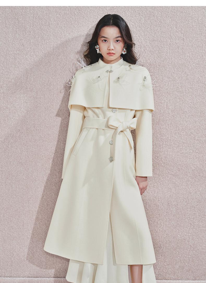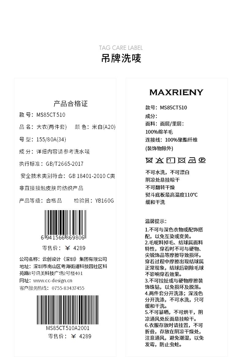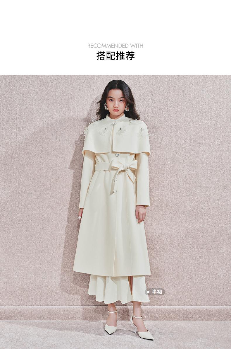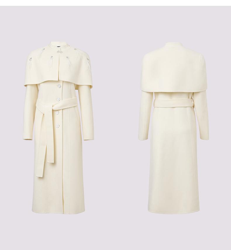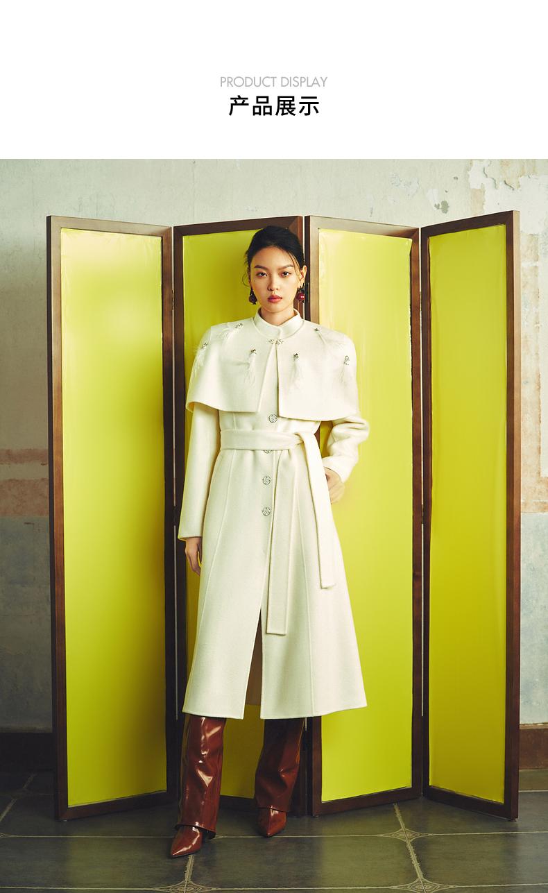 MAXRIENY贵雅新中式毛呢大衣2024新款收腰系带绵羊毛外套中长款(货号:MS85CT510)