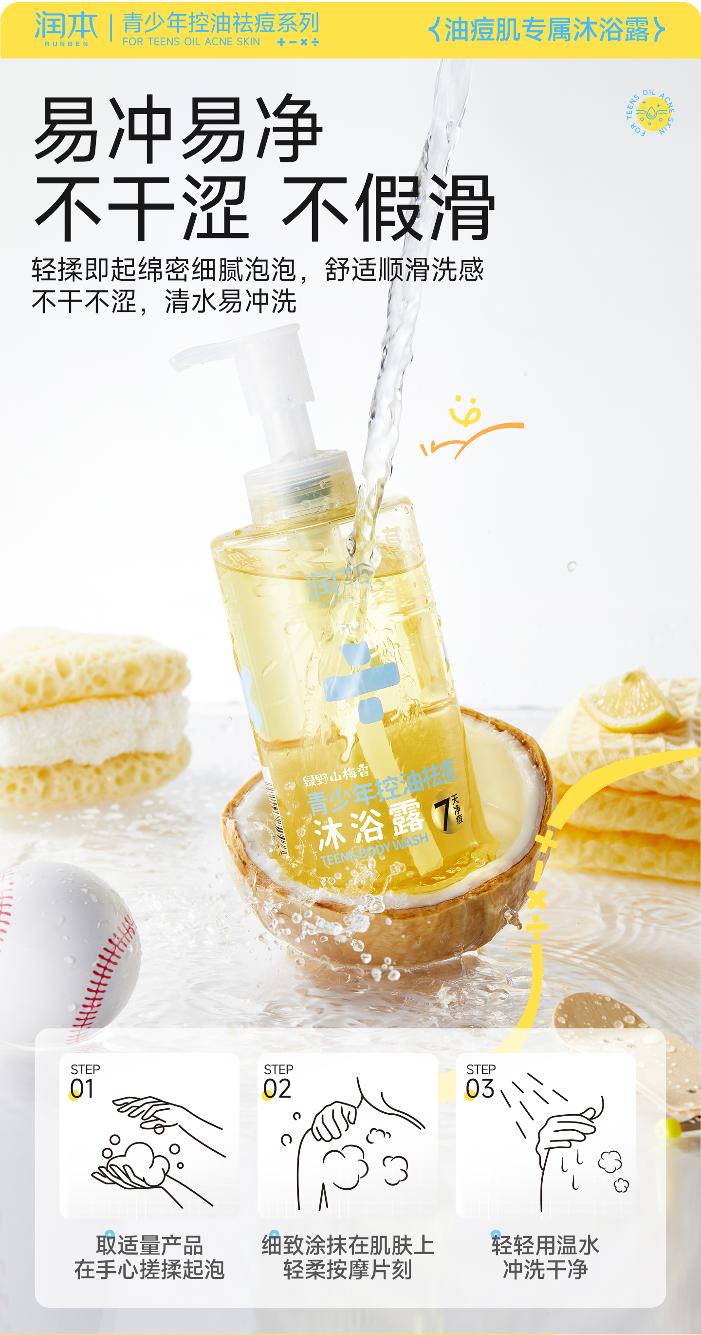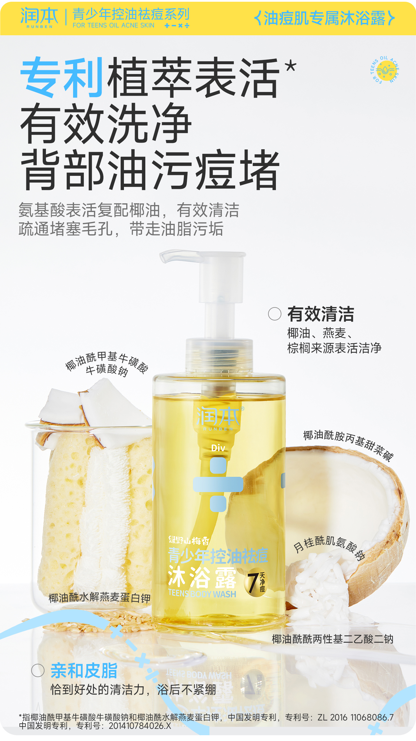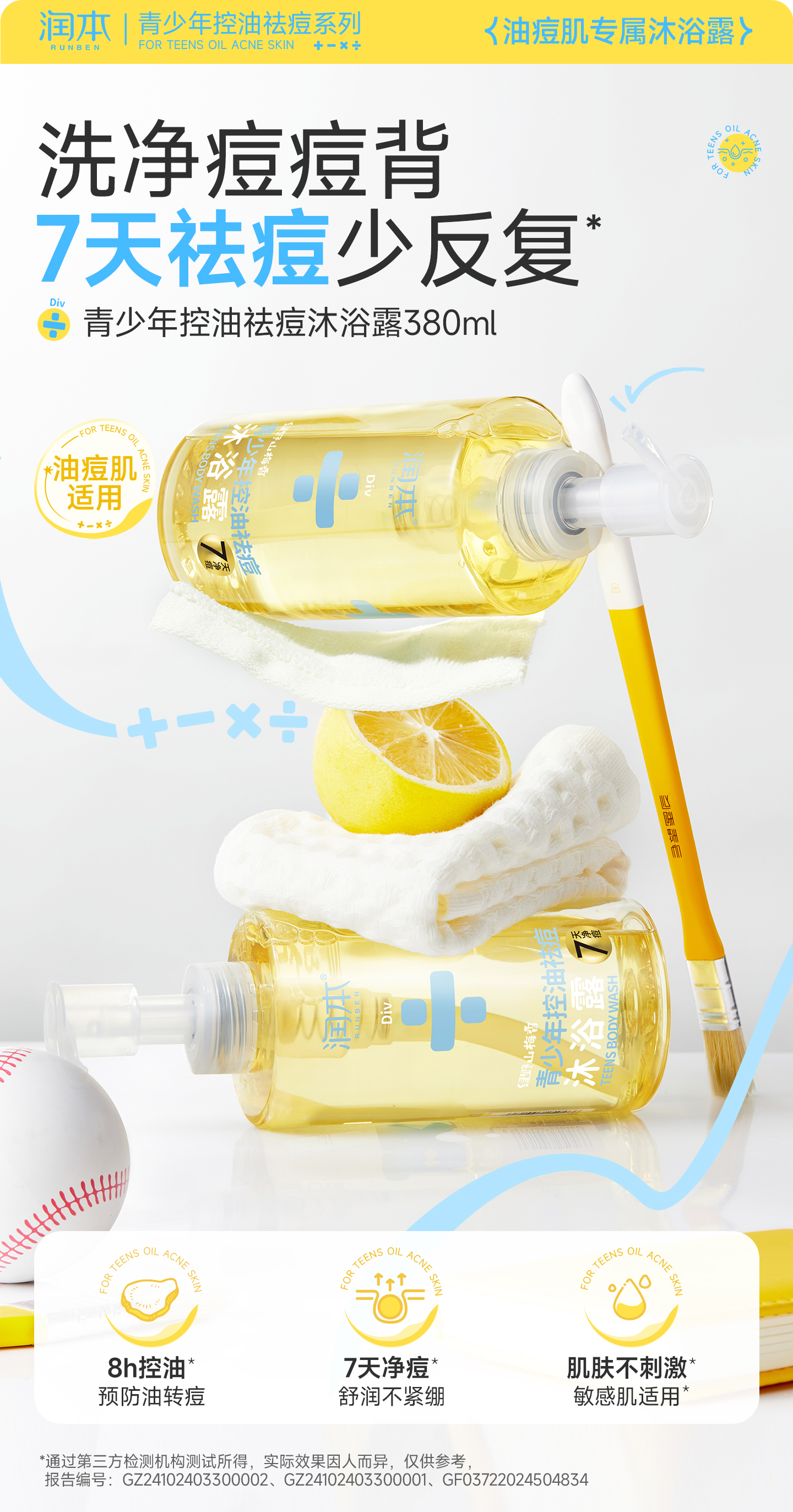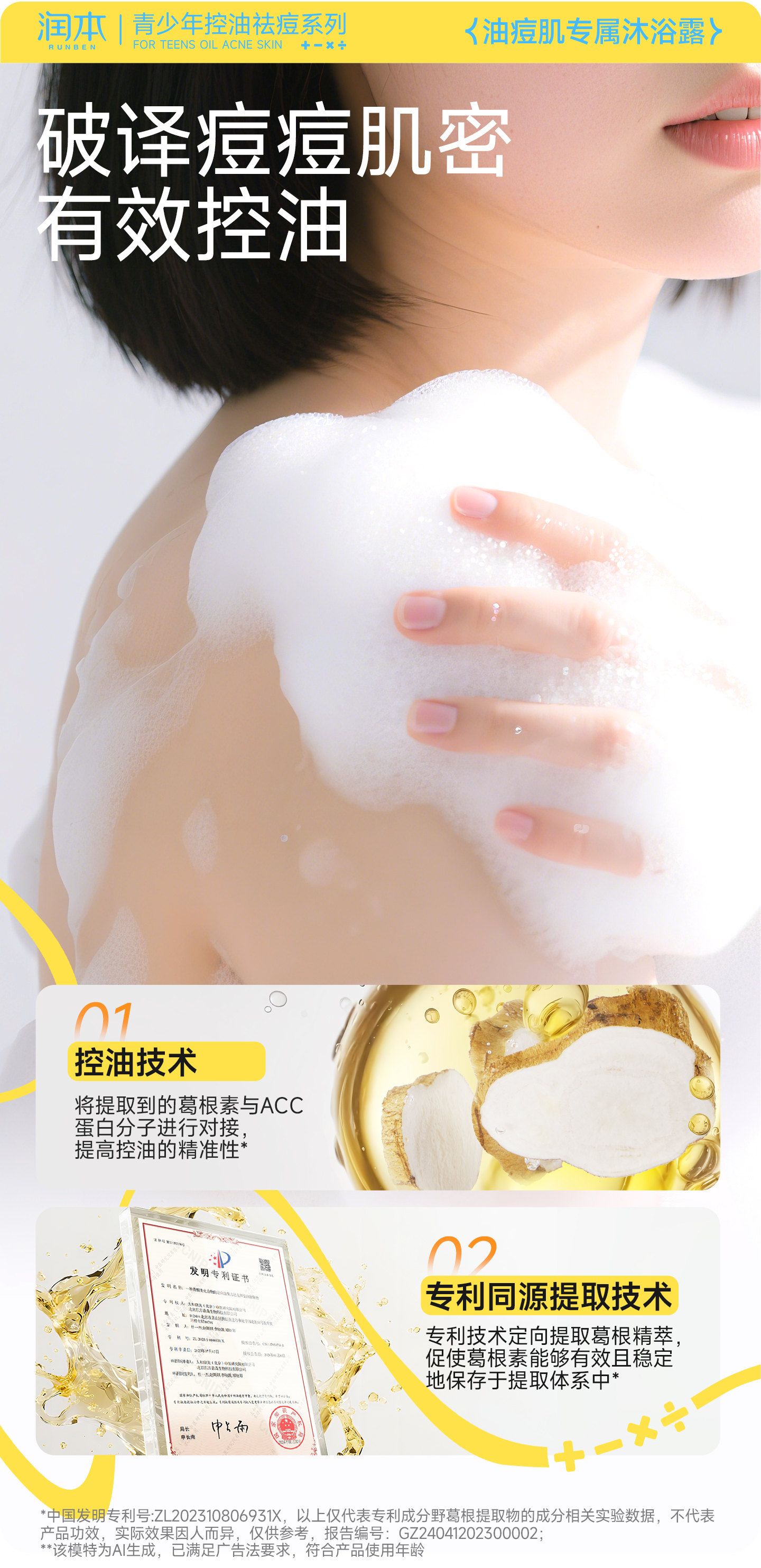 润本青少年控油祛痘沐浴露 清洁后背痘男生女生洗护专用沐浴