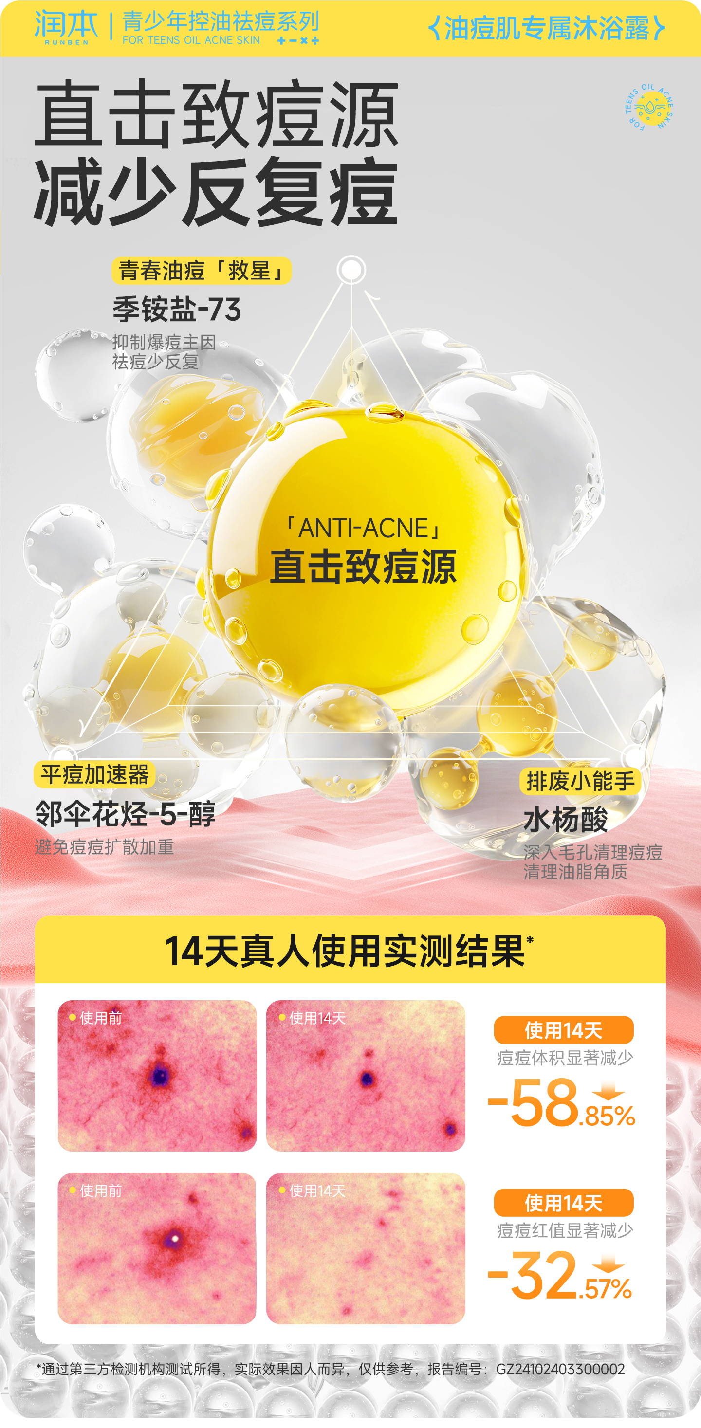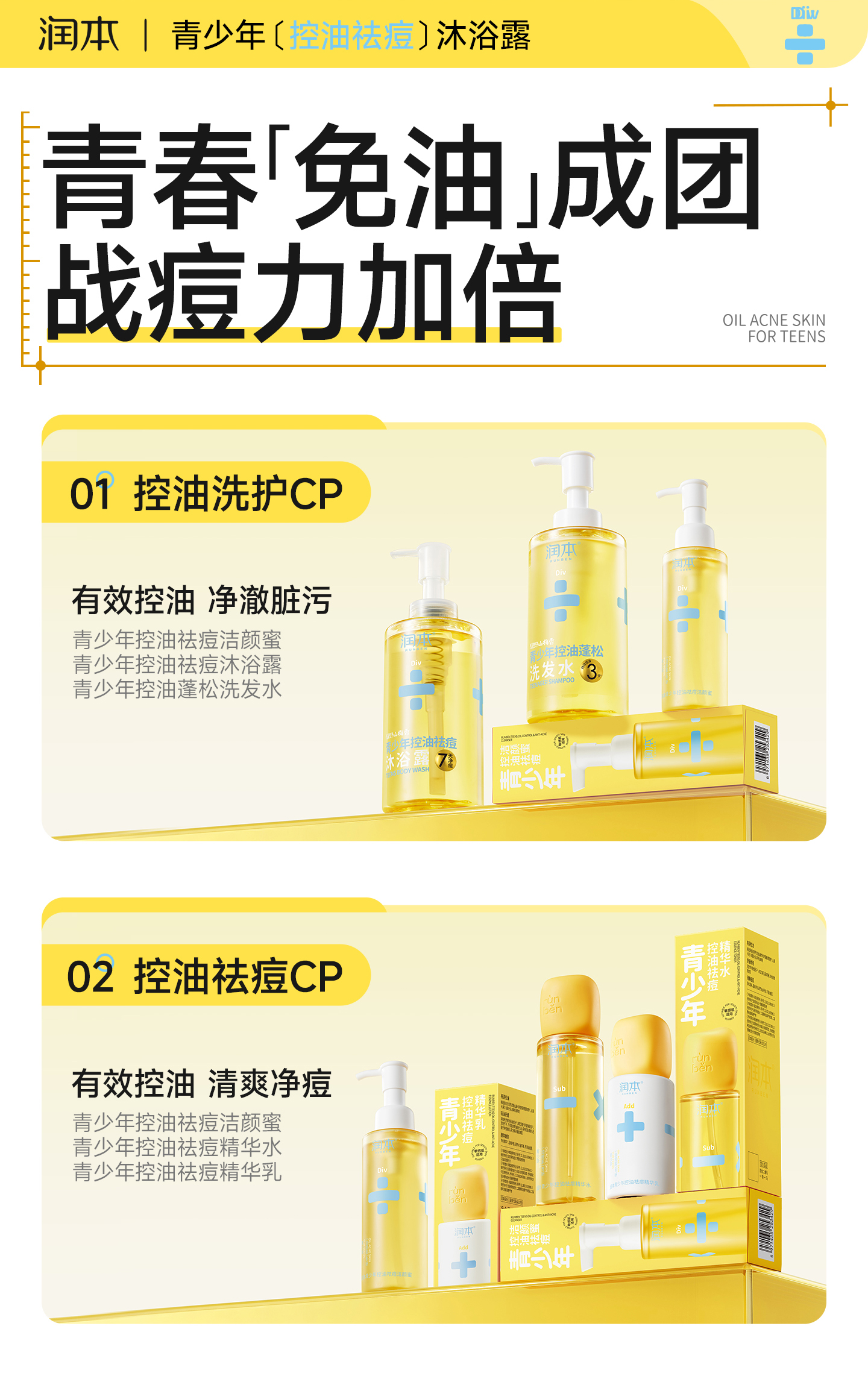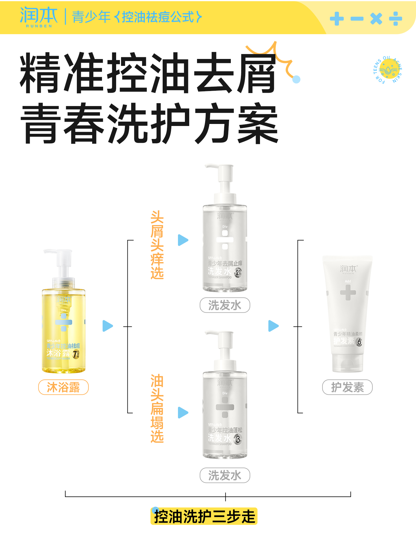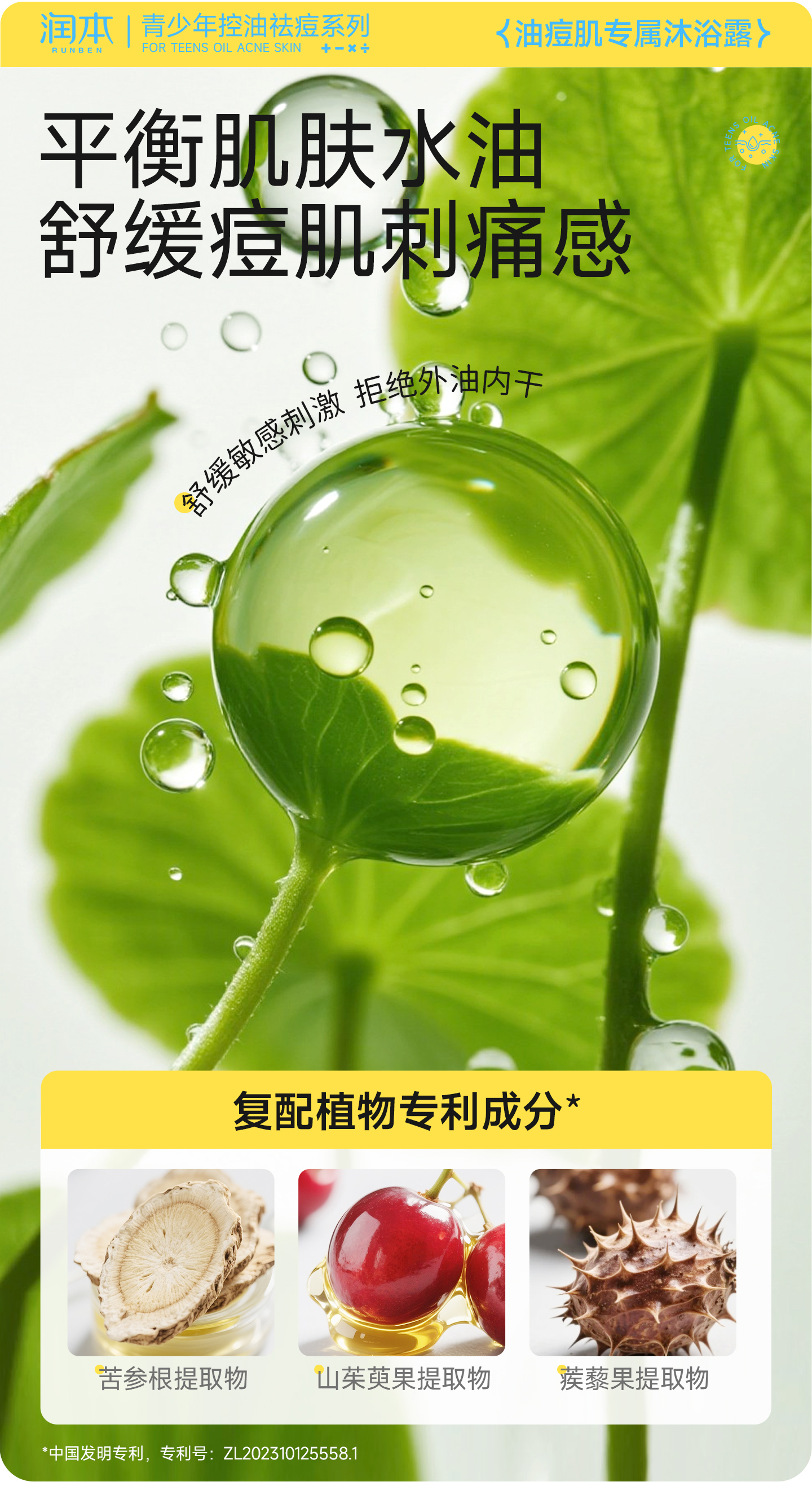 润本青少年控油祛痘沐浴露 清洁后背痘男生女生洗护专用沐浴