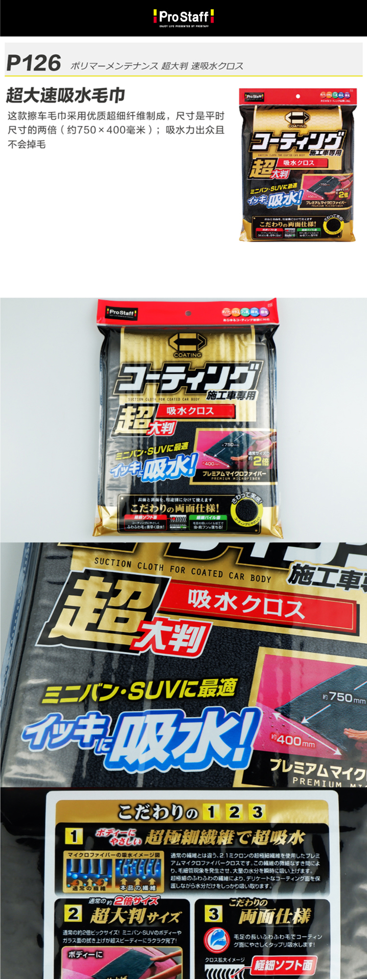 Prostaff专业大师P-126洗车毛巾擦车专用抹布