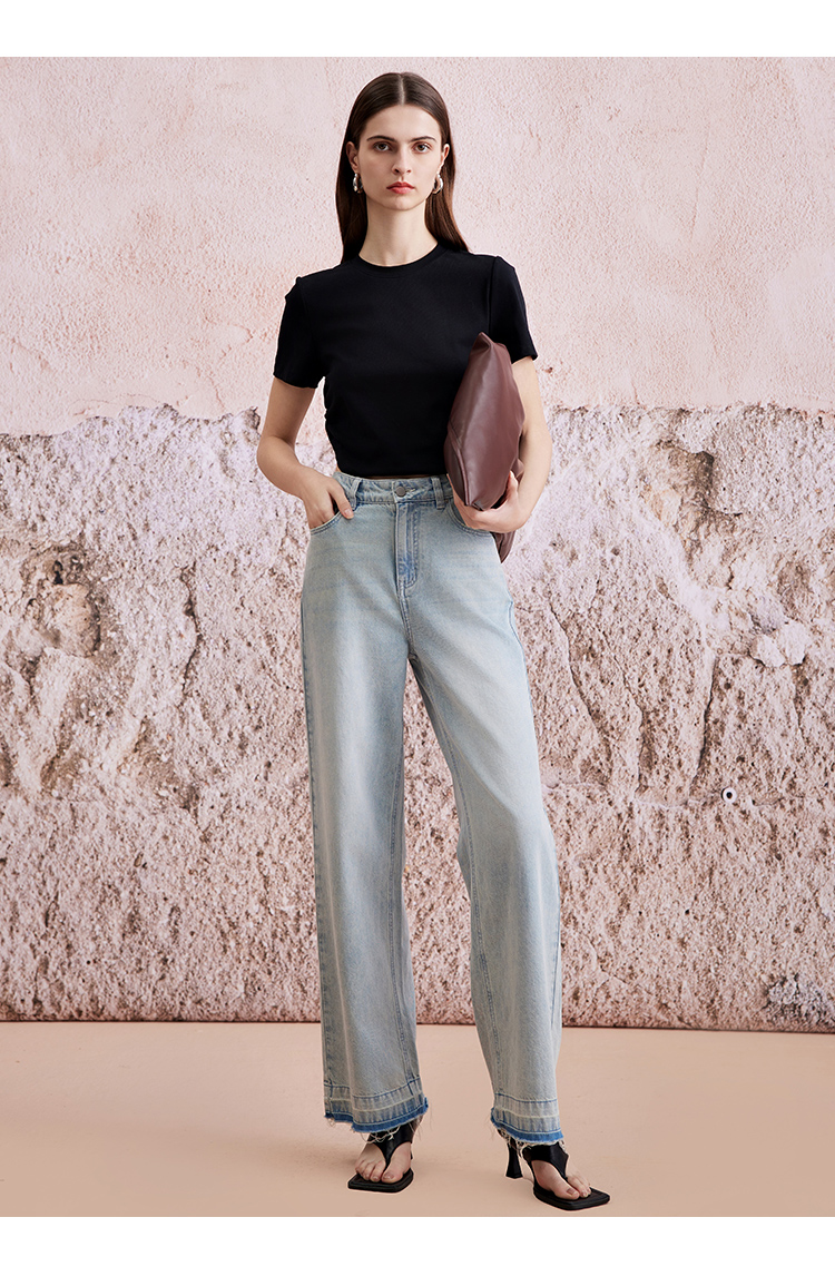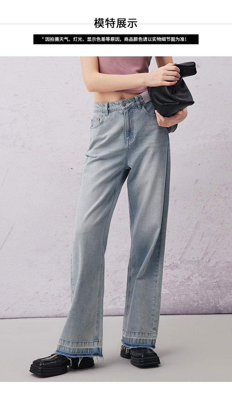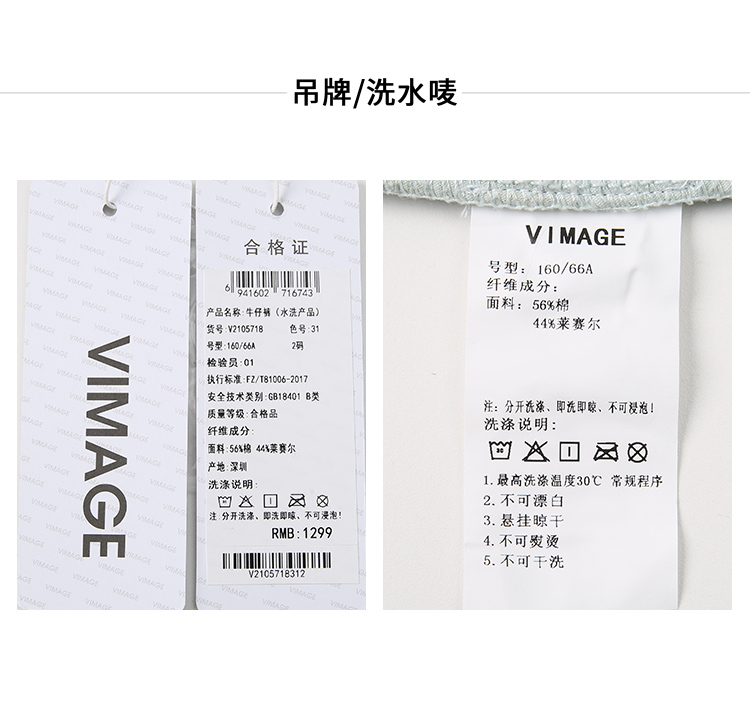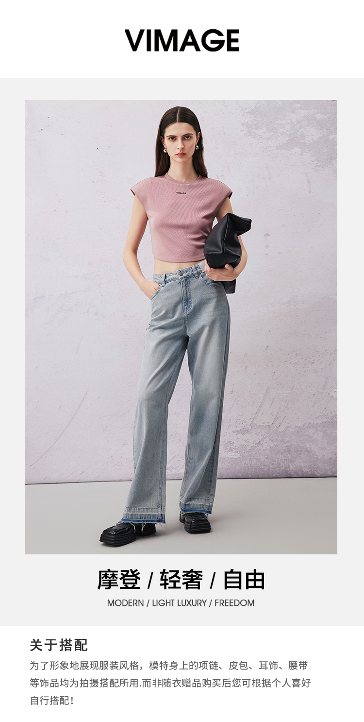 VIMAGE纬漫纪春季新款时尚休闲显瘦高腰百搭牛仔裤V2105718