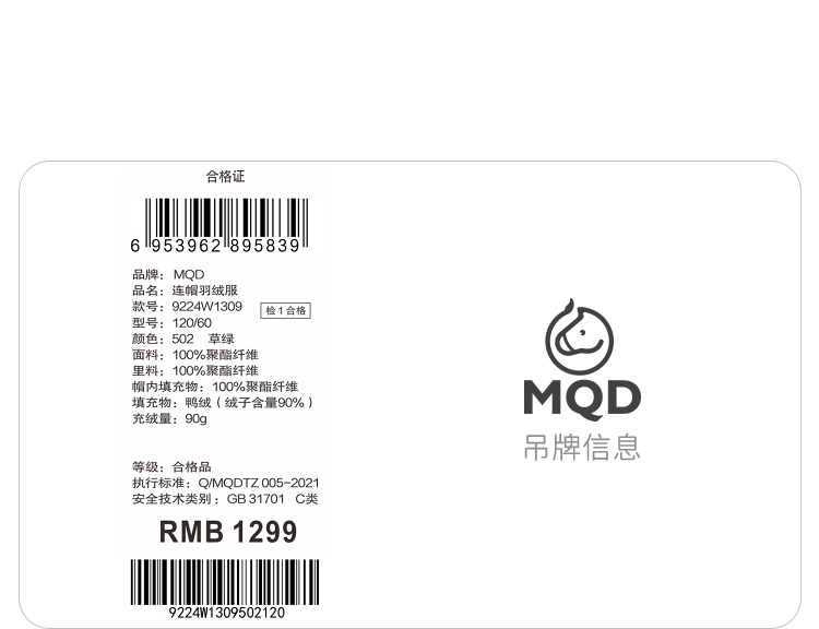【MQD】【童装男童加厚保暖羽绒服冬装新款儿童韩版洋气面包服厚外套