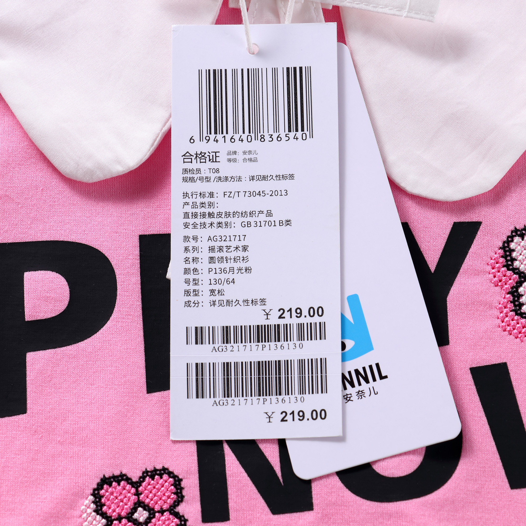 【实体店同款】女童圆领针织衫买即赠领子2023年夏季新款安奈儿童装AG321717