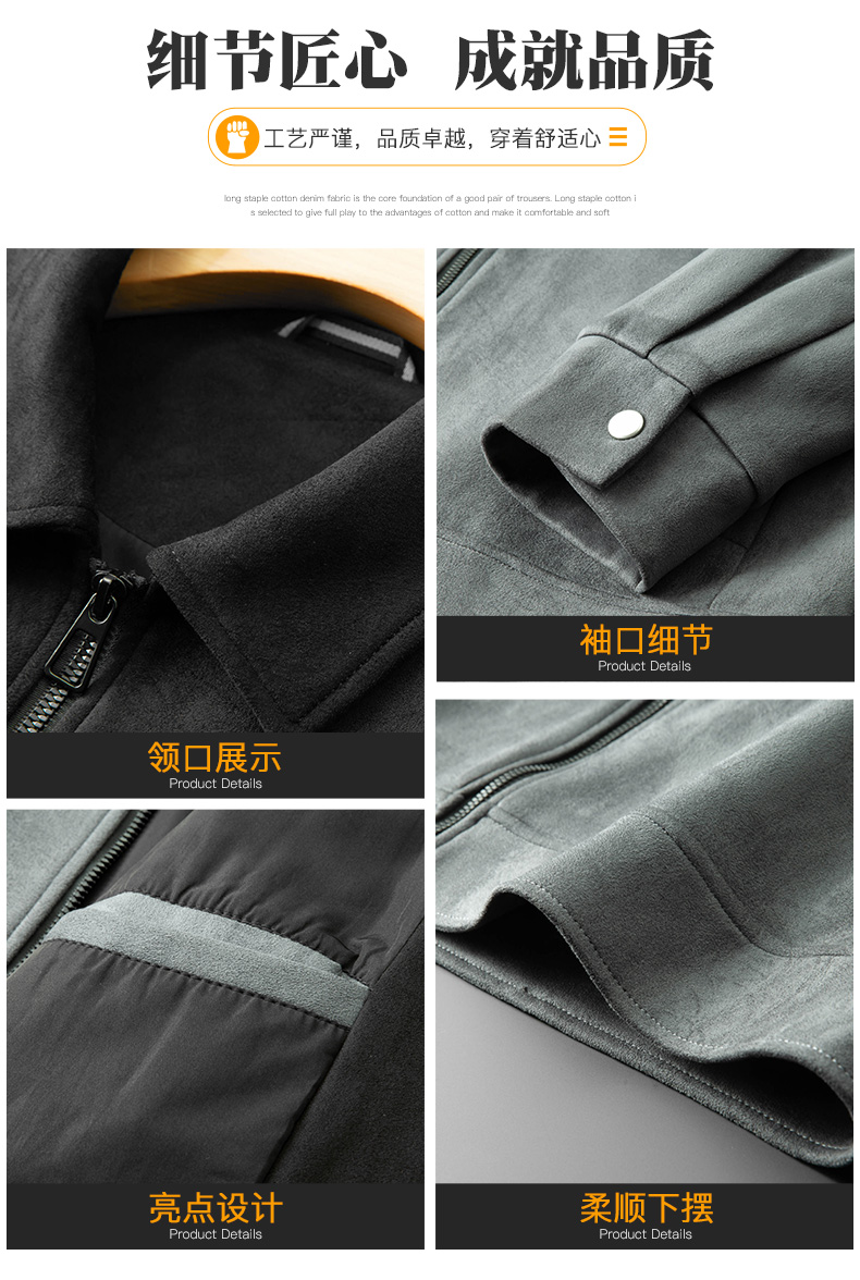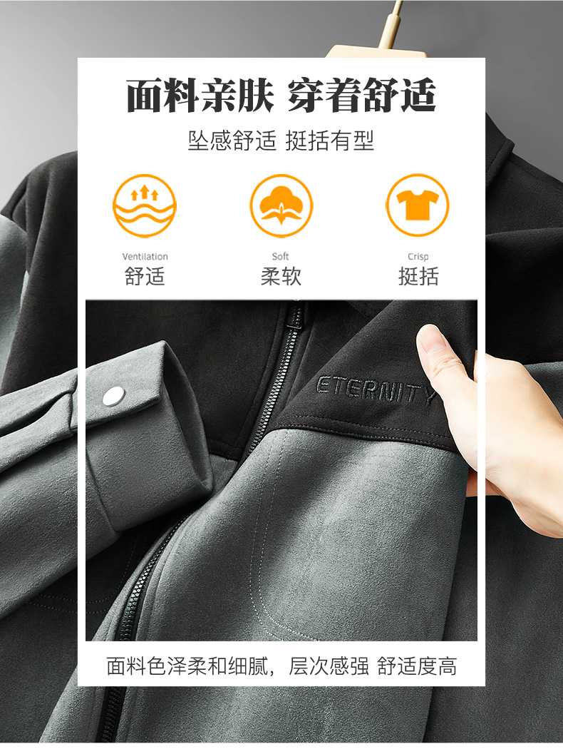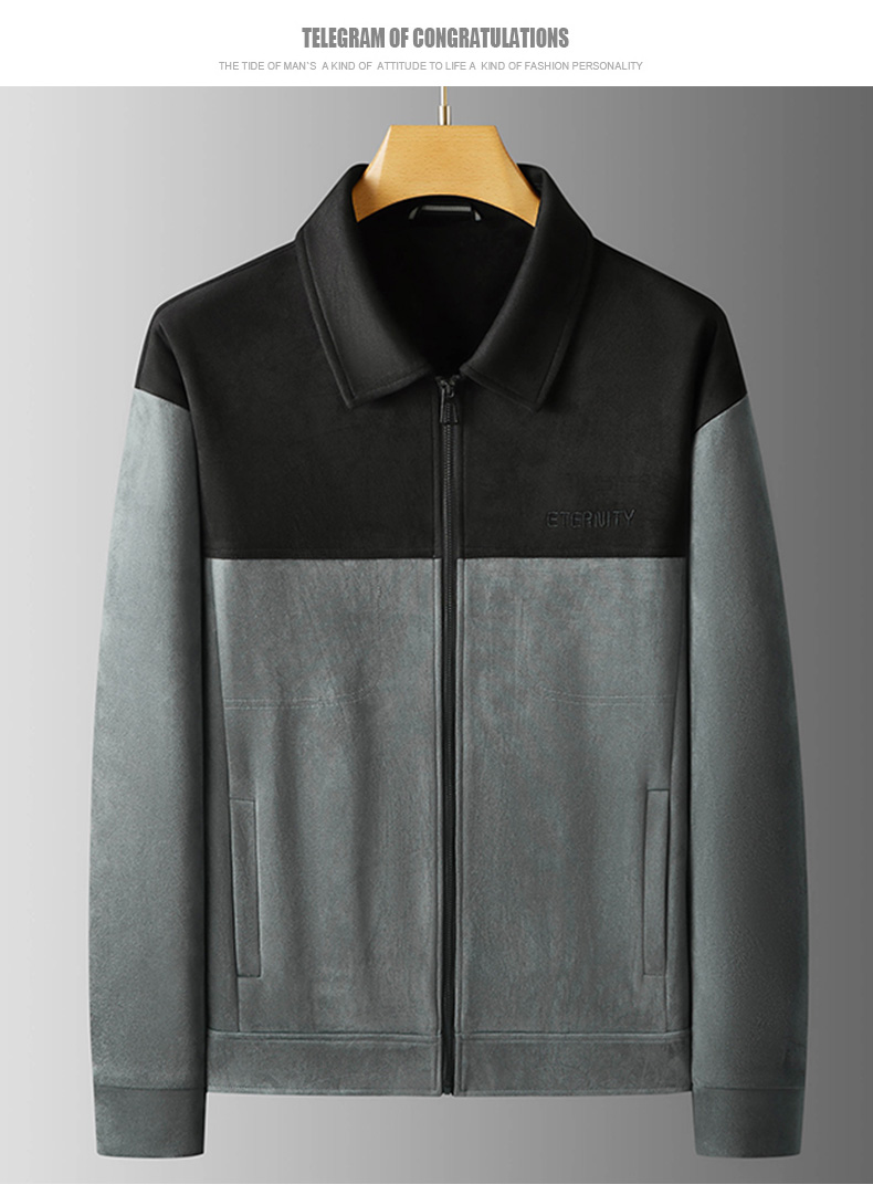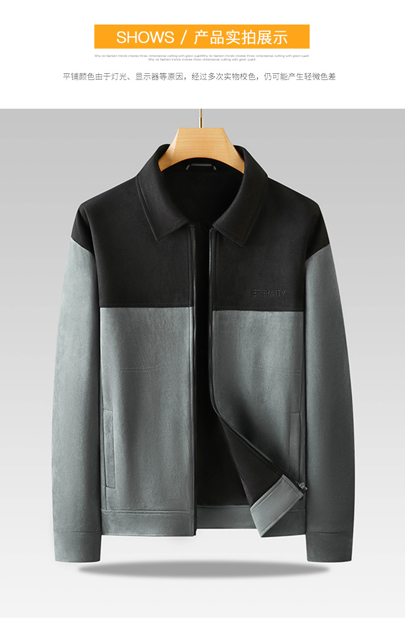 【麂皮绒】【新款DPF】大依优型大码男装翻领夹克麂皮绒加肥加大休闲夹克胖子宽松外套上衣