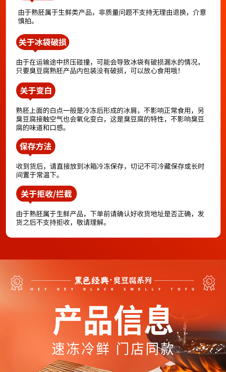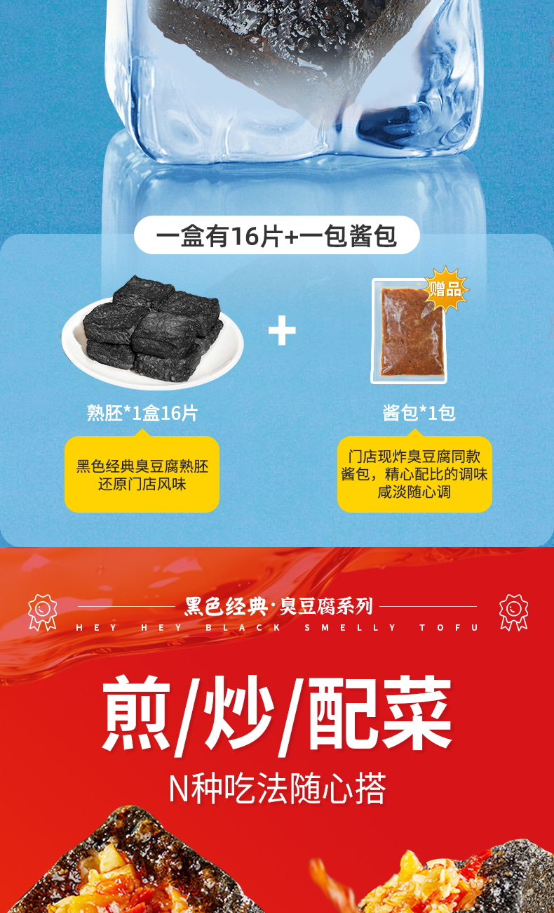 【2盒装 顺丰发货】 黑色经典长沙冷冻臭豆腐熟胚180g*2盒 加热即食赠送料包