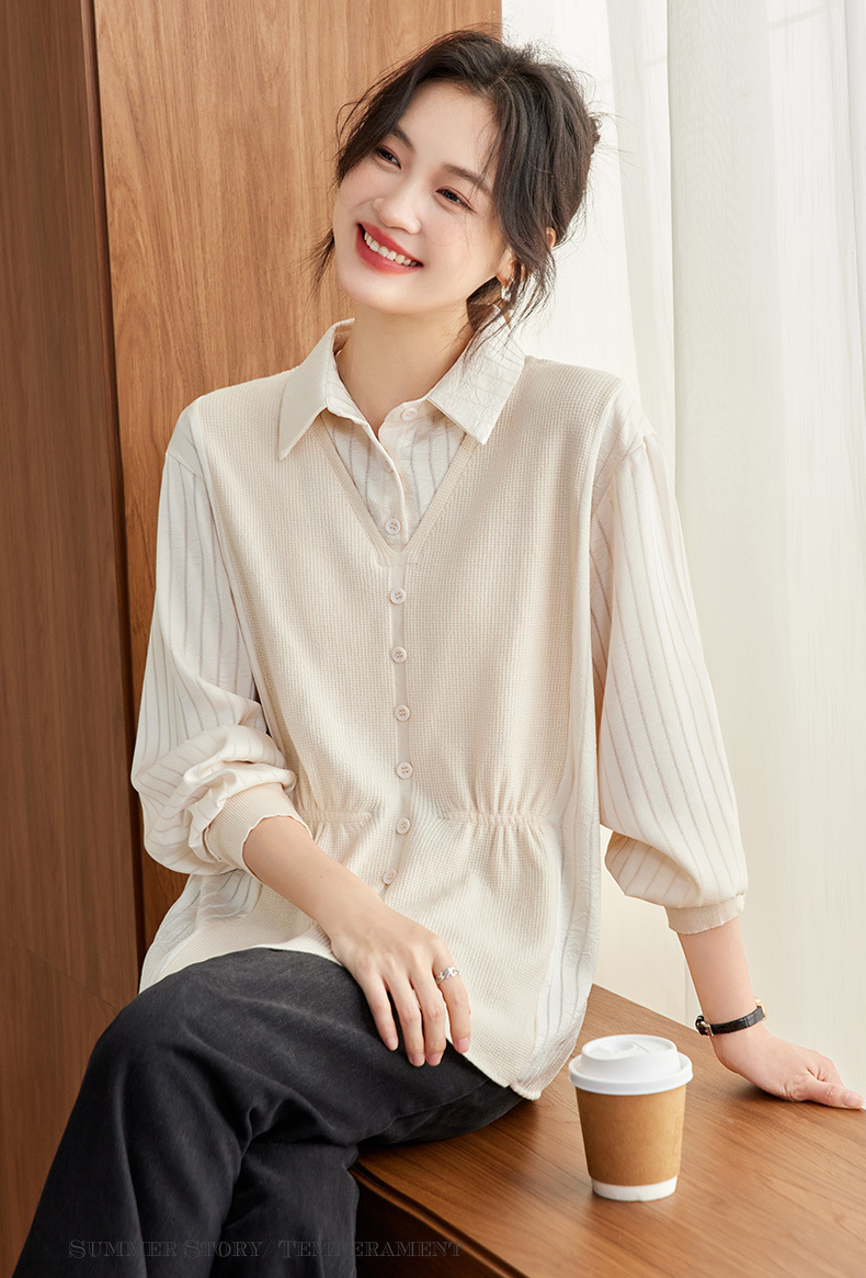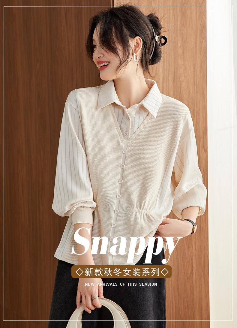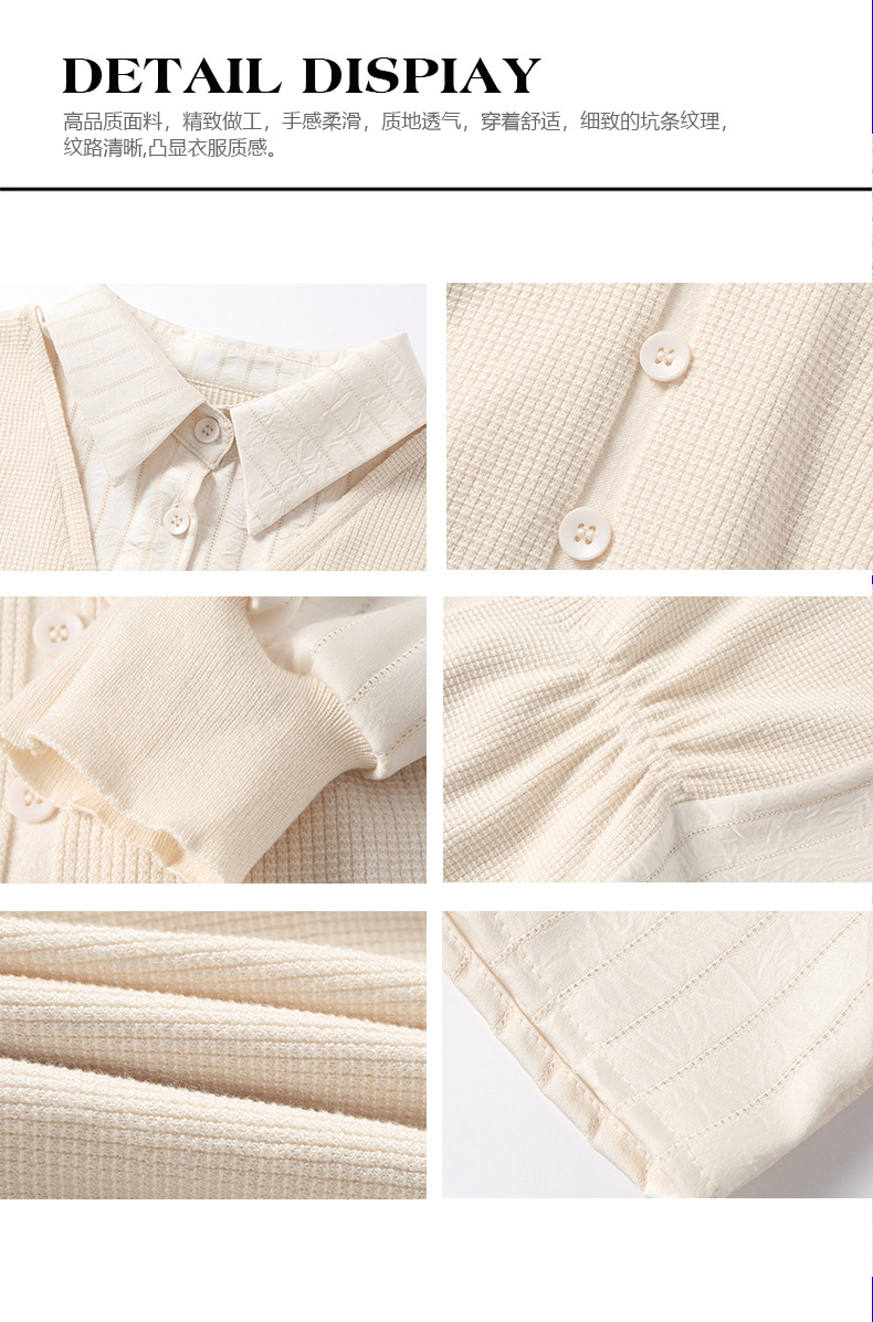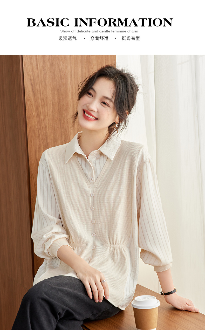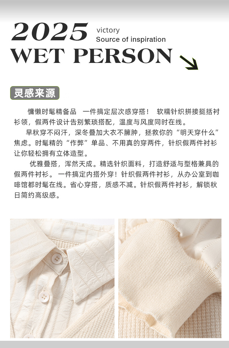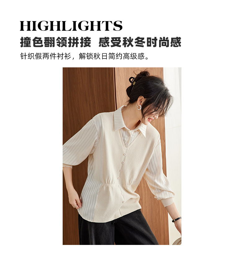 QF 99-2741时髦软糯假两件针织衫衬衫简约宽松上衣