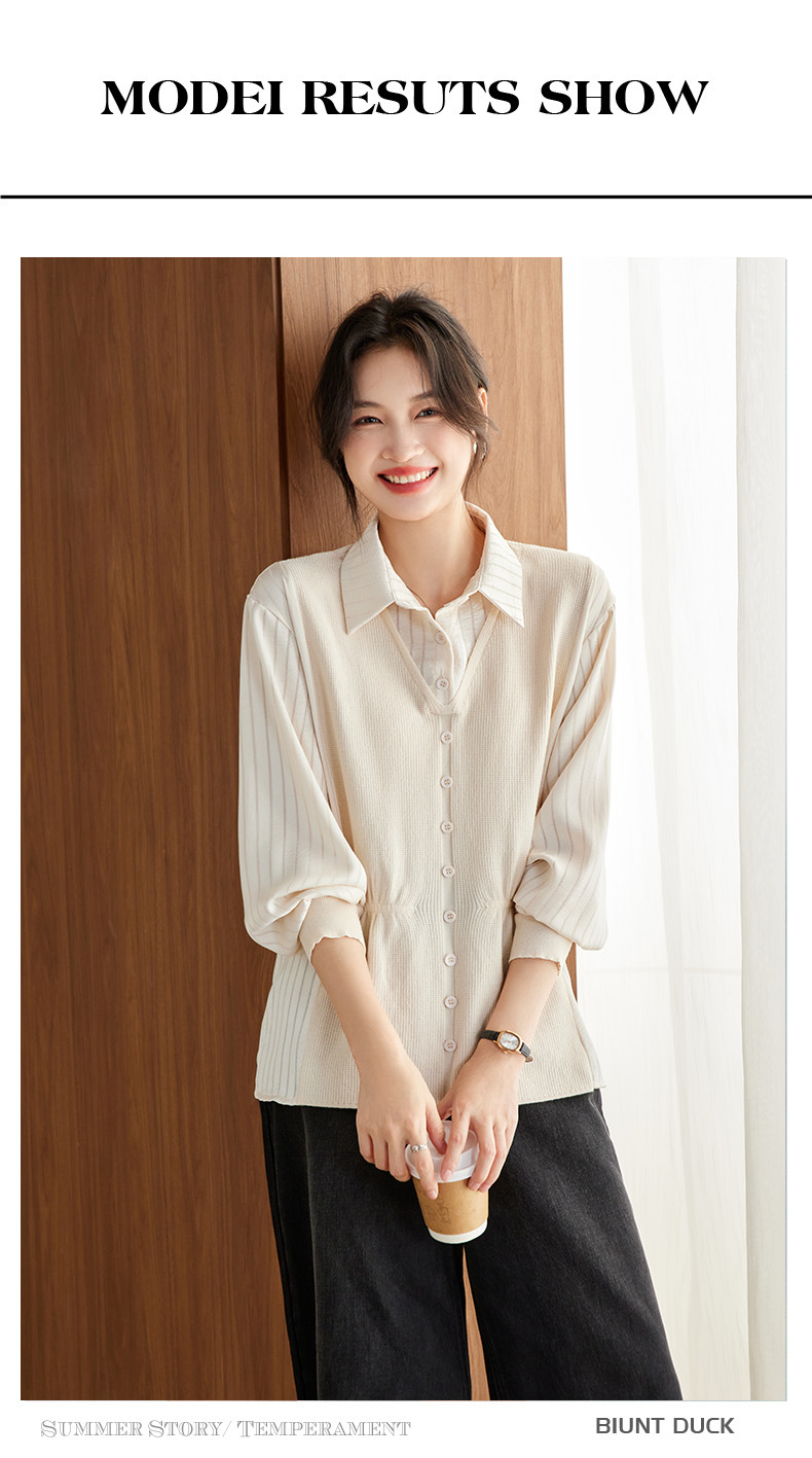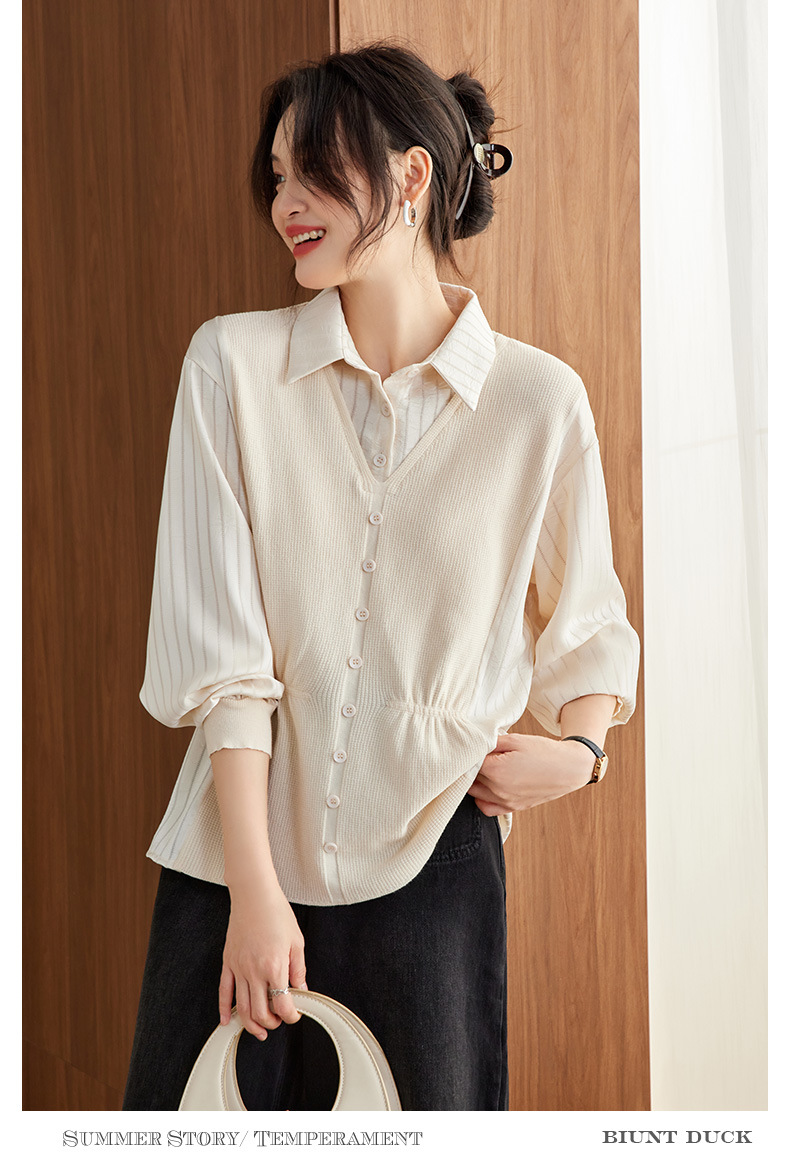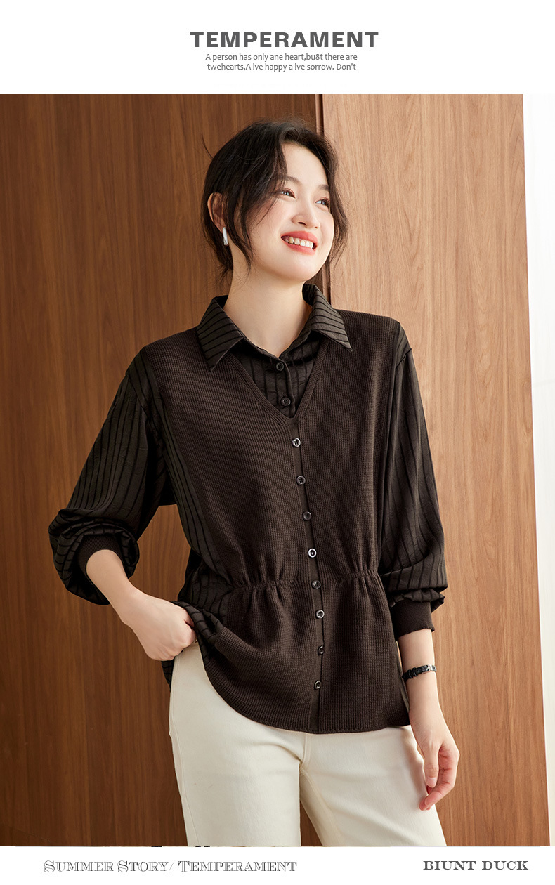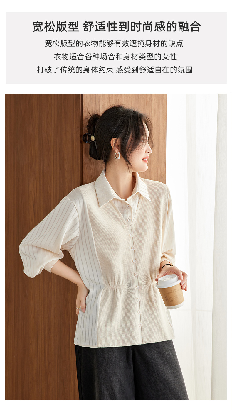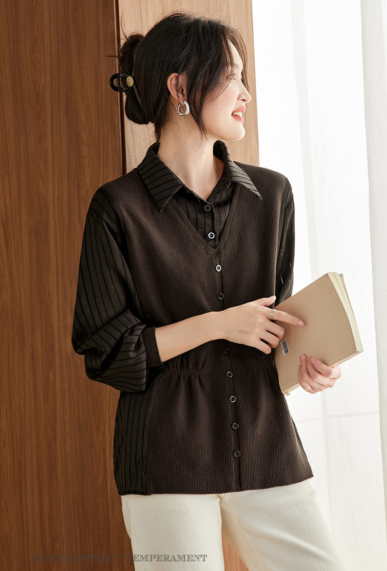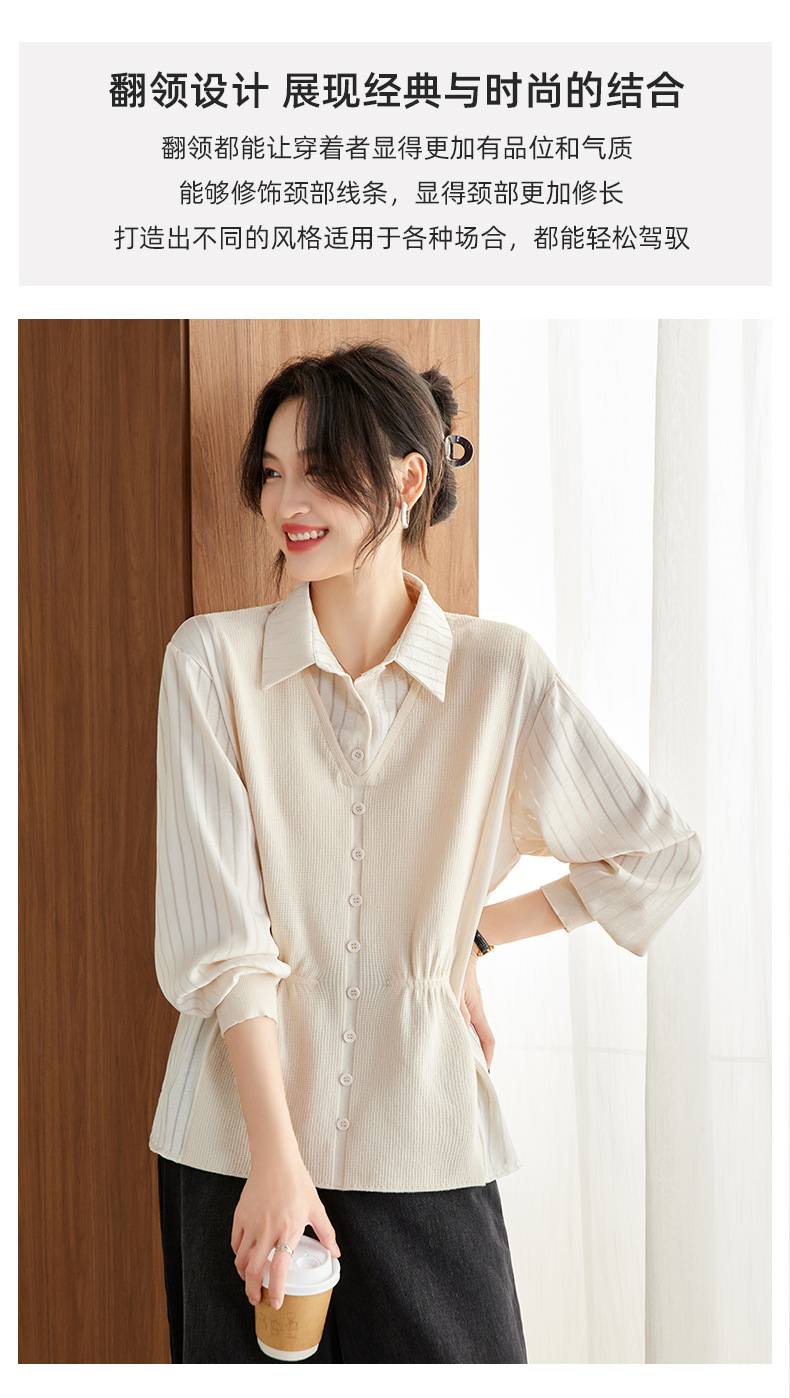QF 99-2741时髦软糯假两件针织衫衬衫简约宽松上衣