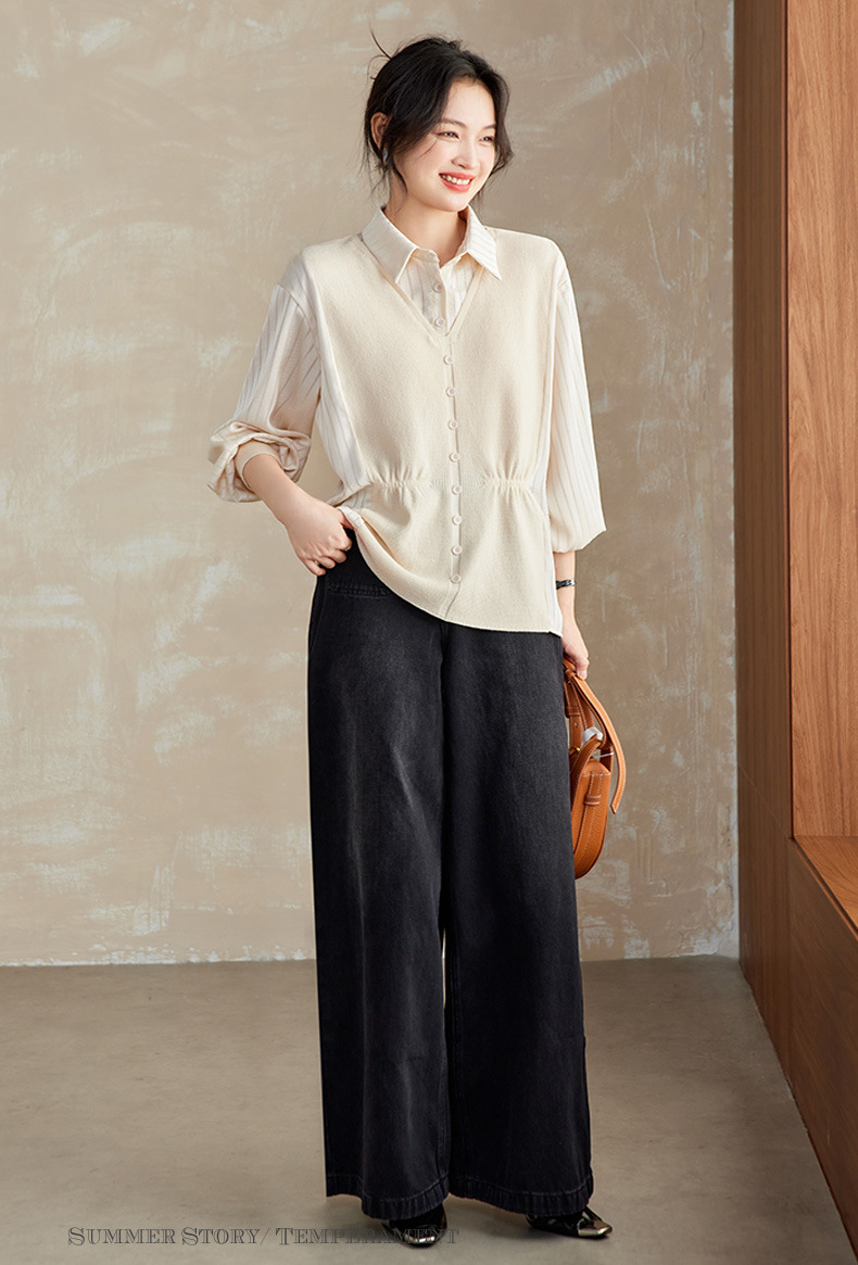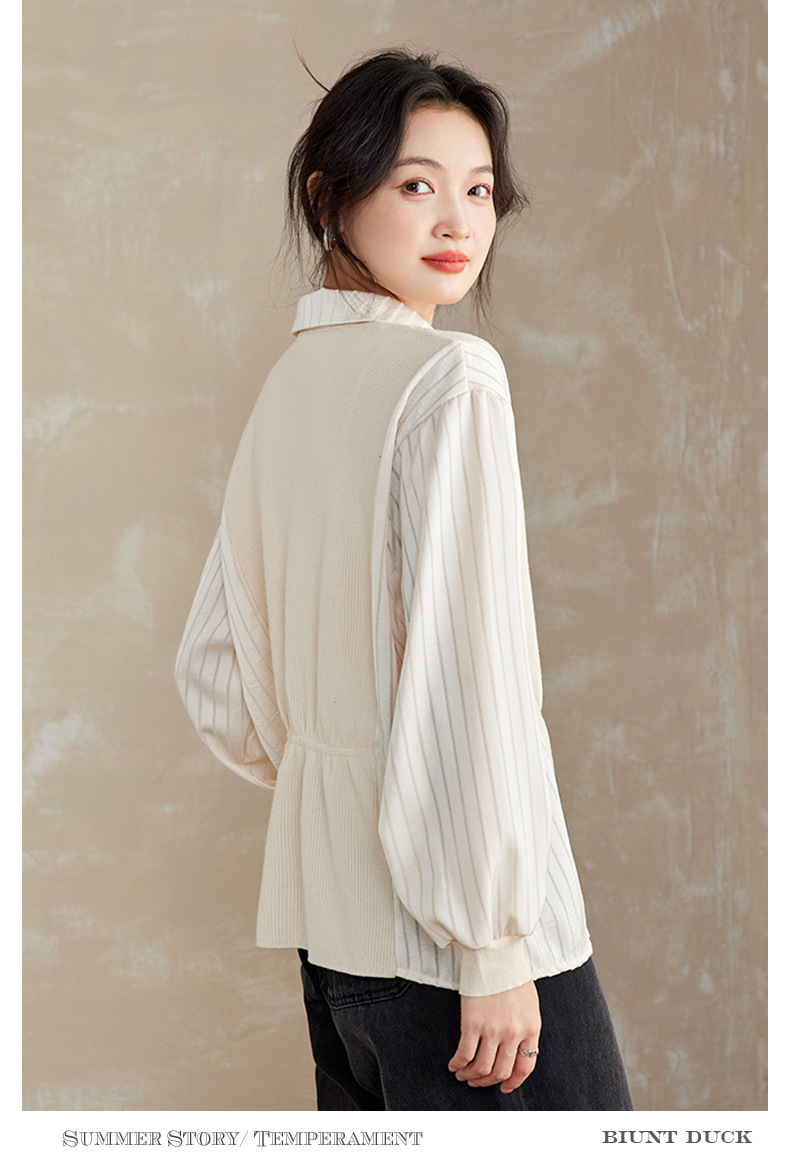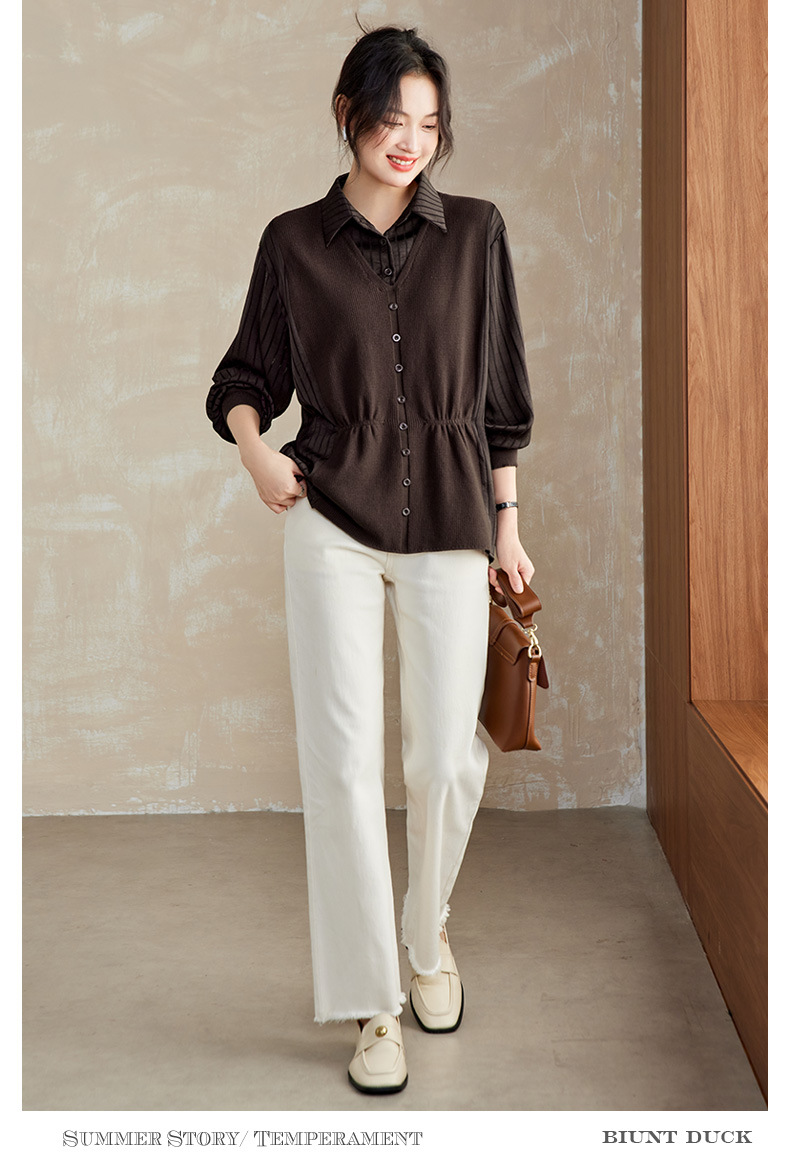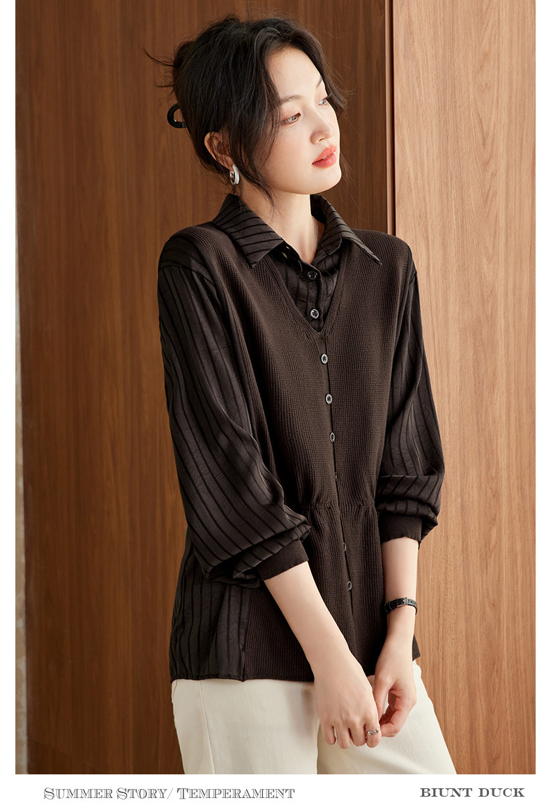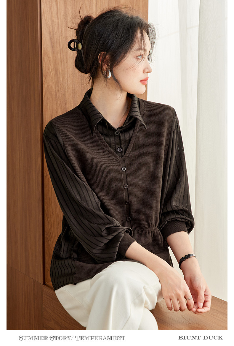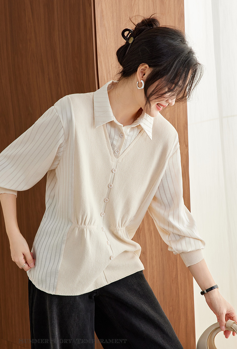 QF 99-2741时髦软糯假两件针织衫衬衫简约宽松上衣