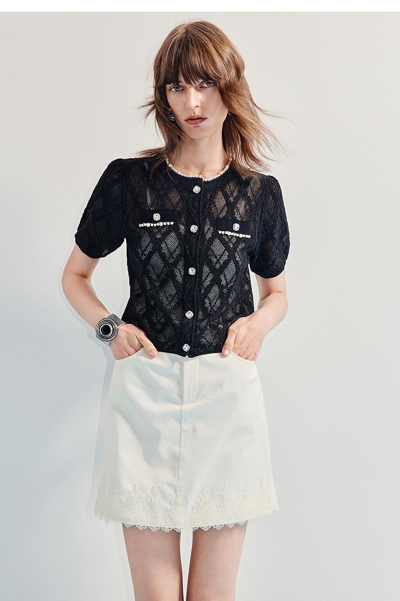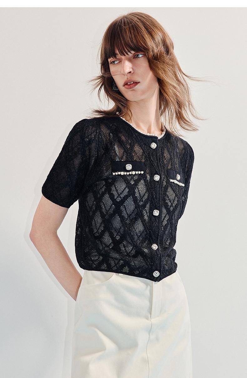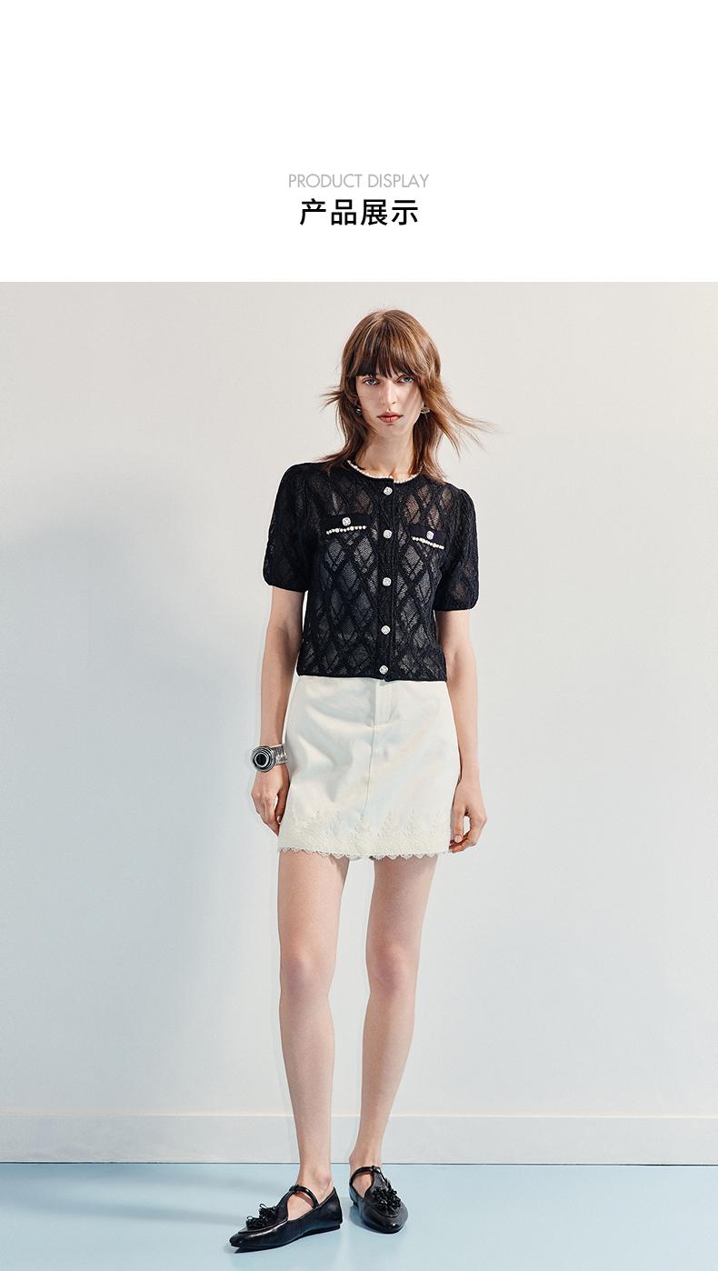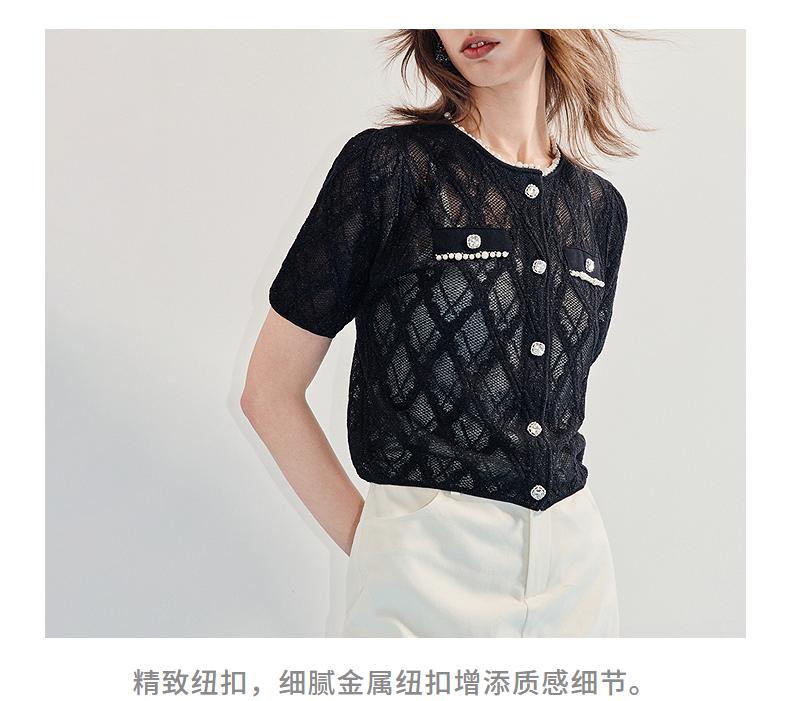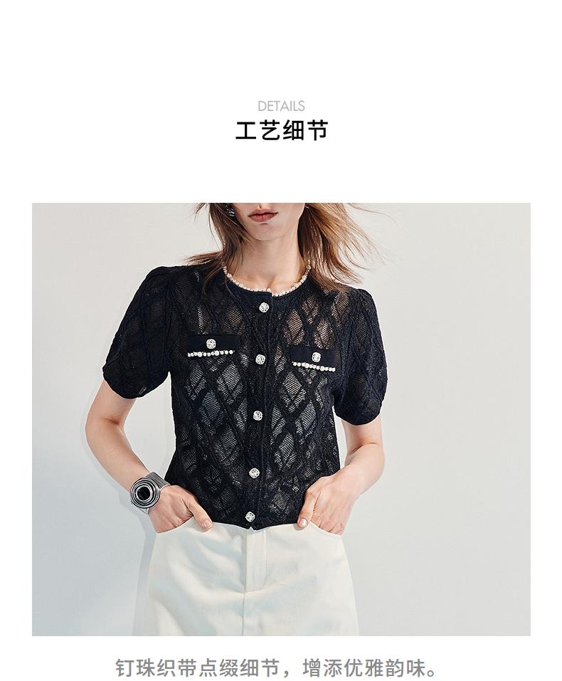 MAXRIENY法式摩登感钉珠套头毛衫短款25夏款复古气质感修身上衣女(货号:MF86SW253)