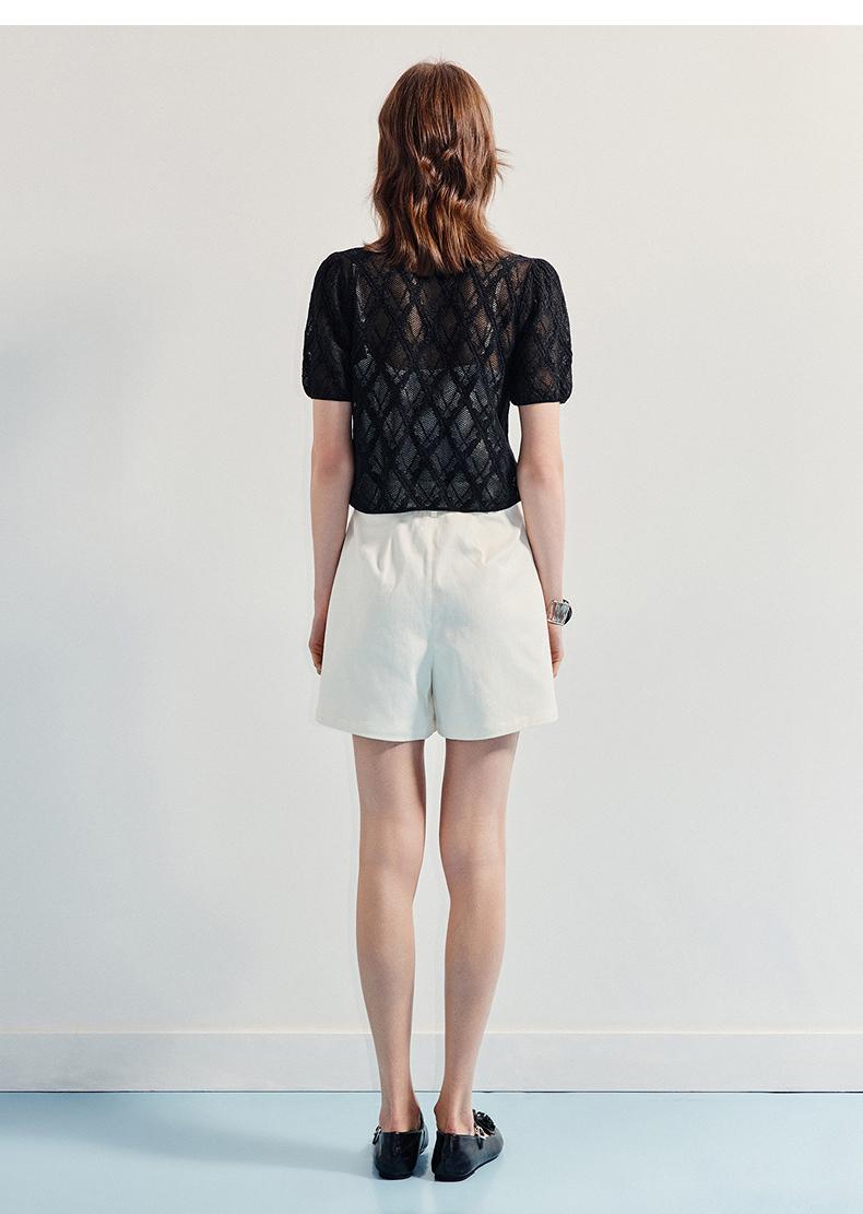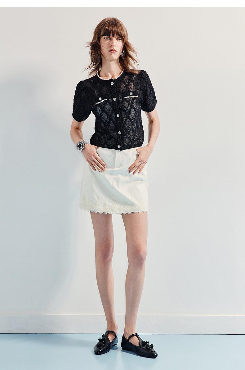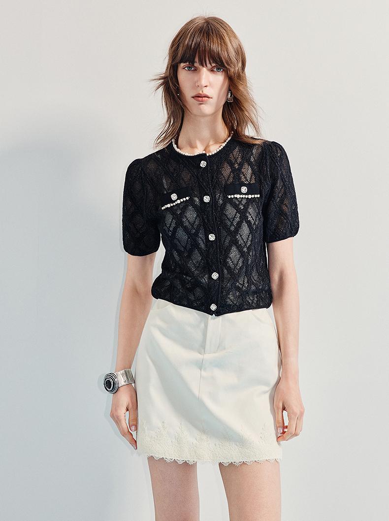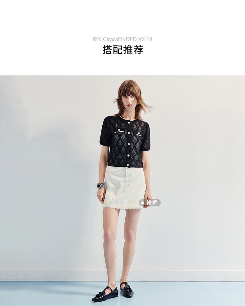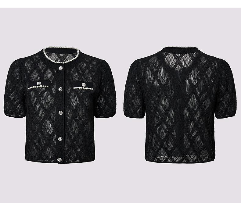 MAXRIENY法式摩登感钉珠套头毛衫短款25夏款复古气质感修身上衣女(货号:MF86SW253)