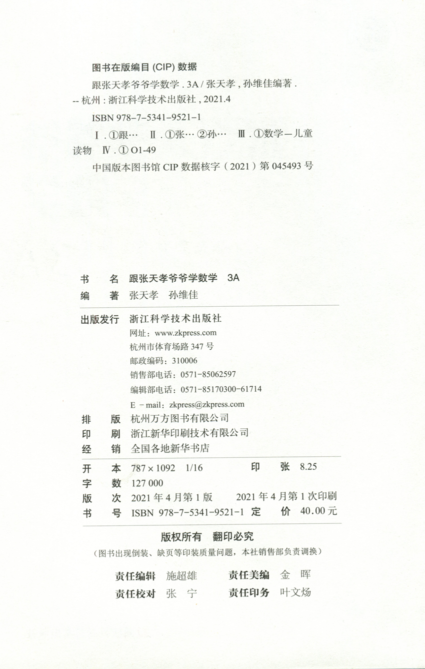 跟张天孝爷爷学数学3A(3年级上册)张天孝 孙维佳 编著