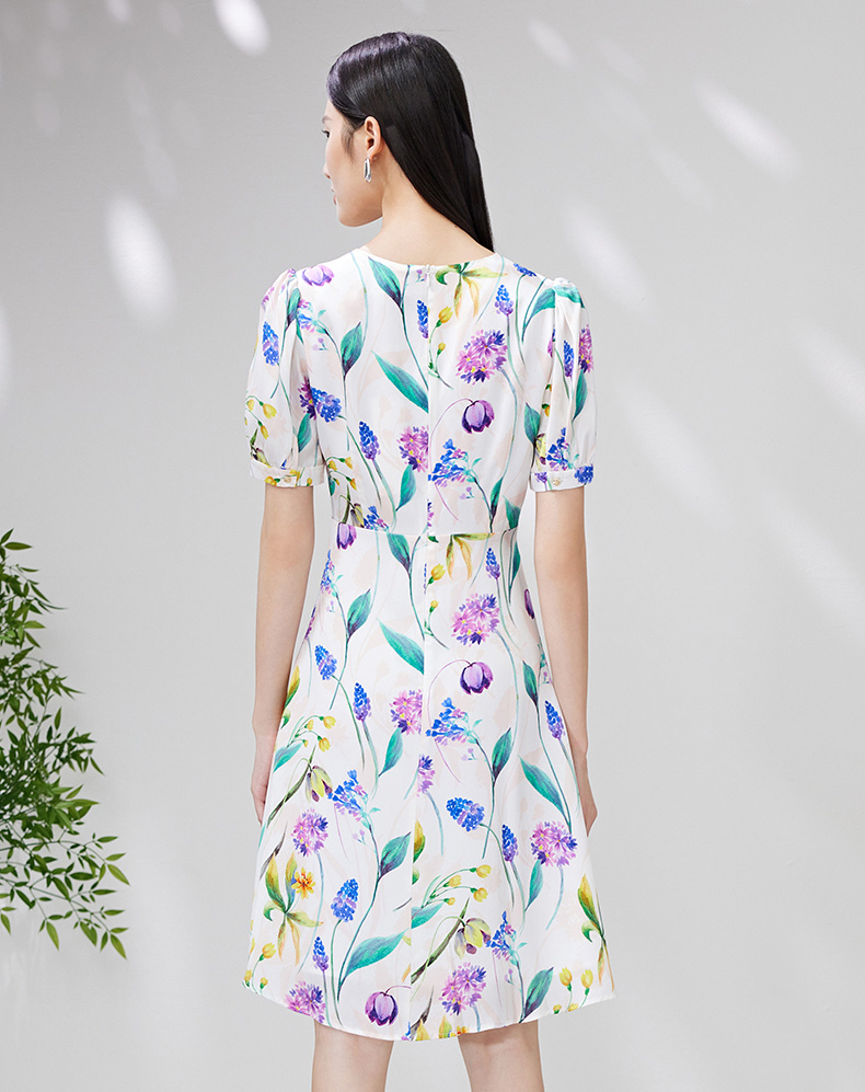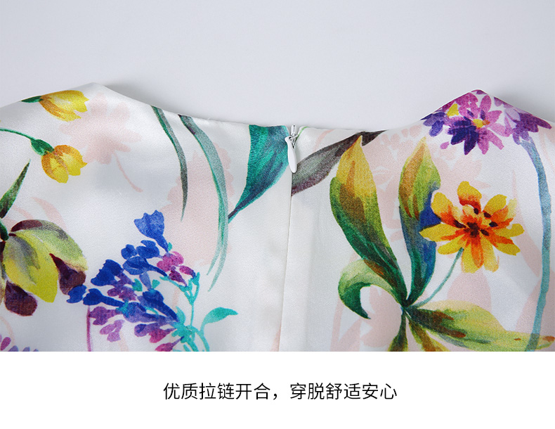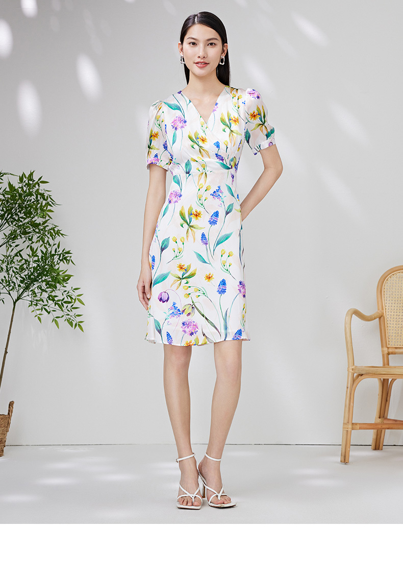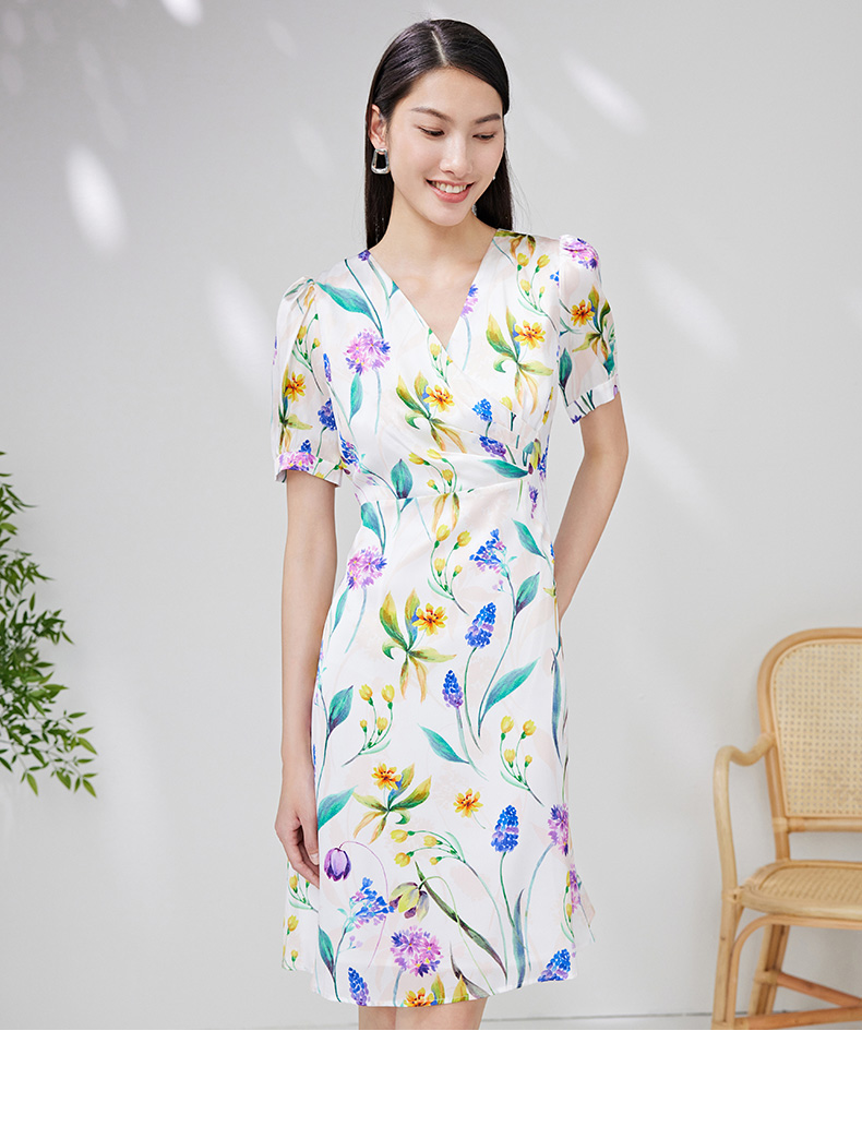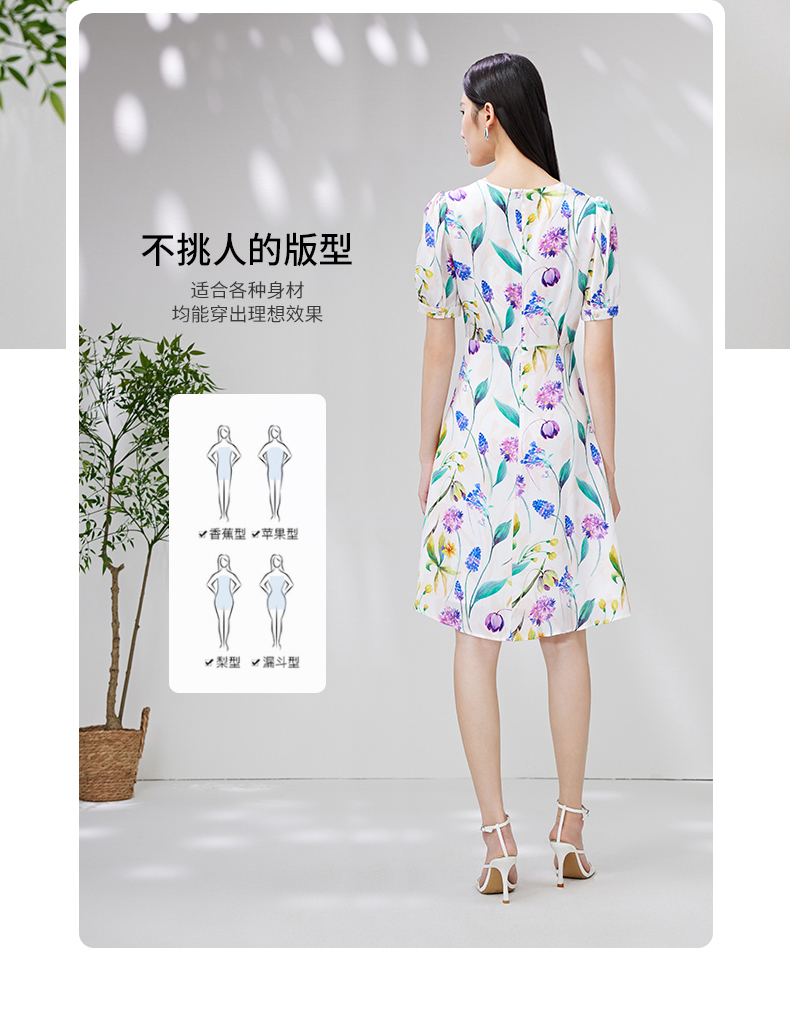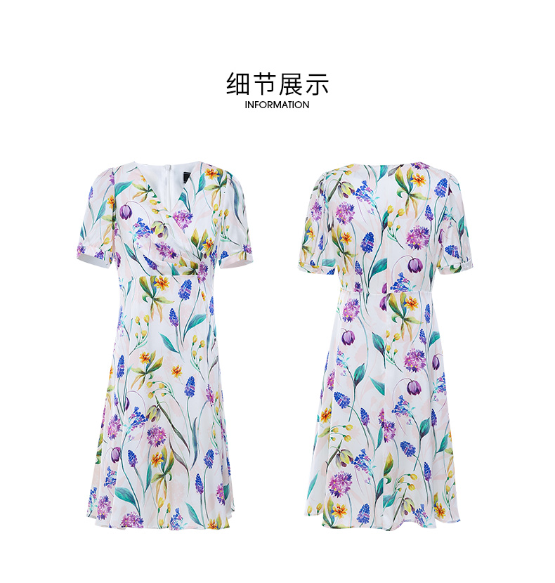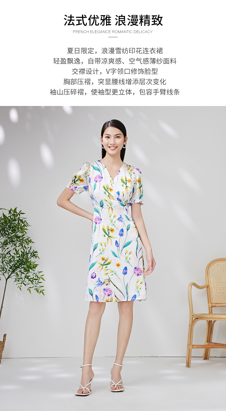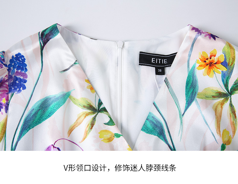 EITIE爱特爱夏季新款印花连衣裙时尚气质V领显瘦连衣裙7007756