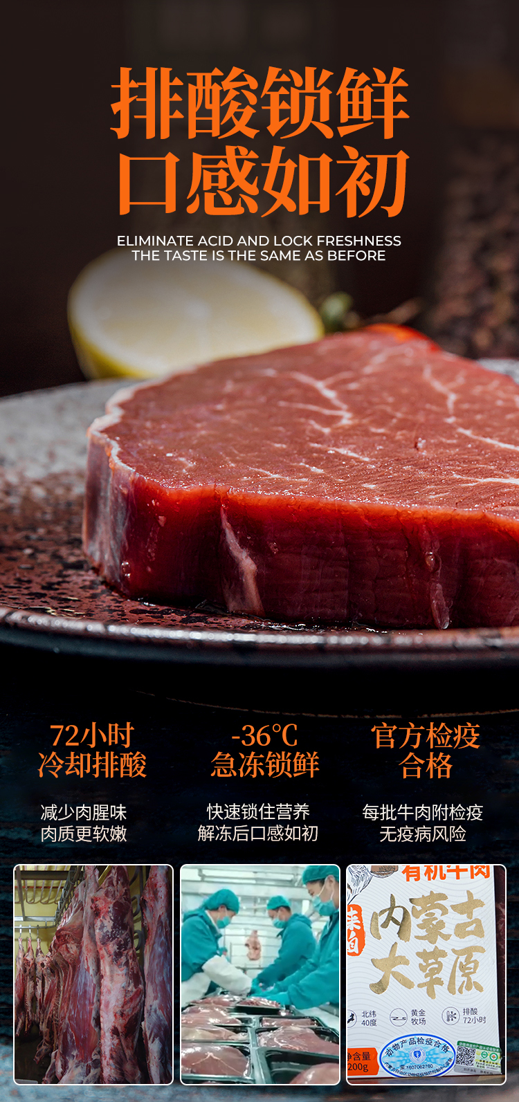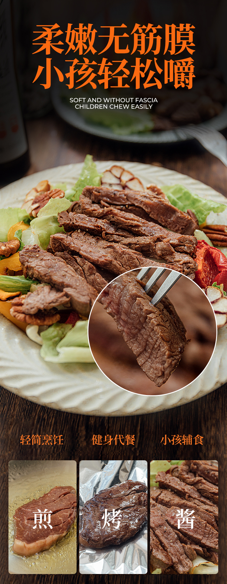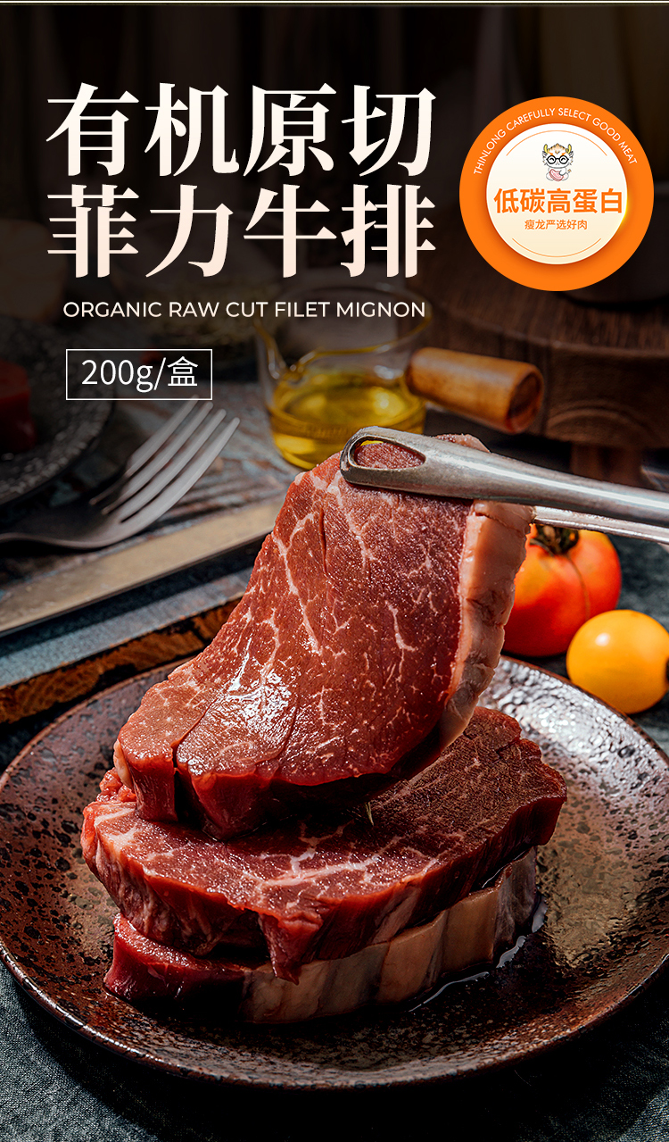 痩龙内蒙有机原切菲力牛排200g 原切牛排 低碳高蛋白 纯瘦无筋 清真低碳生酮