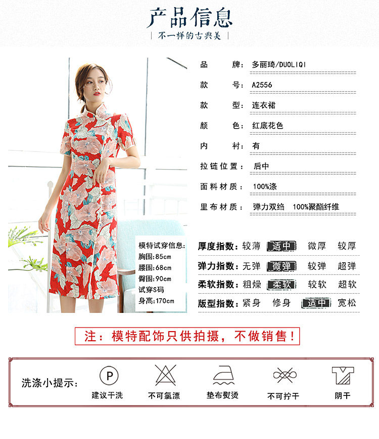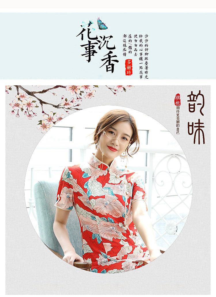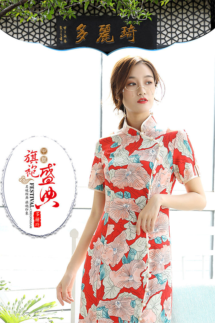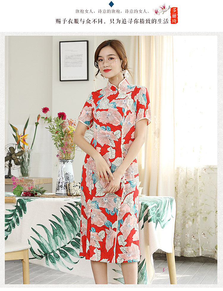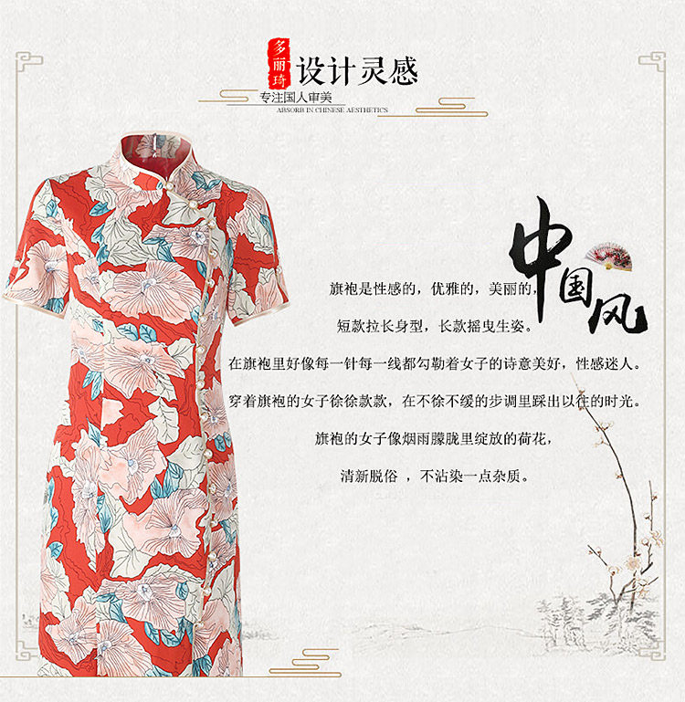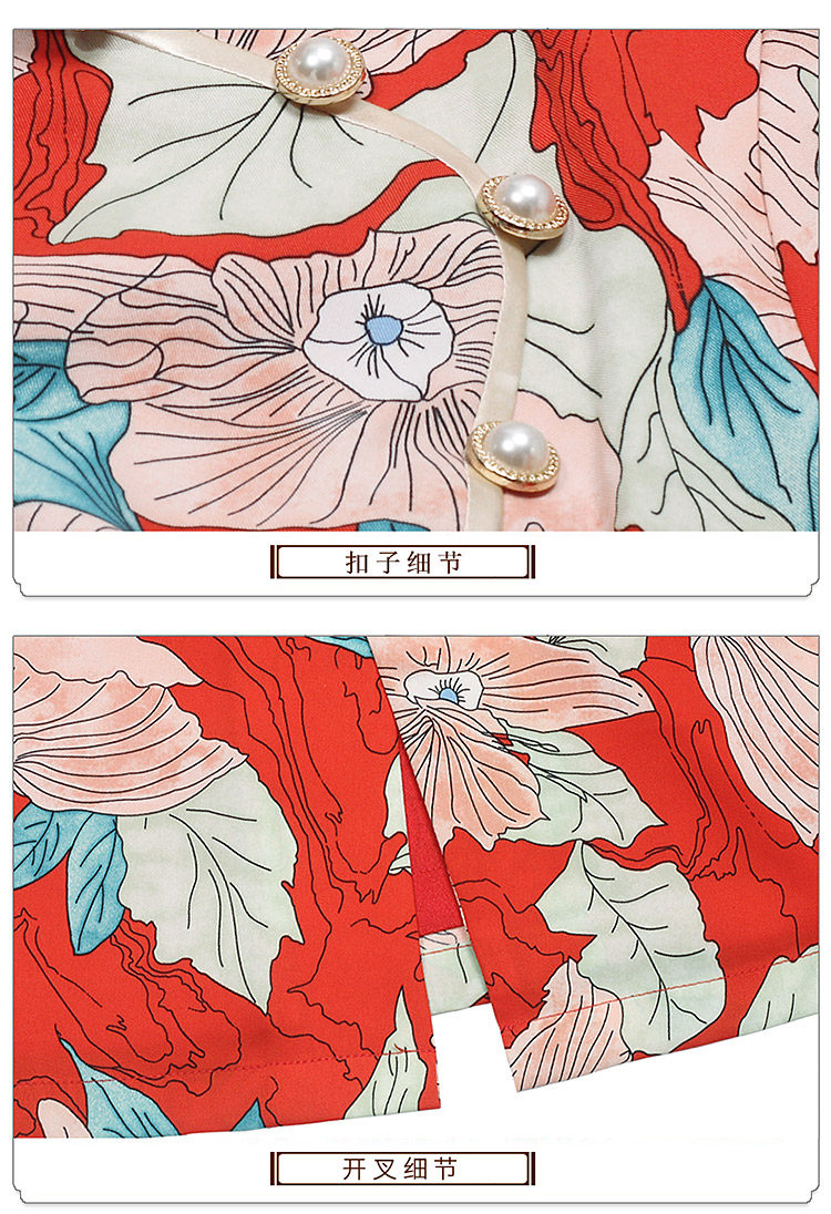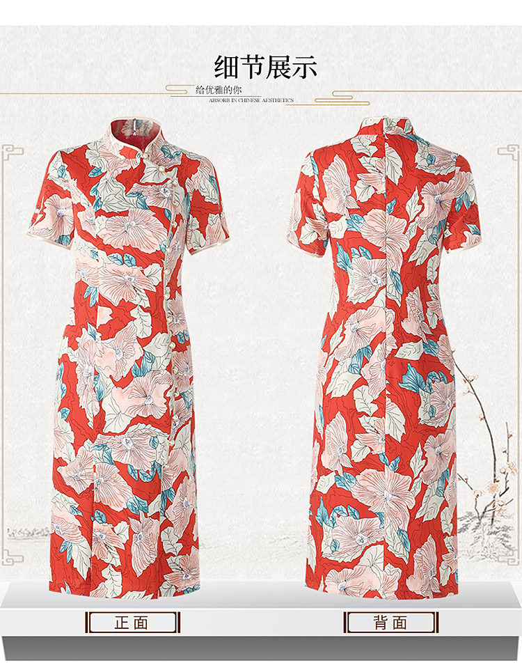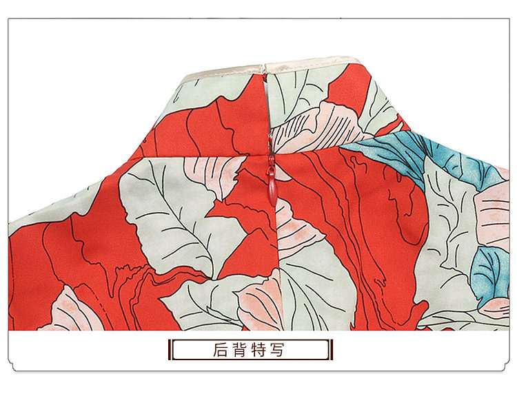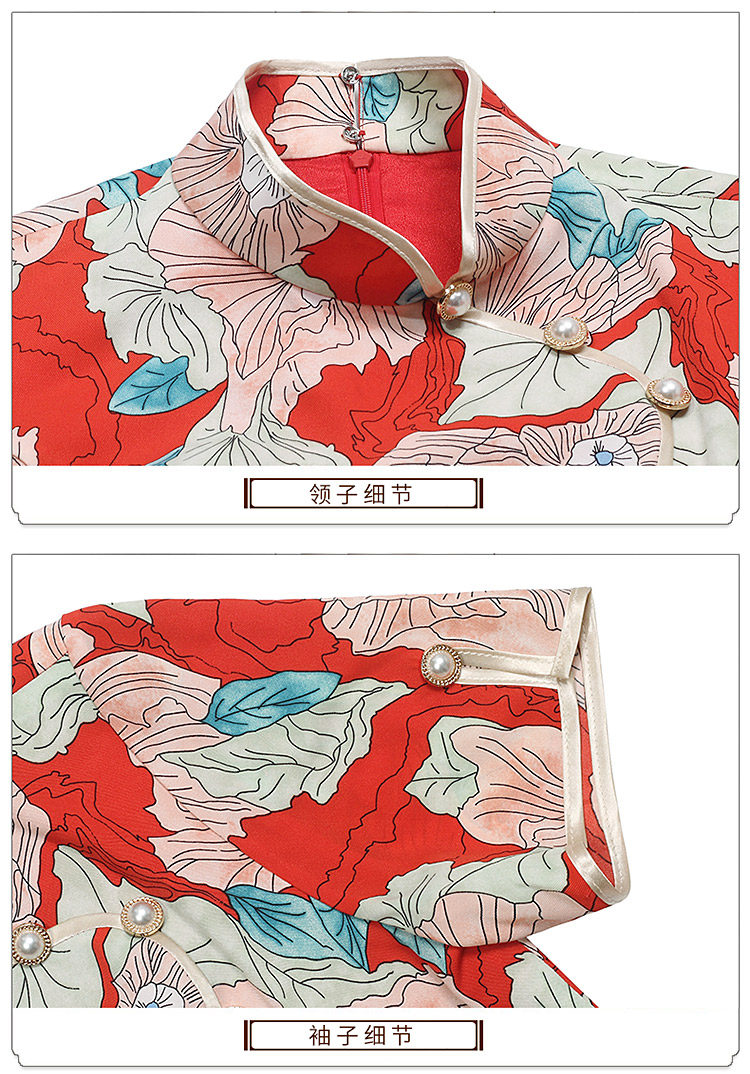 DLQ-A2556中国风复古立领斜门襟印花旗袍裙
