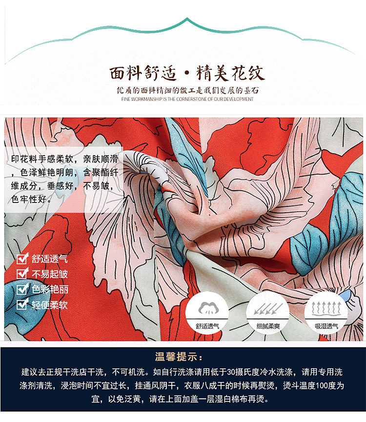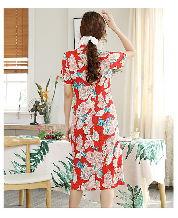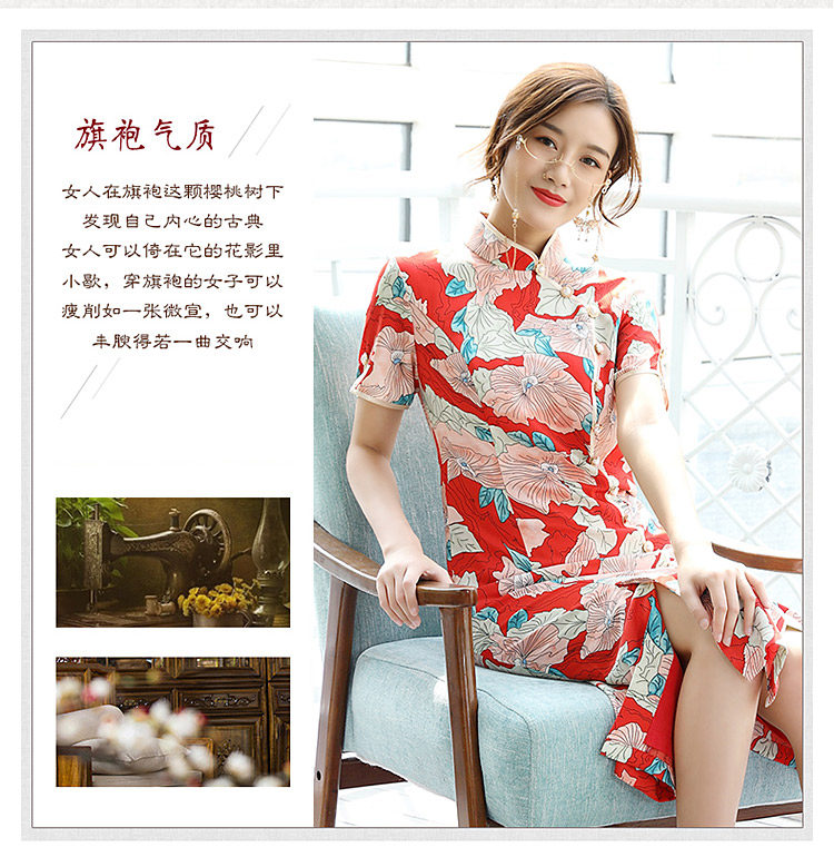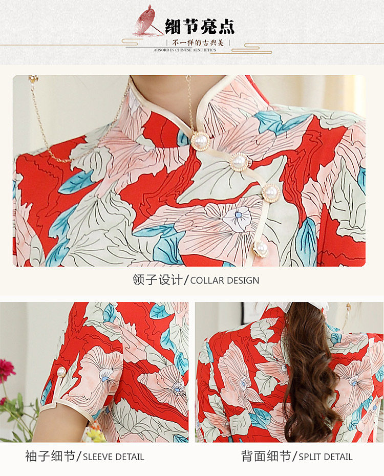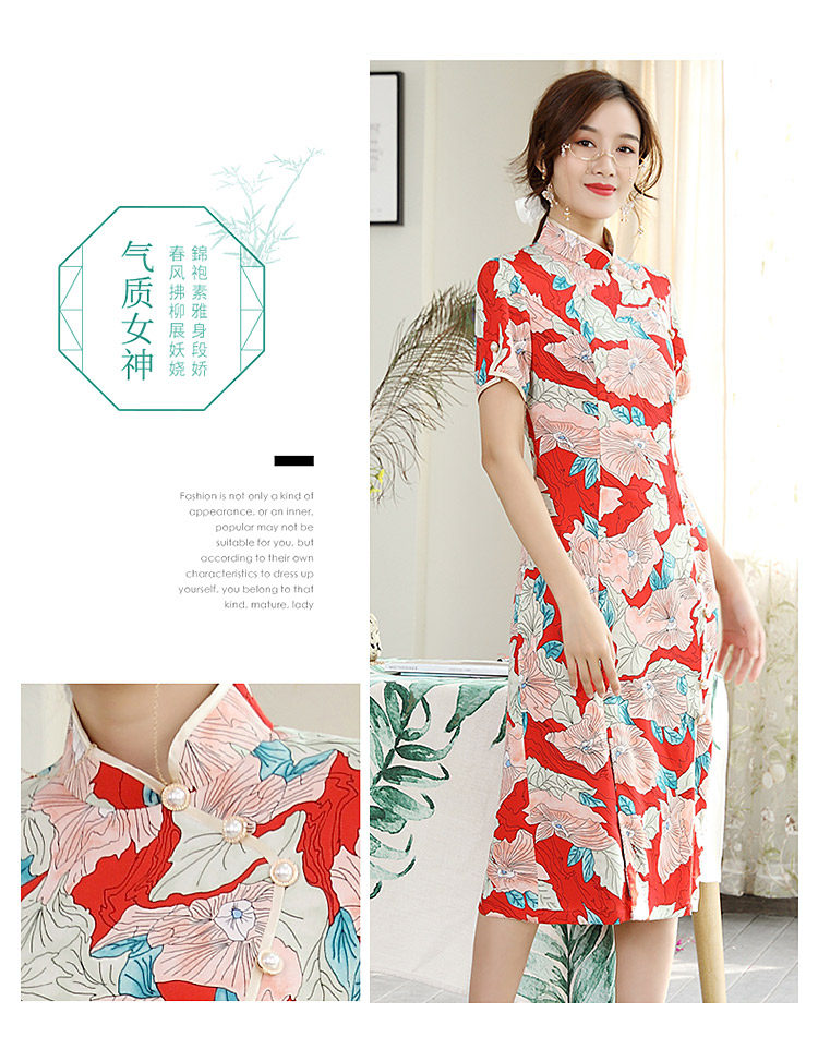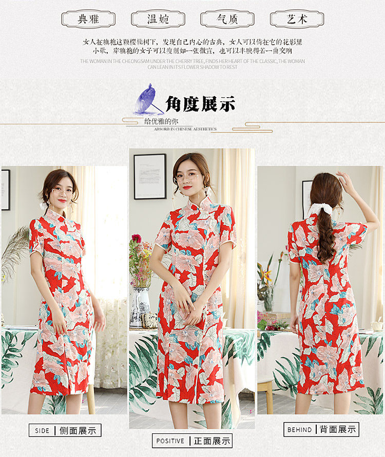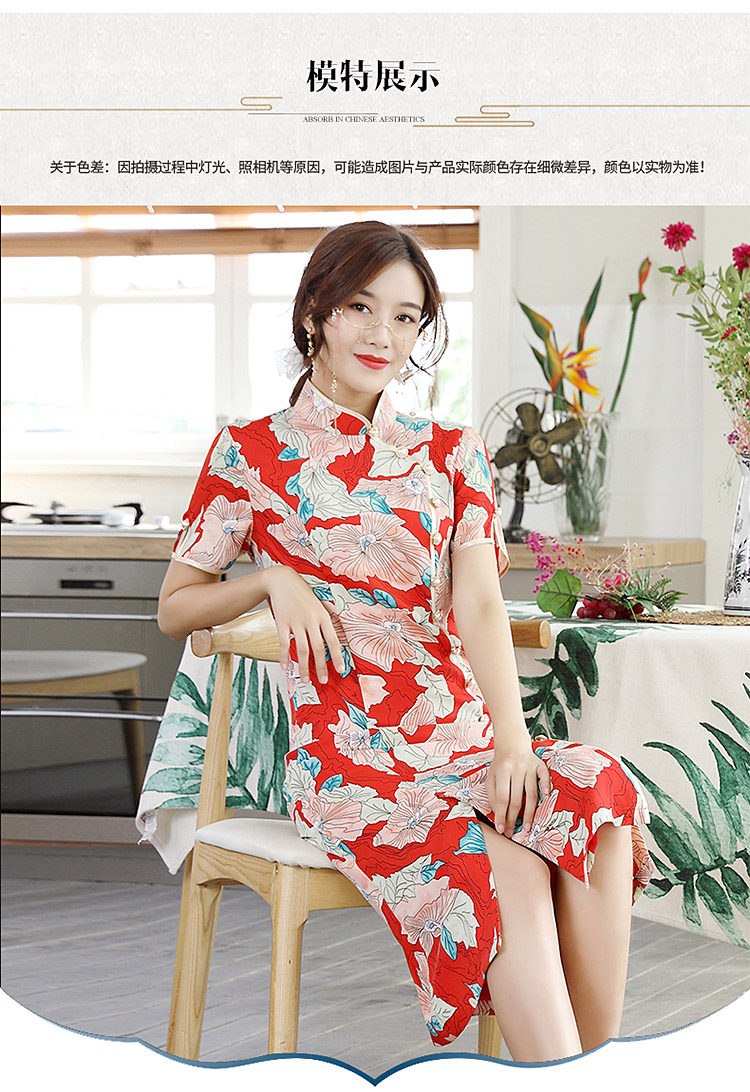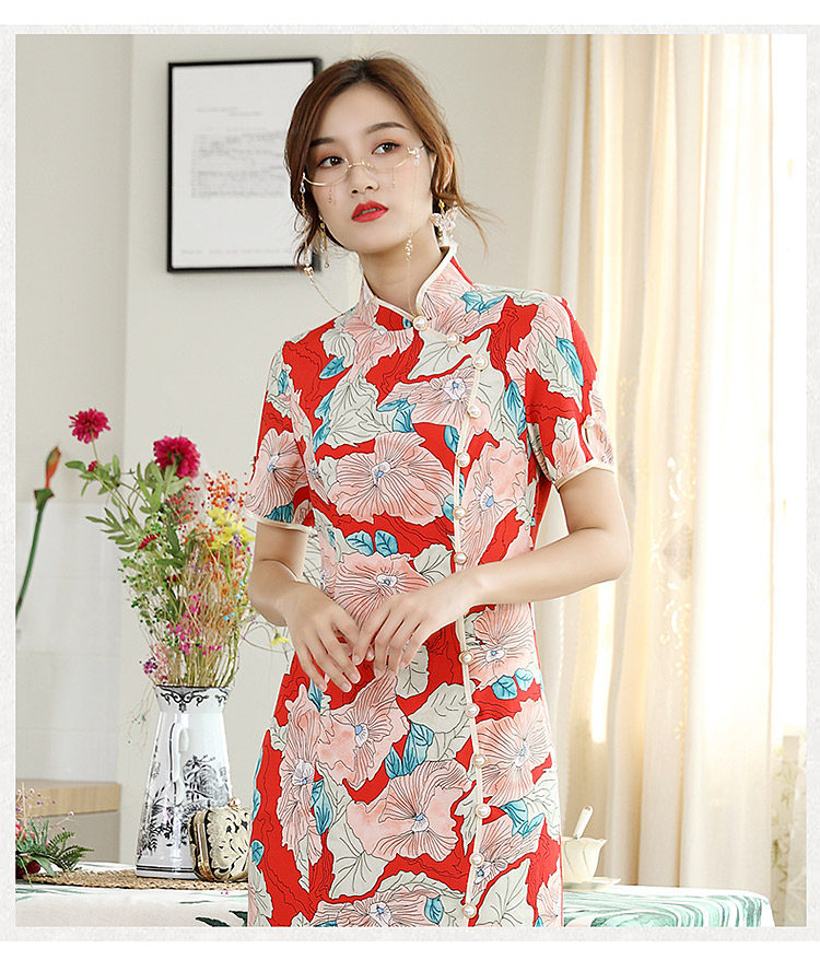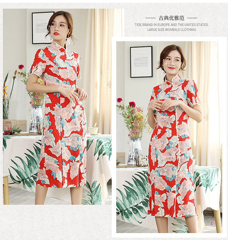 DLQ-A2556中国风复古立领斜门襟印花旗袍裙
