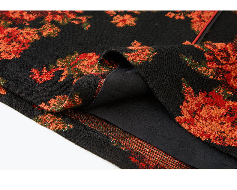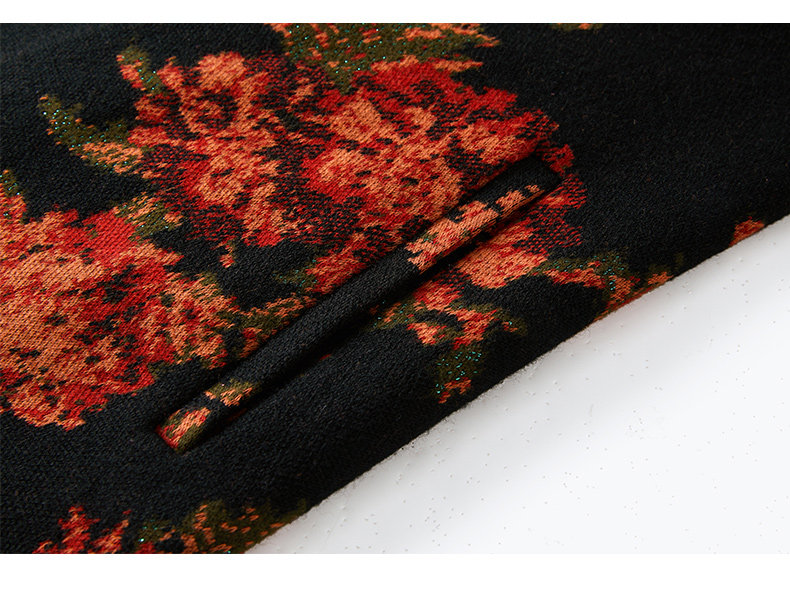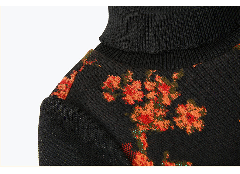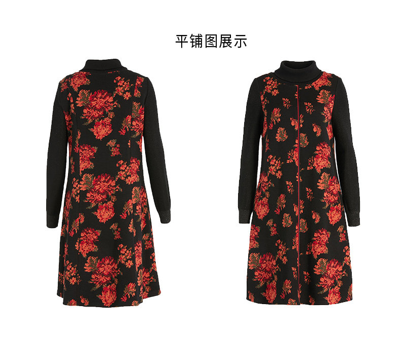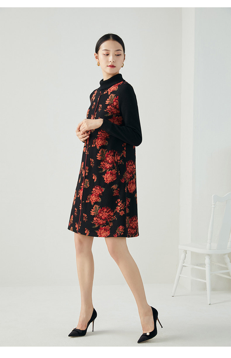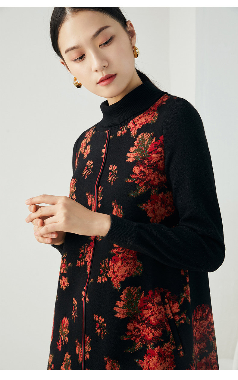 乔万尼秋冬新款中长款拼色设计感修身长袖羊毛针织舒适弹力连衣裙ES4E333