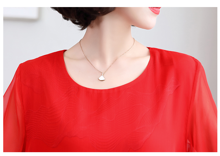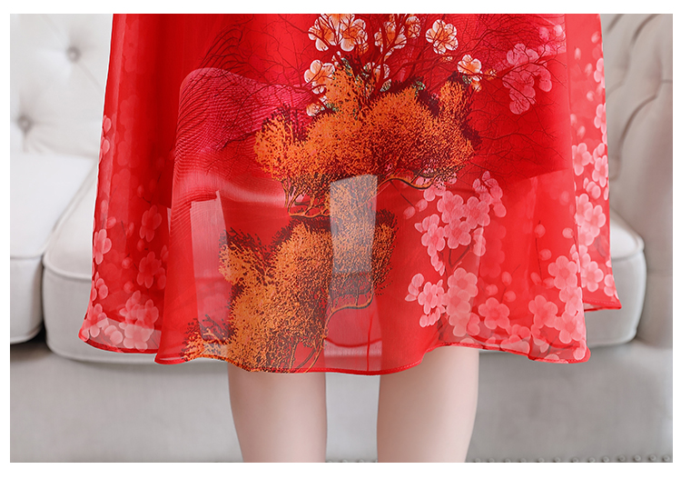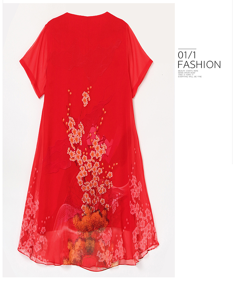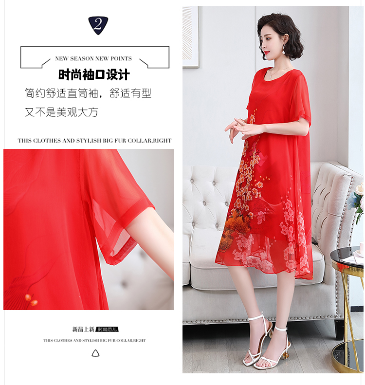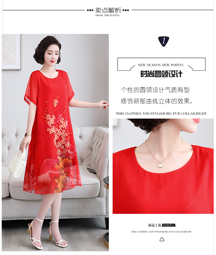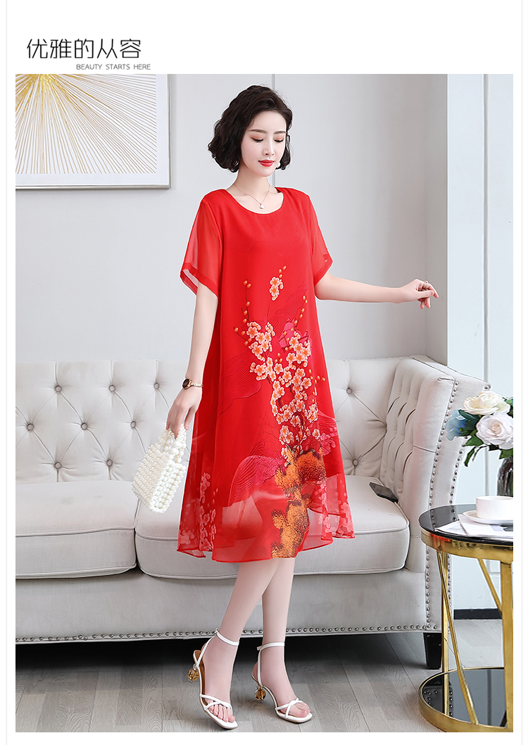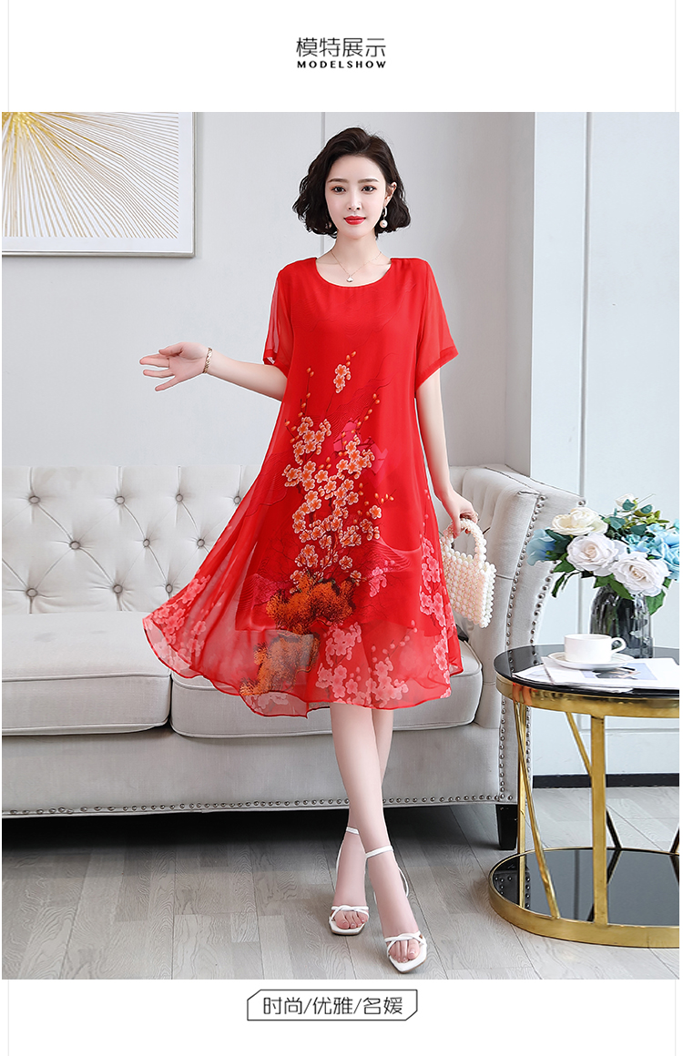 简约时尚优雅仿真丝中长款民族风印花大码女装连衣裙YYG82649-1