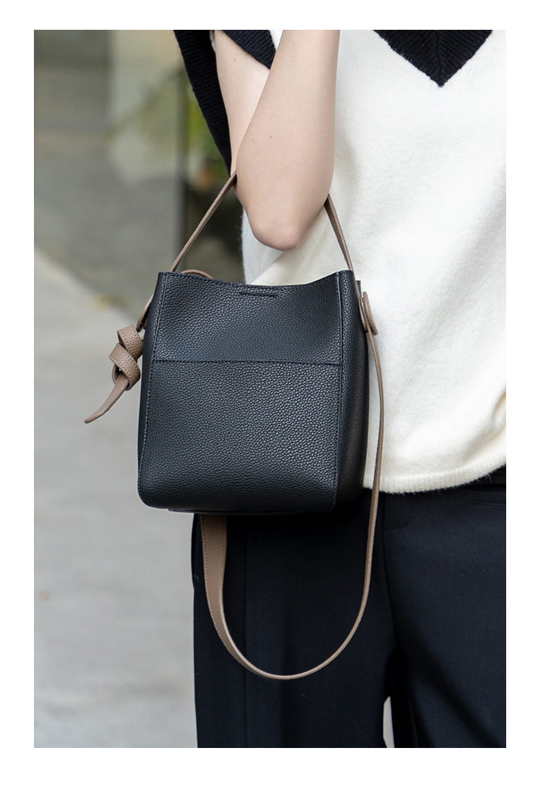 丁摩 真皮水桶包女新款单肩斜挎包百搭大容量女士手提包高级感5ZF-8135