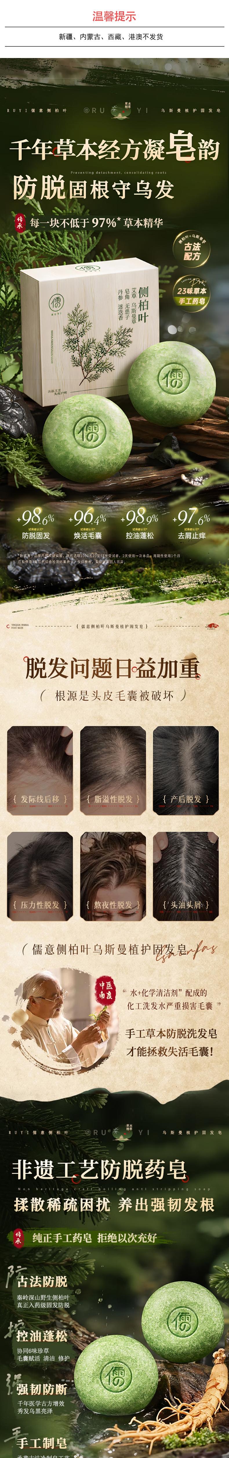 儒意 侧柏叶乌斯曼植护固发皂120g 6977772281033