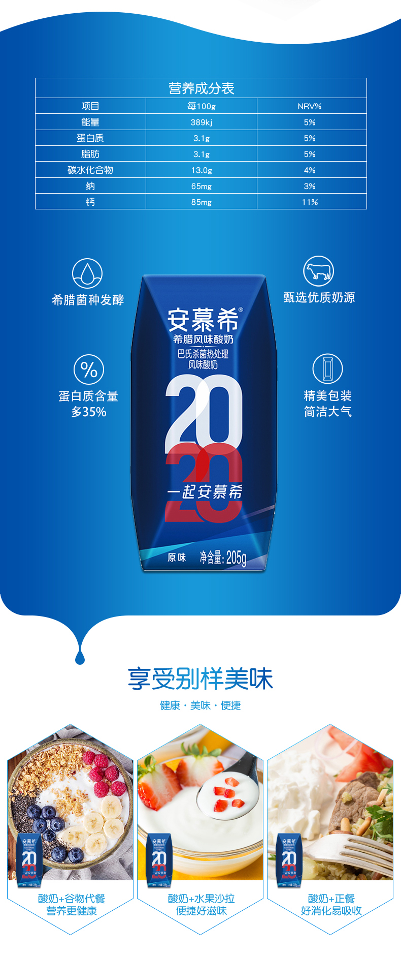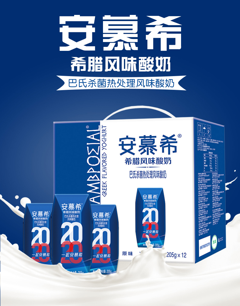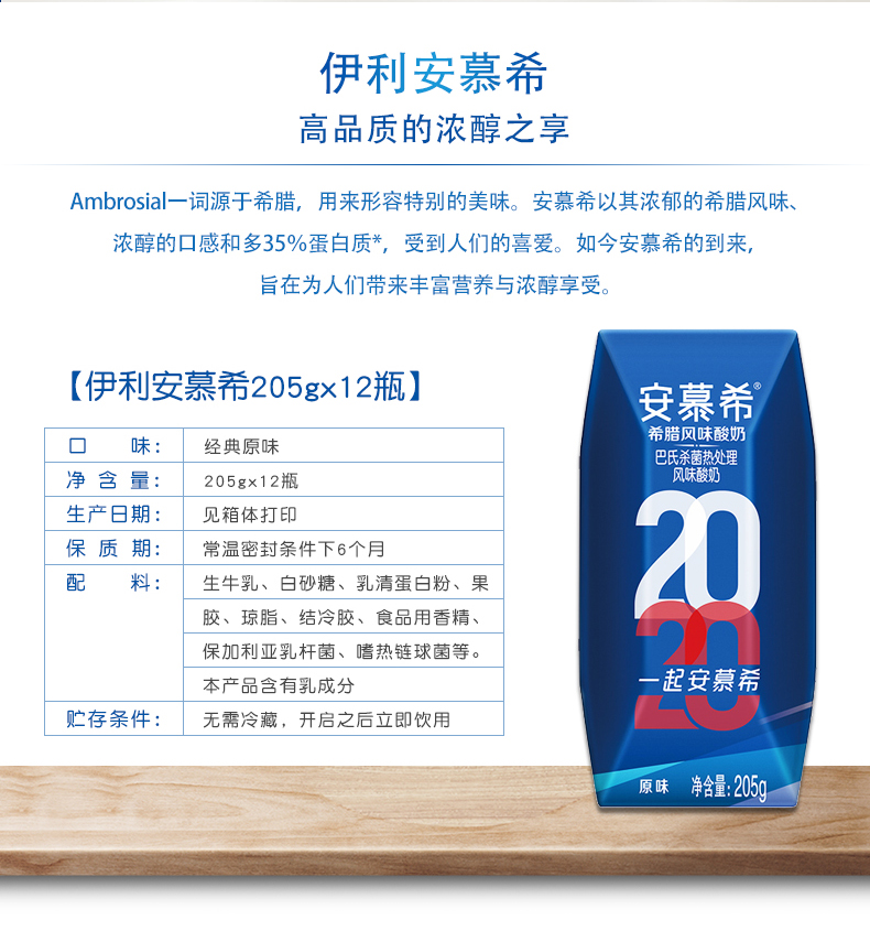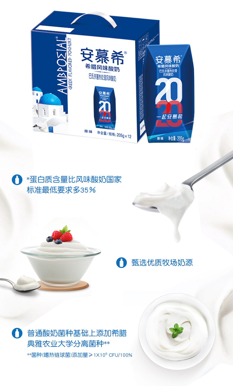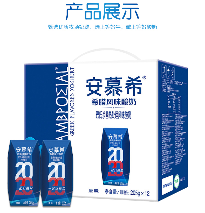 【伊利】安慕希原味酸牛奶 希腊风味酸奶 205g*12盒整箱常温代早餐酸奶