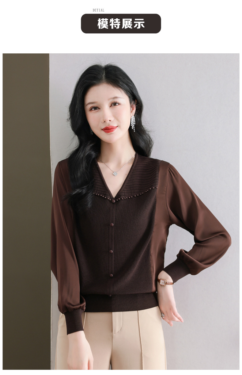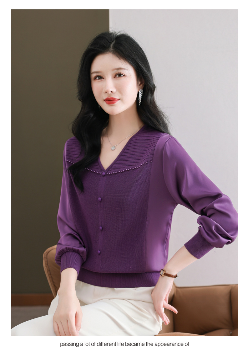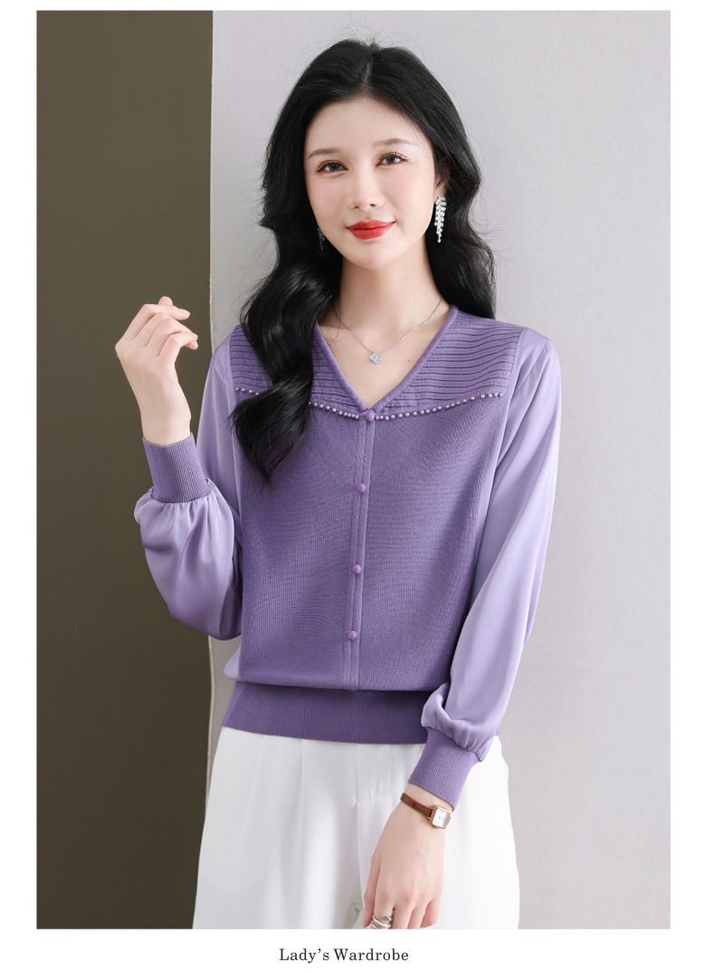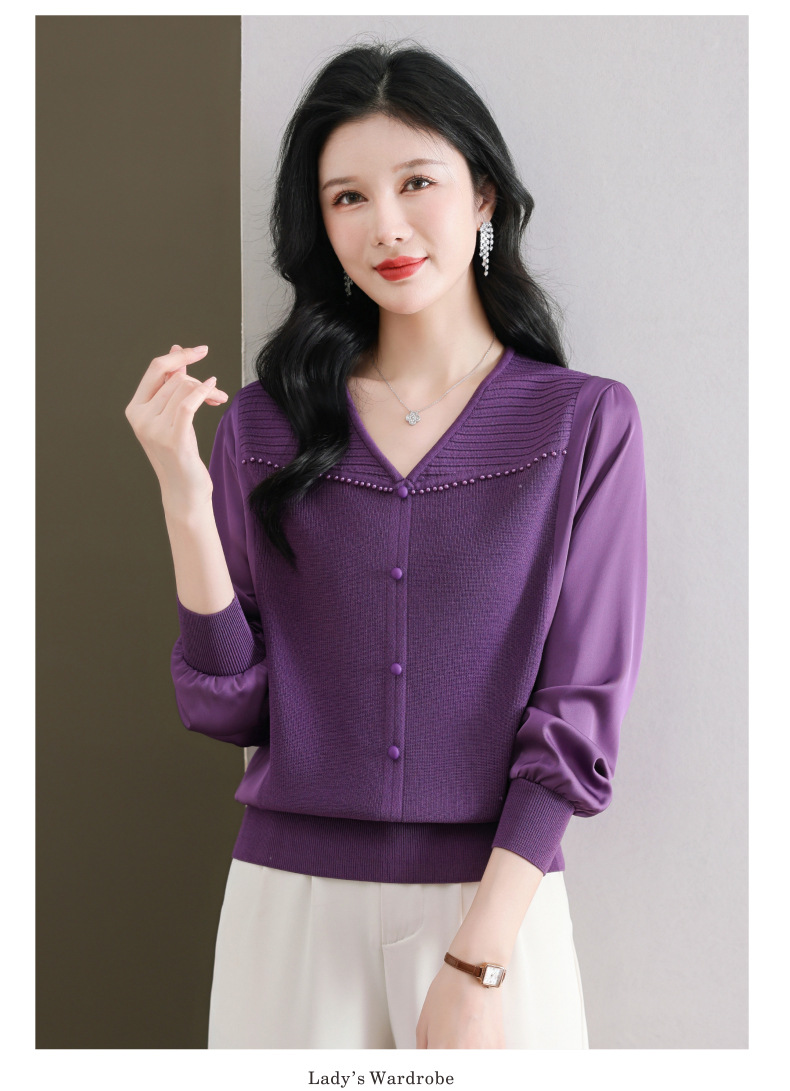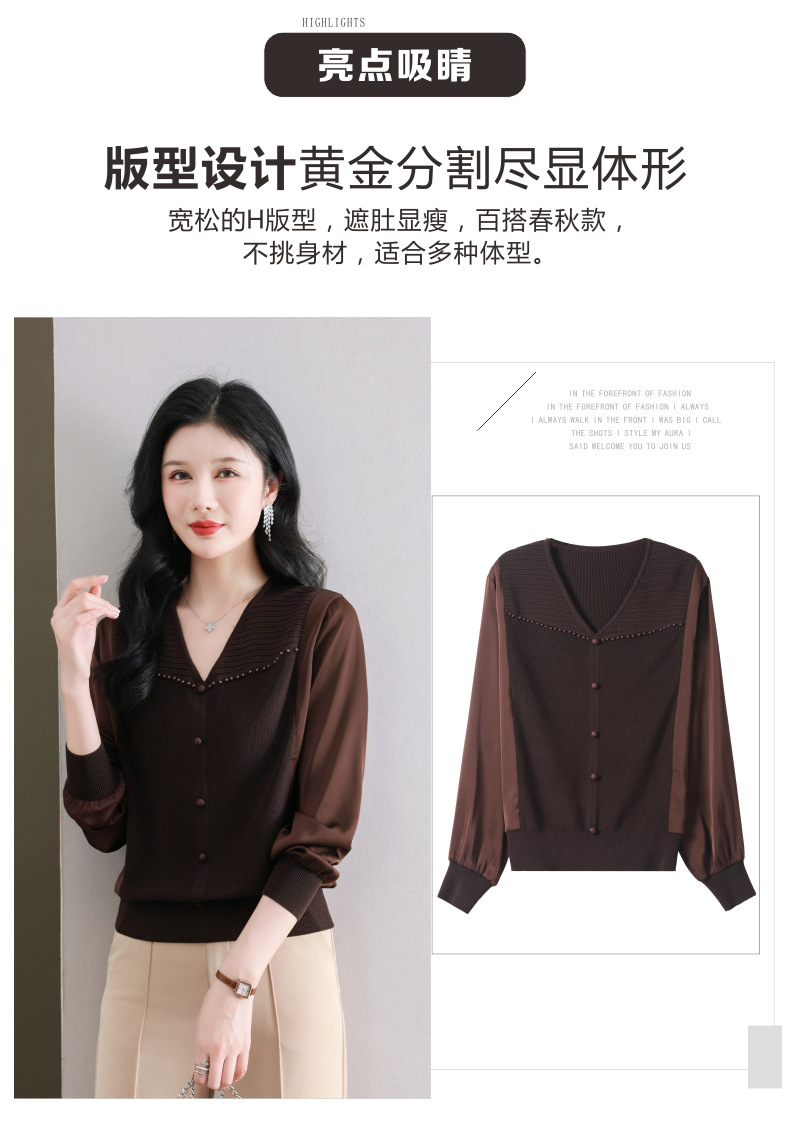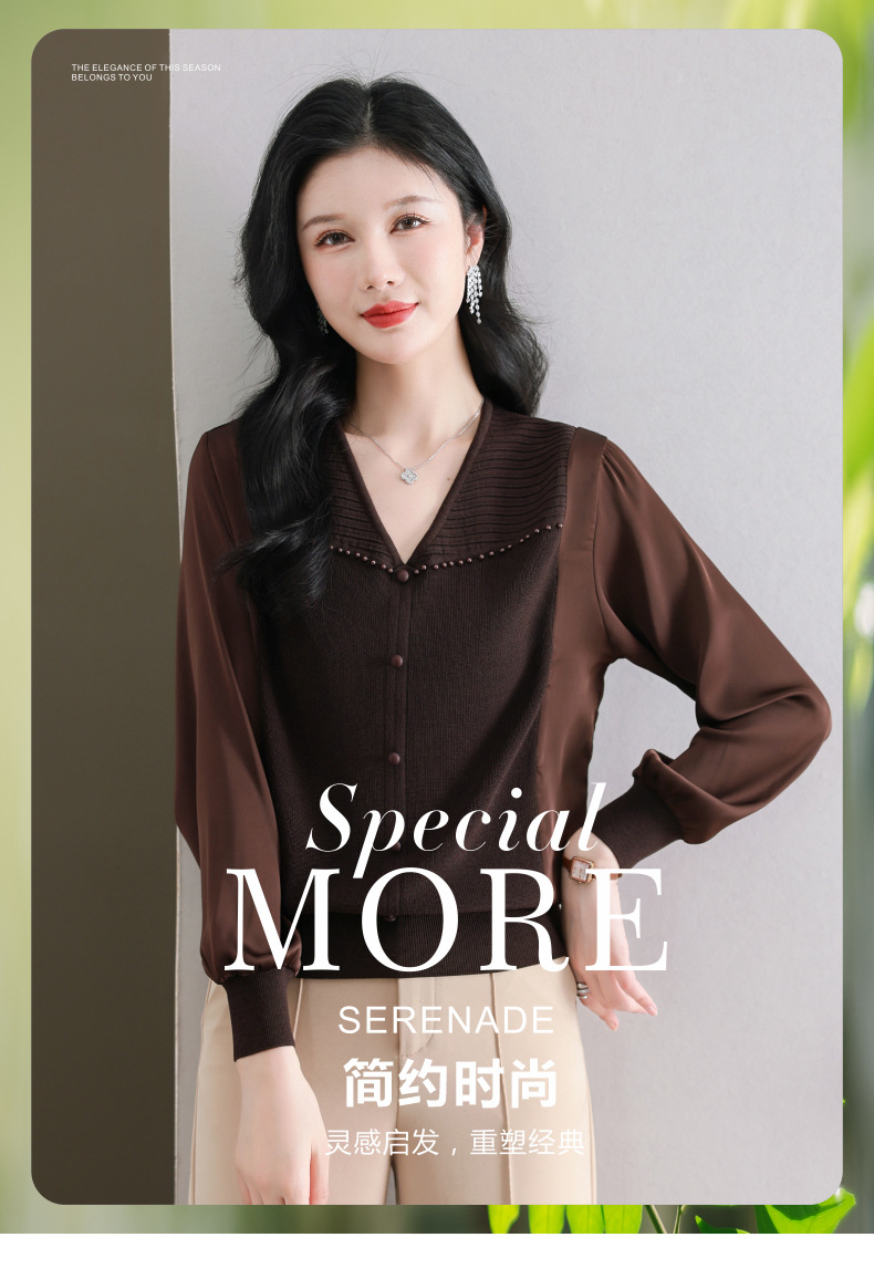 CC89-99810荷叶边V领妈妈减龄时尚针织衫