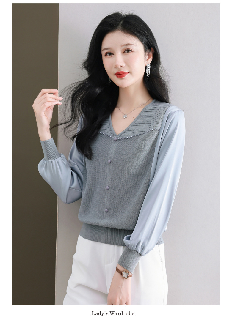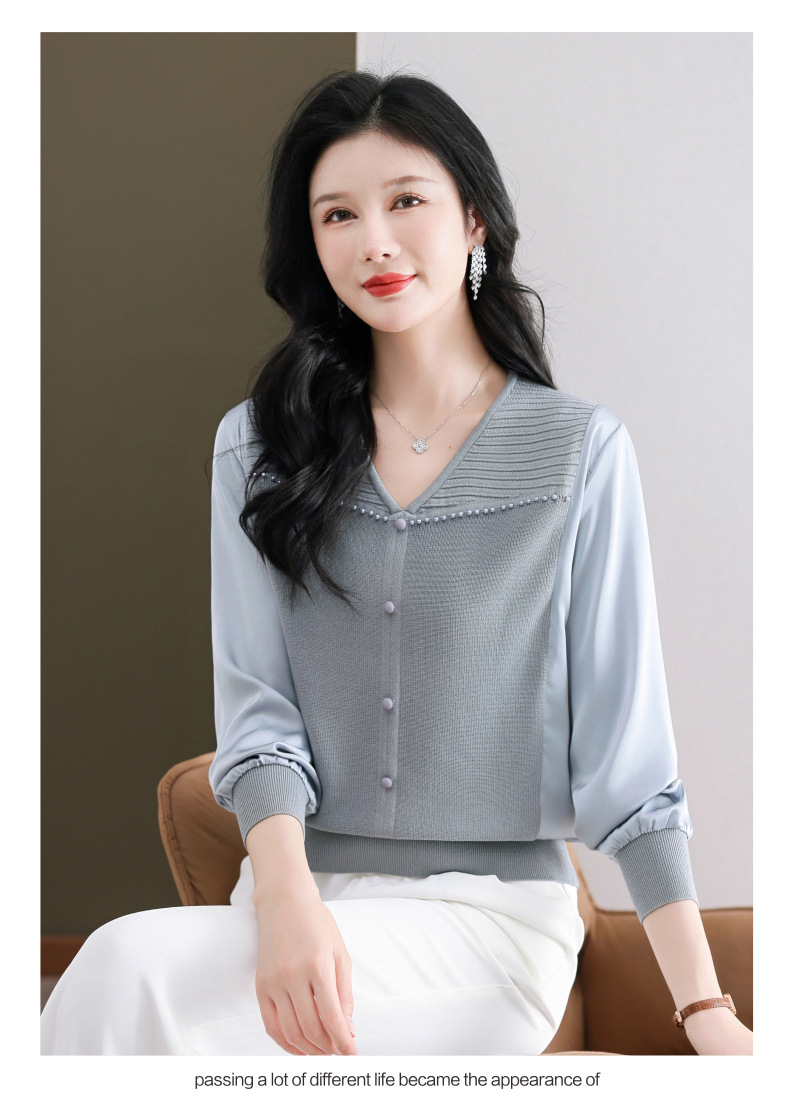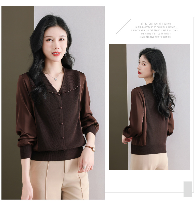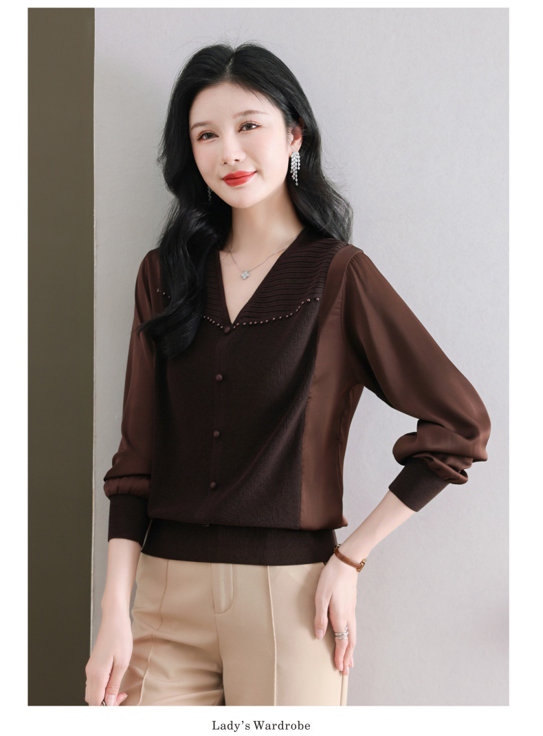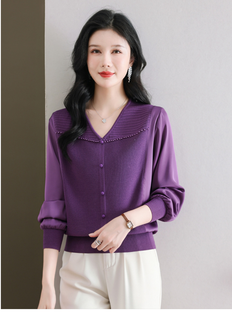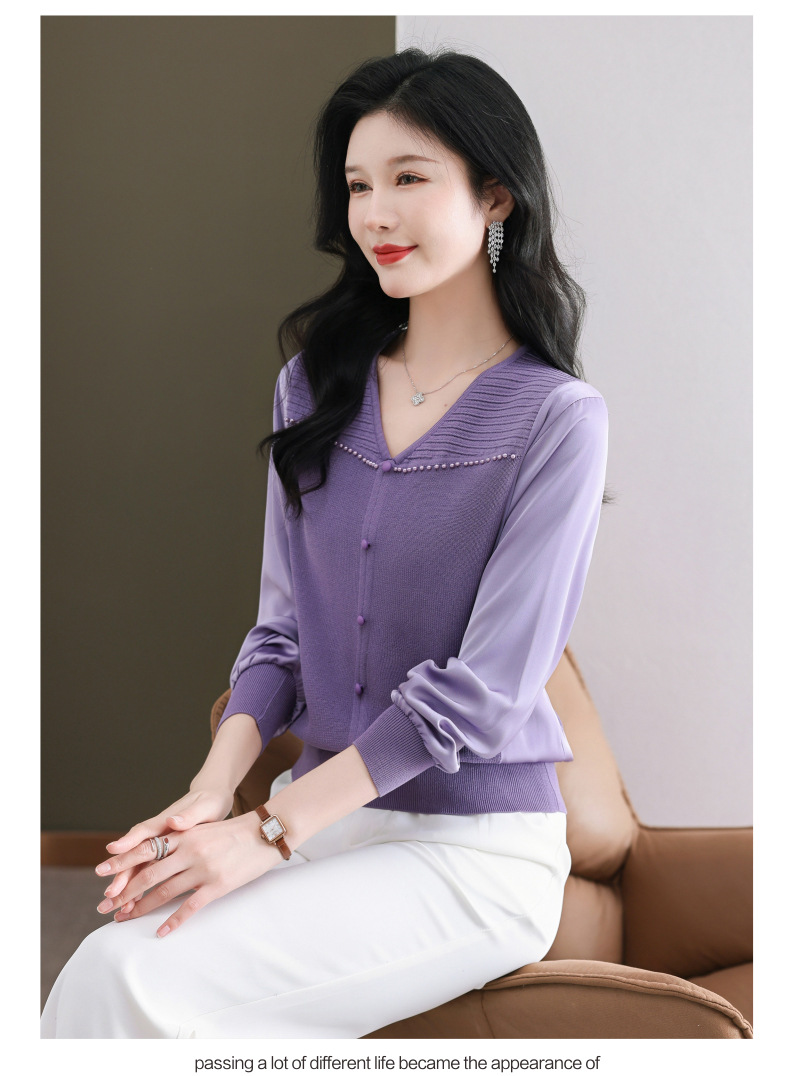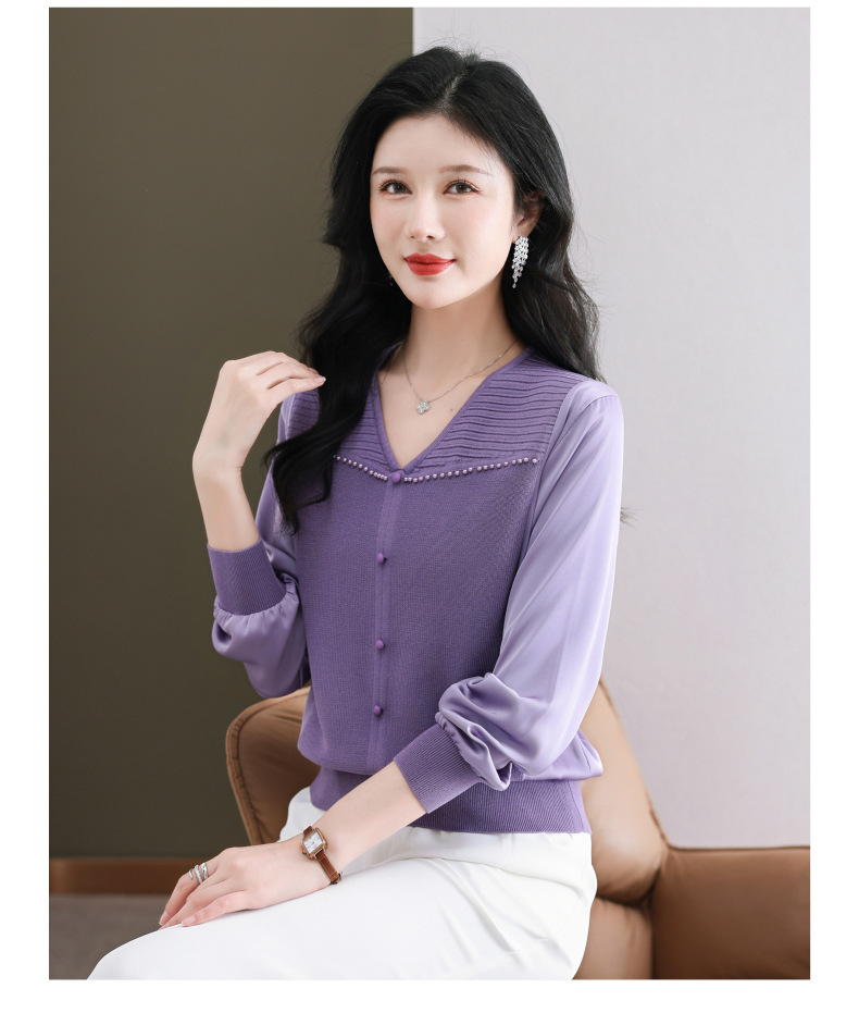 CC89-99810荷叶边V领妈妈减龄时尚针织衫