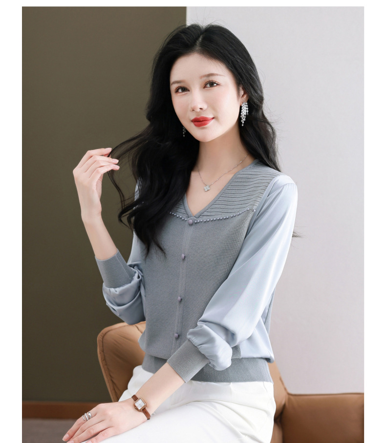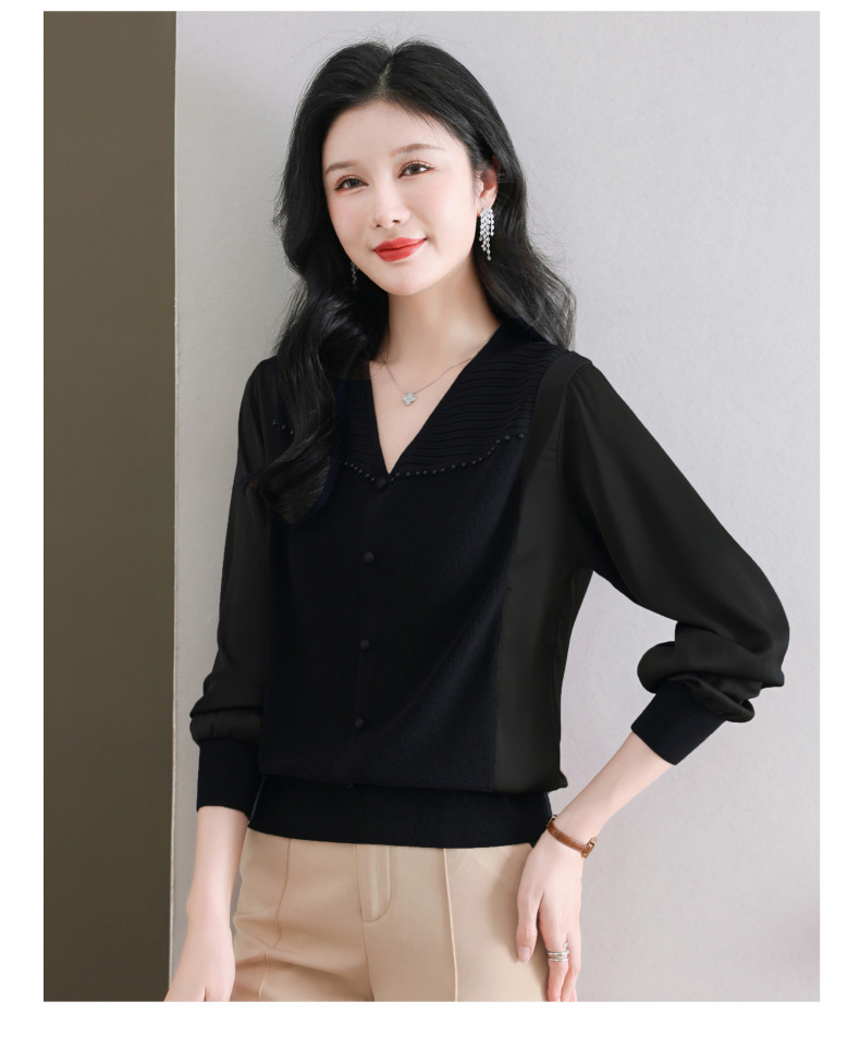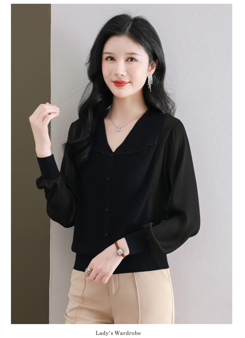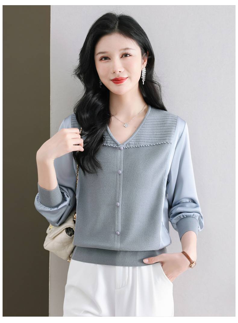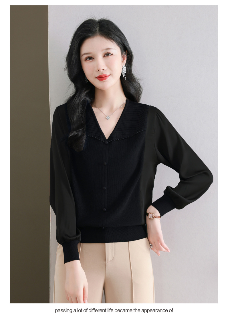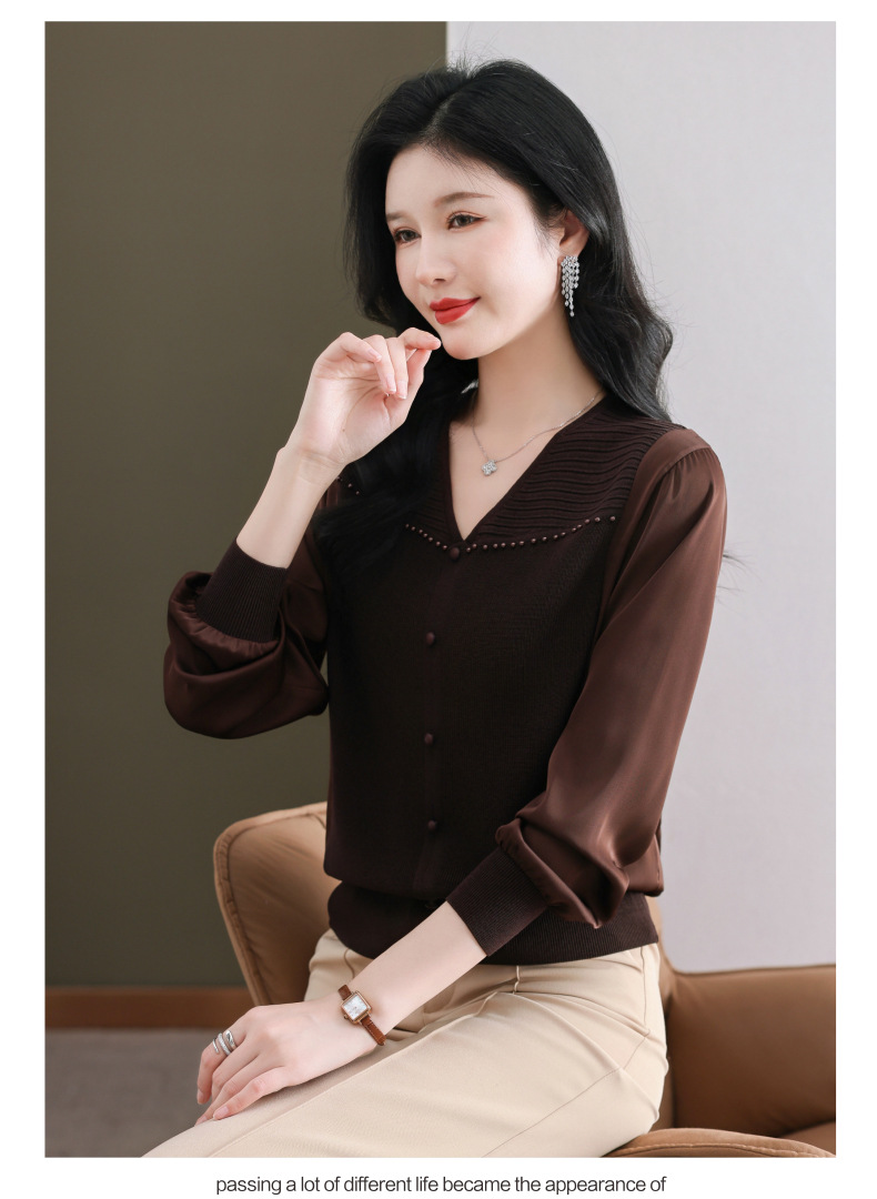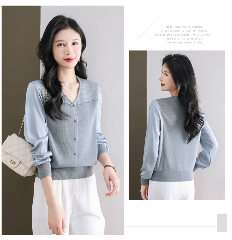 CC89-99810荷叶边V领妈妈减龄时尚针织衫