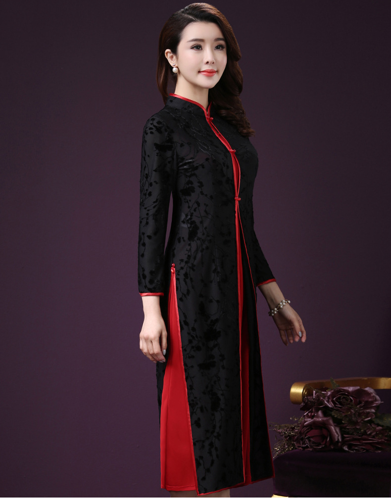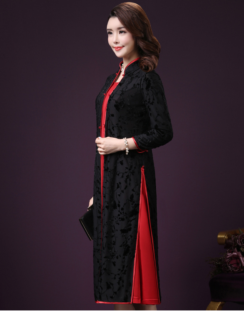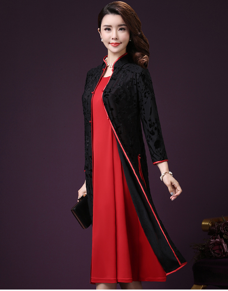 YMR-8195-秋季气质名媛蕾丝大码中长款连衣裙 唐织绾