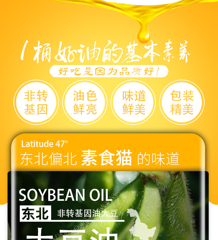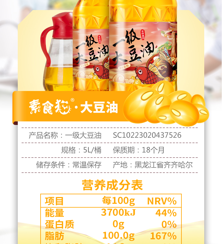 泰来县素食猫一级浓香大豆油5L