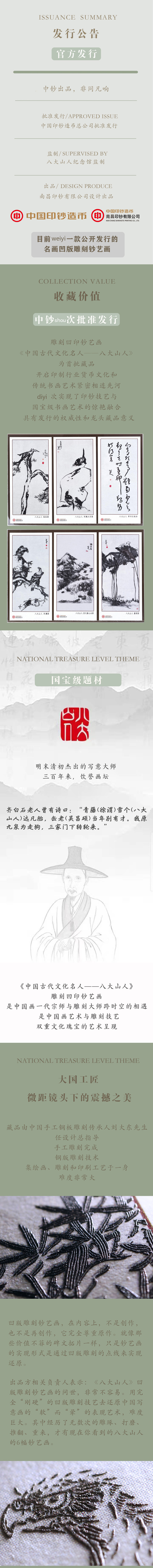 【少量现货】《中国古代文化名人——八大山人》雕刻凹印钞艺精品画珍藏册